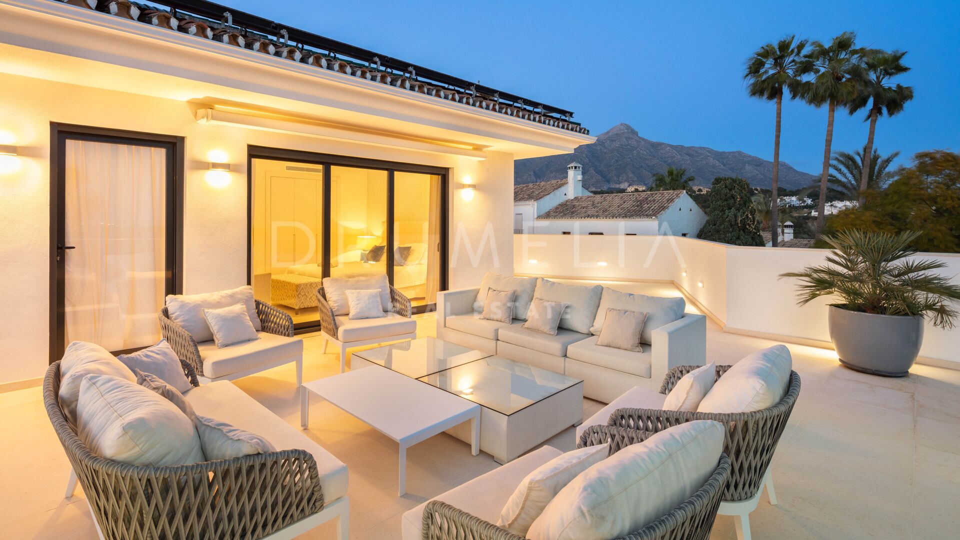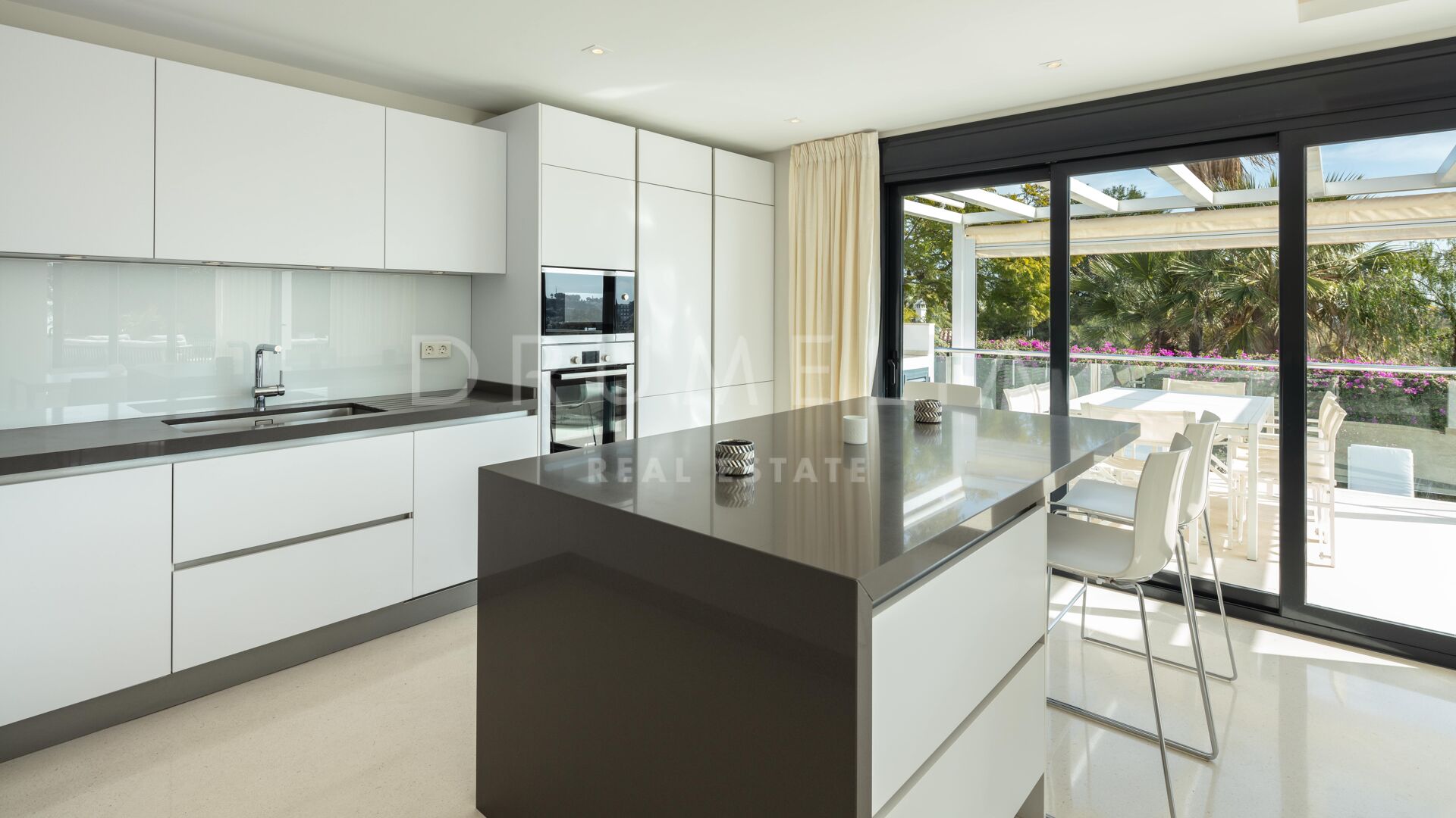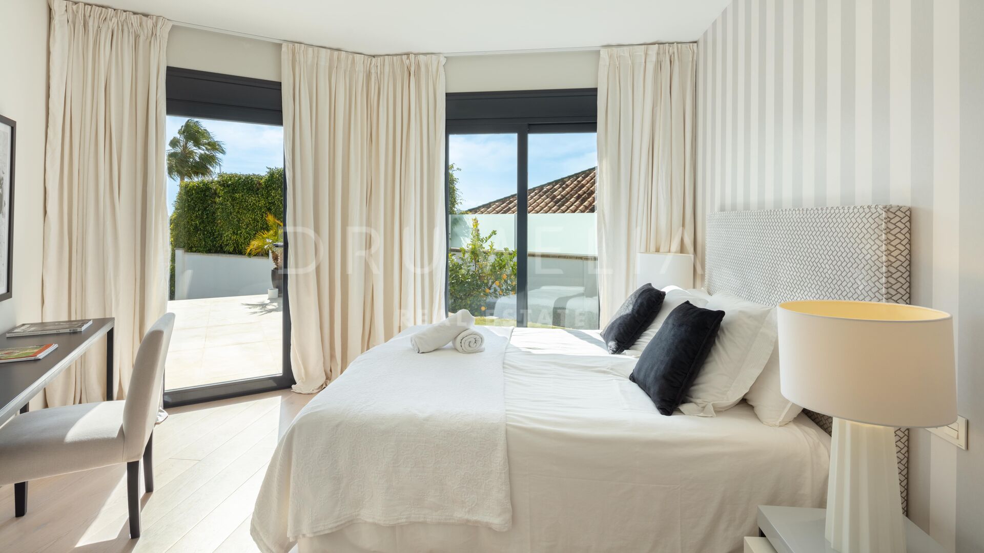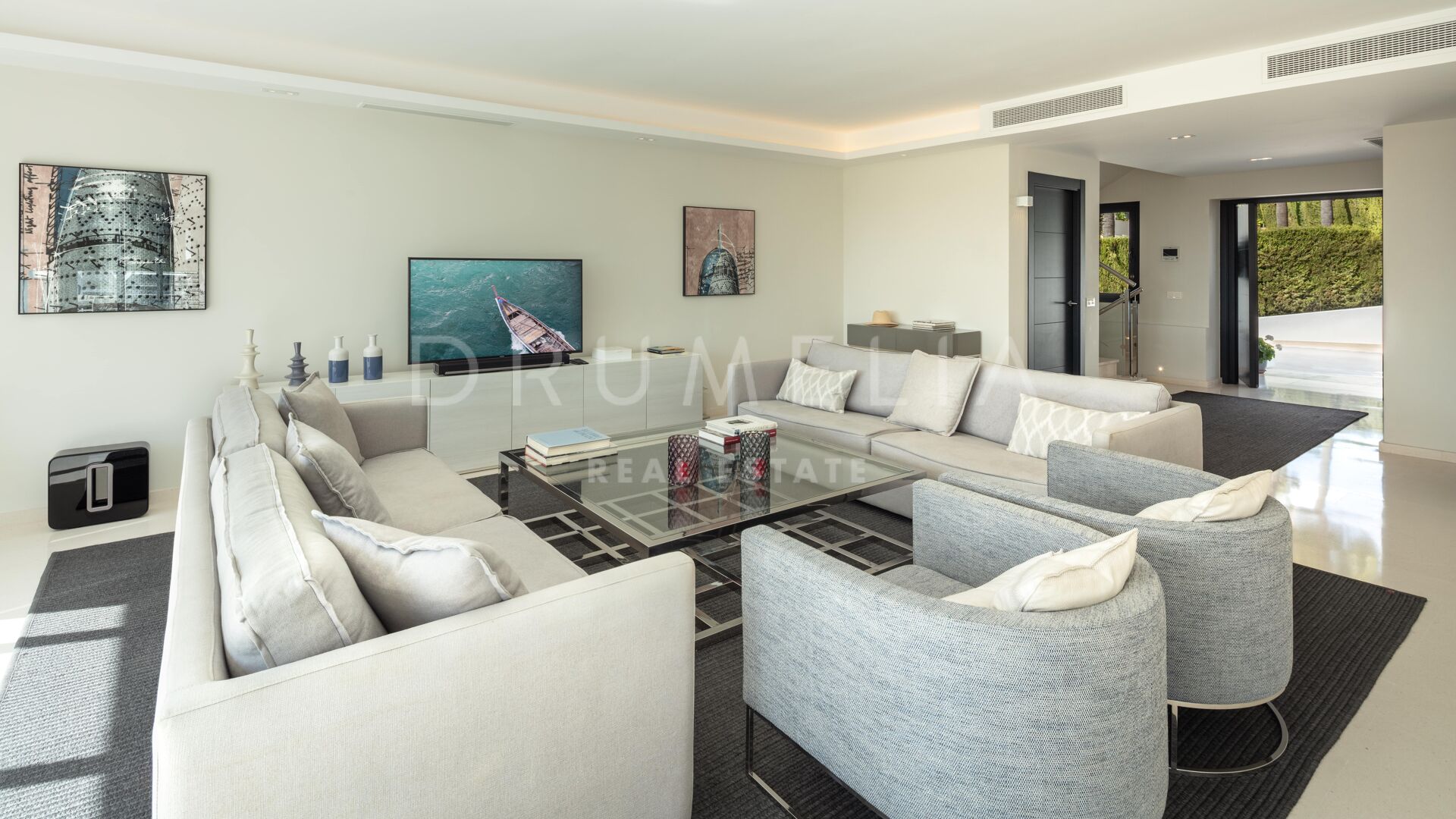 Denna helt nyrenoverade familjevilla till salu ligger i hjärtat av golfdalen i Nueva Andalucia, Marbella. Det gör det möjligt att njuta av modern atmosfär och alla bekvämligheter i det eleganta hemmet och dess bekväma läge bara några minuter från fantastiska golfbanor och alla bekvämligheter, inklusive internationella skolor, barer och restauranger, ekologiska kaféer, gatumarknad, tennisklubbar och gym, affärer och stormarknader, samt kasino, stränder med blå flagg, nattklubbar och strandklubbar i den världsberömda hamnen Banus.