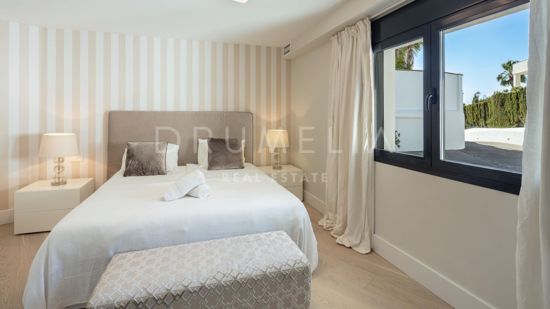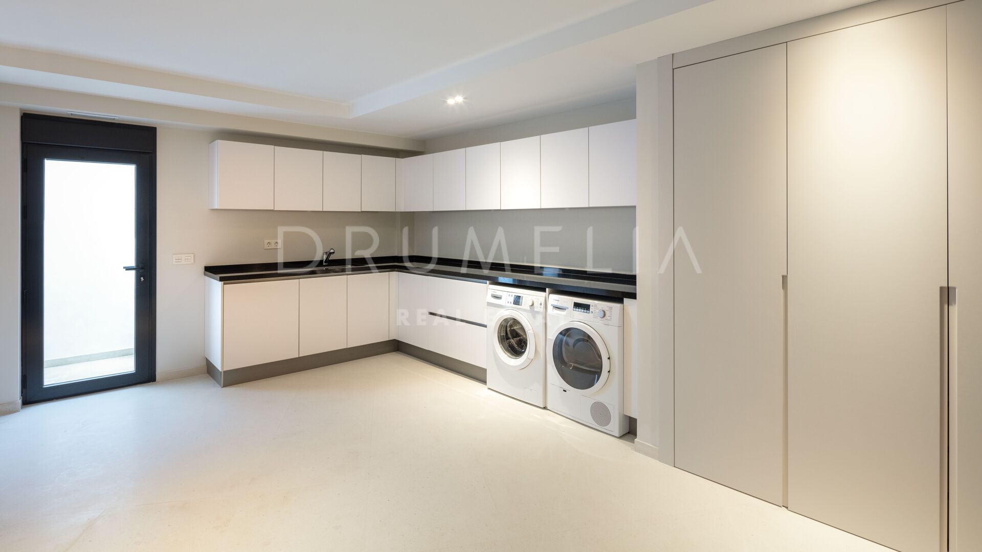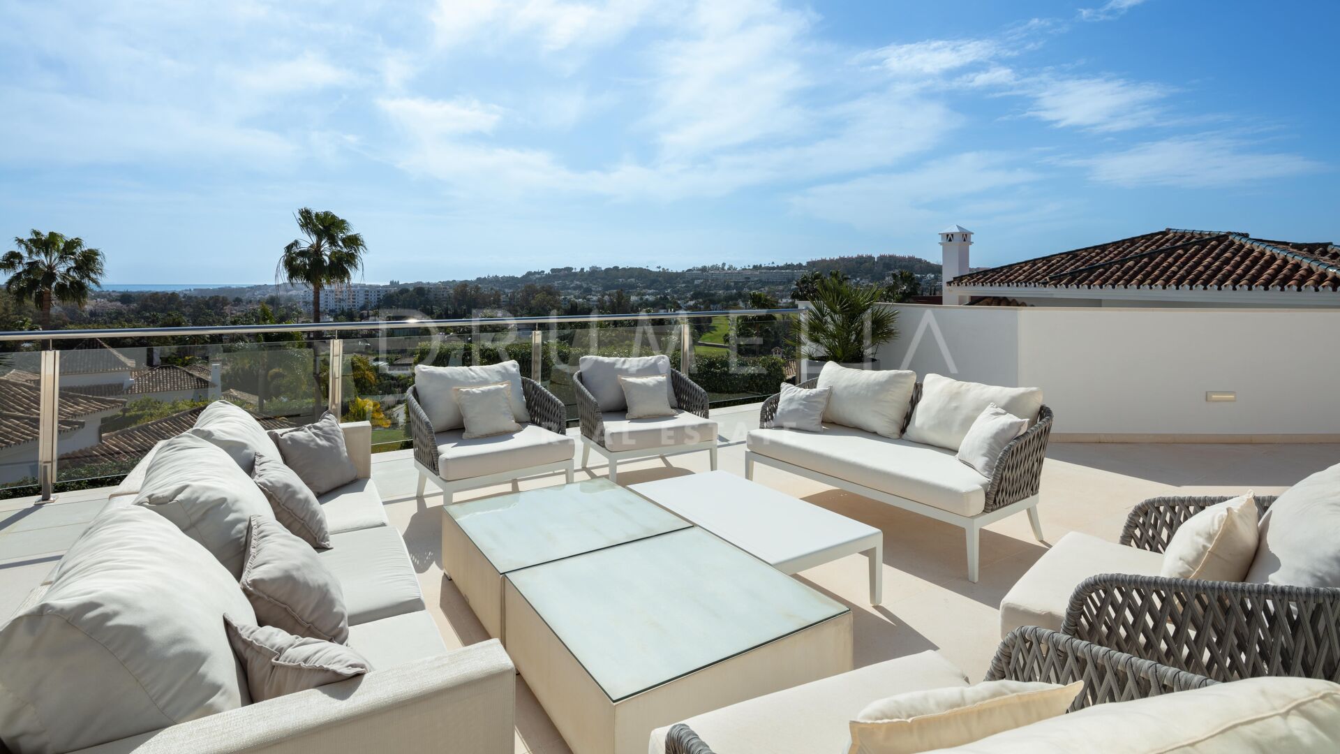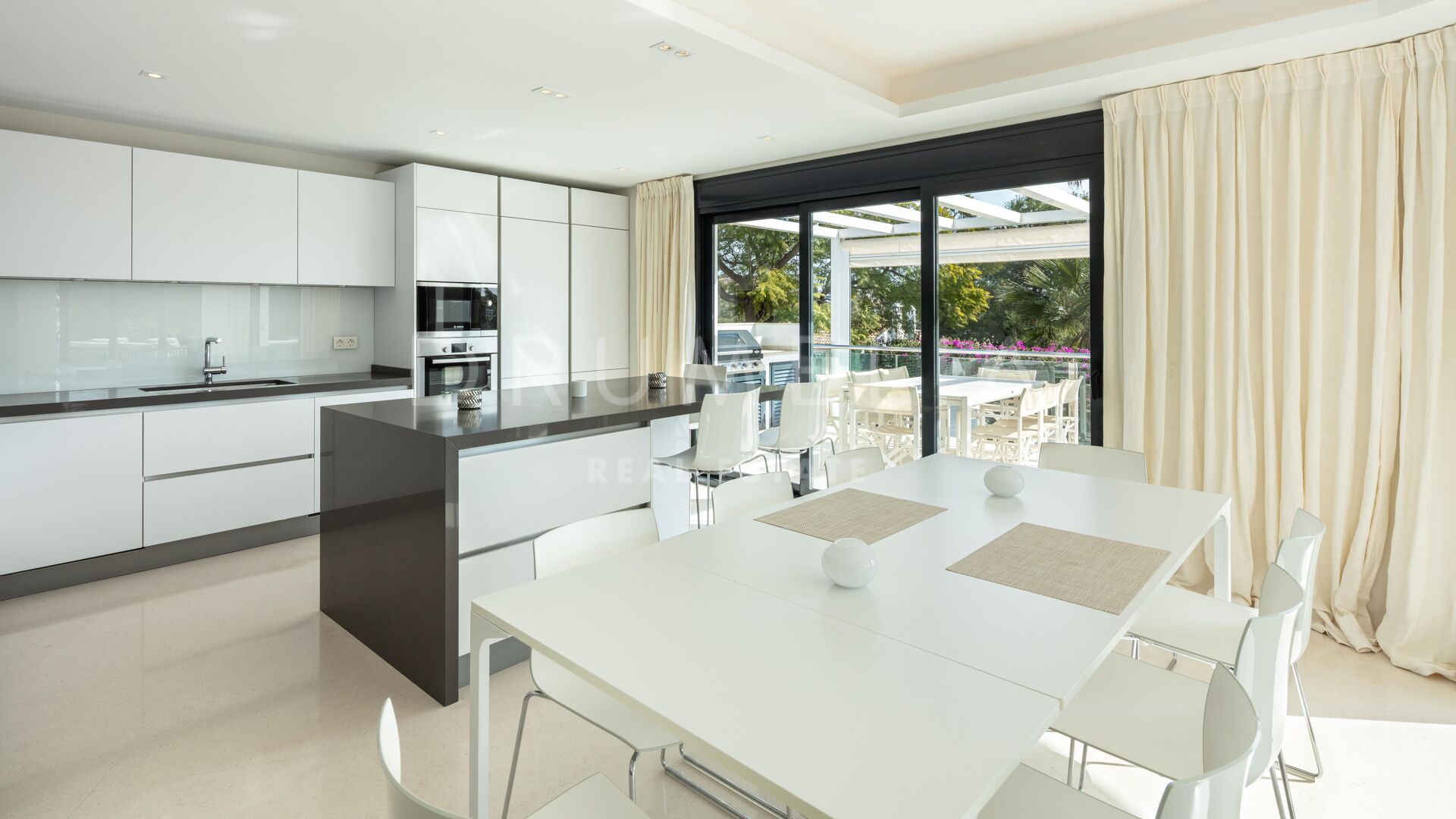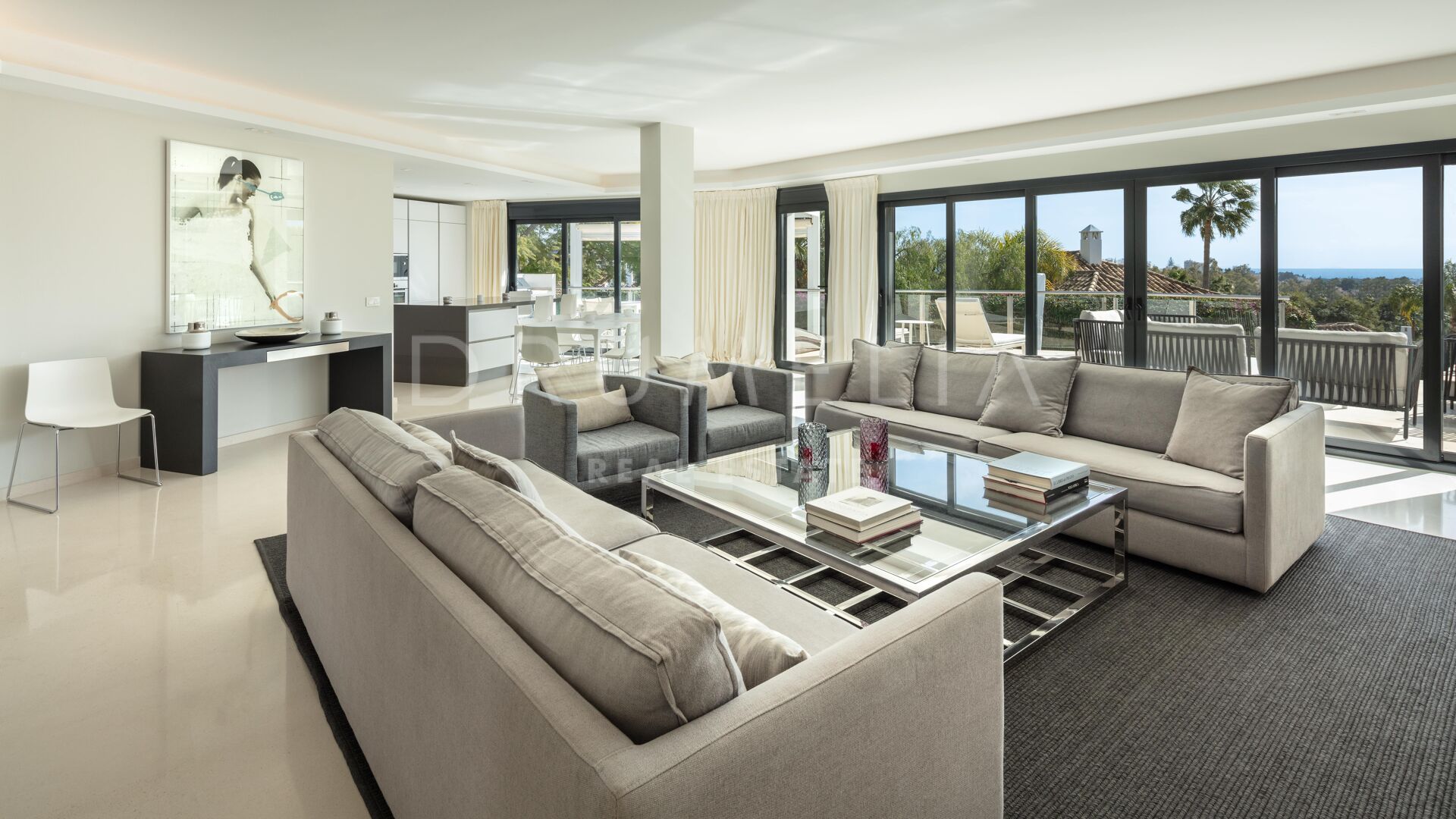 Denna helt nyrenoverade familjevilla till salu ligger i hjärtat av golfdalen i Nueva Andalucia, Marbella. Det gör det möjligt att njuta av modern atmosfär och alla bekvämligheter i det eleganta hemmet och dess bekväma läge bara några minuter från fantastiska golfbanor och alla bekvämligheter, inklusive internationella skolor, barer och restauranger, ekologiska kaféer, gatumarknad, tennisklubbar och gym, affärer och stormarknader, samt kasino, stränder med blå flagg, nattklubbar och strandklubbar i den världsberömda hamnen Banus.