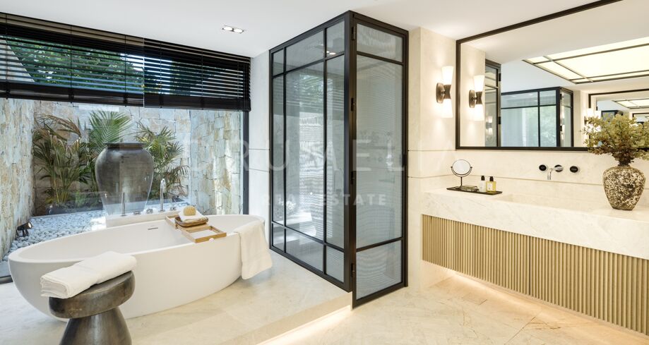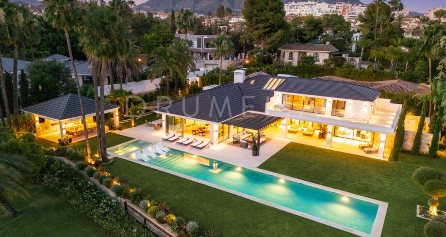 Beläget i hjärtat av Nueva Andalucía, nära internationella skolor, Puerto Banús och Golden Mile, erbjuder denna villa allt som behövs för en exklusiv livsstil på Costa del Sol.