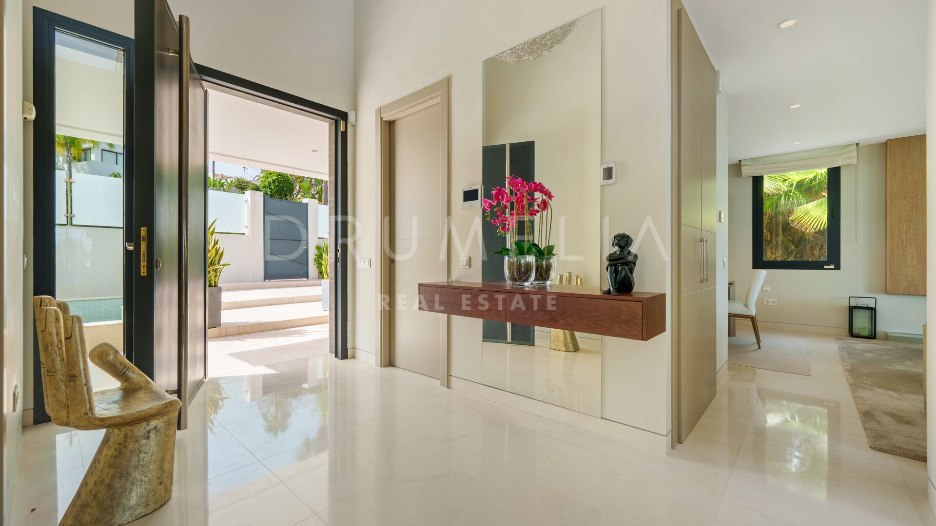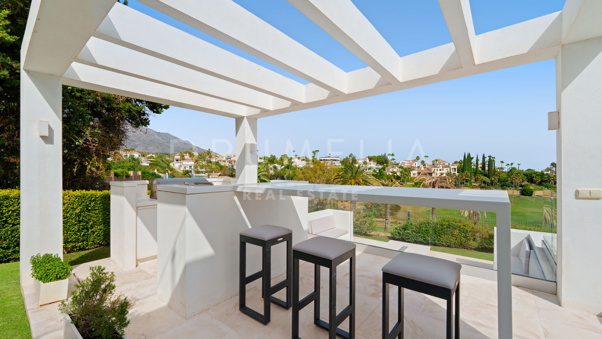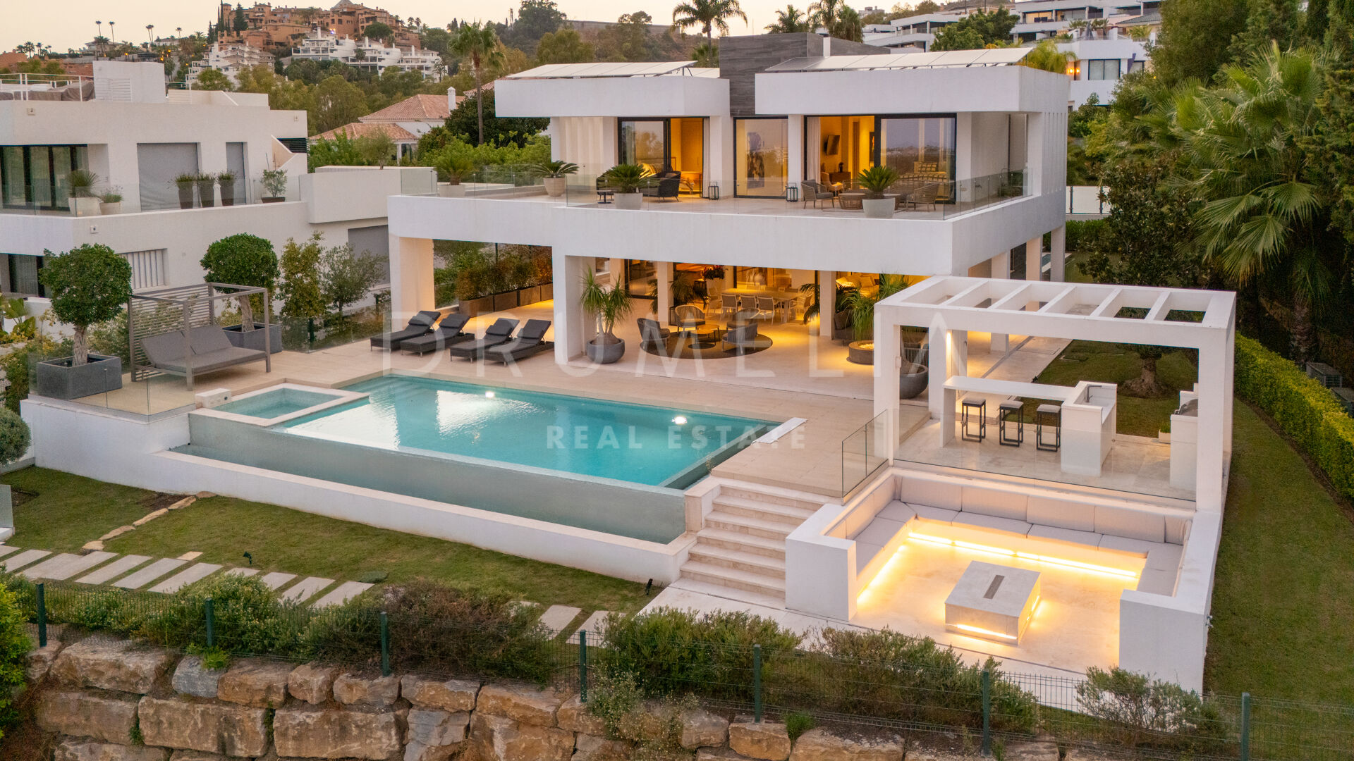 Utemiljön är lika imponerande, med landskapsarkitektur runt en infinitypool, kompletterad av en nedsänkt lounge, utekök och flera chill-out-områden. Utformade för att njuta av Marbellas klimat året runt, erbjuder de både avskildhet och utmärkta möjligheter för underhållning.