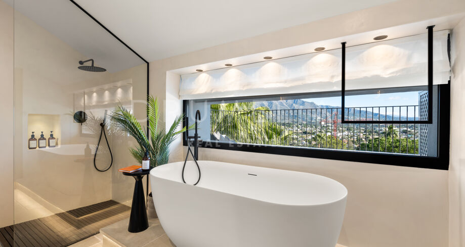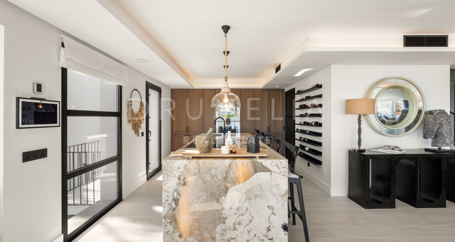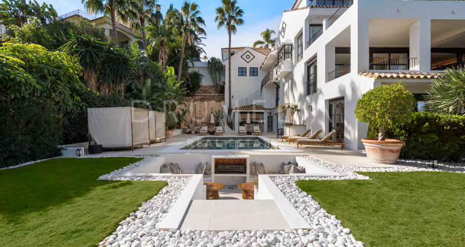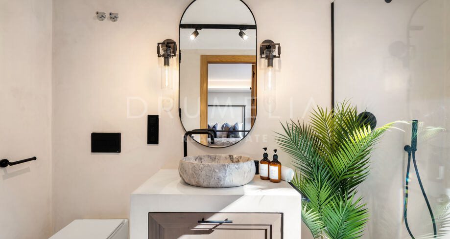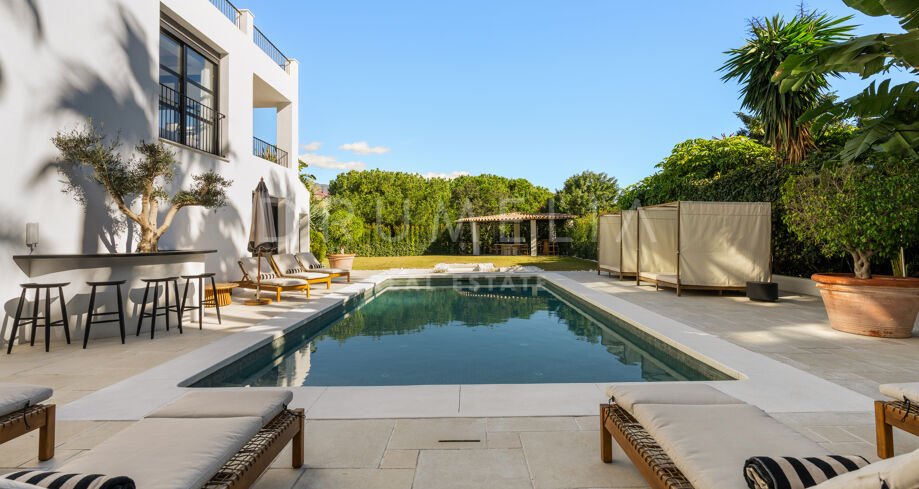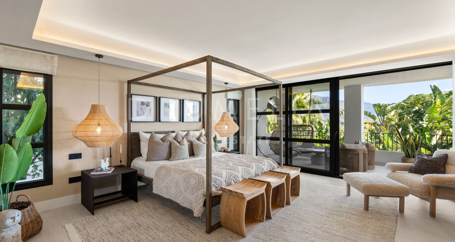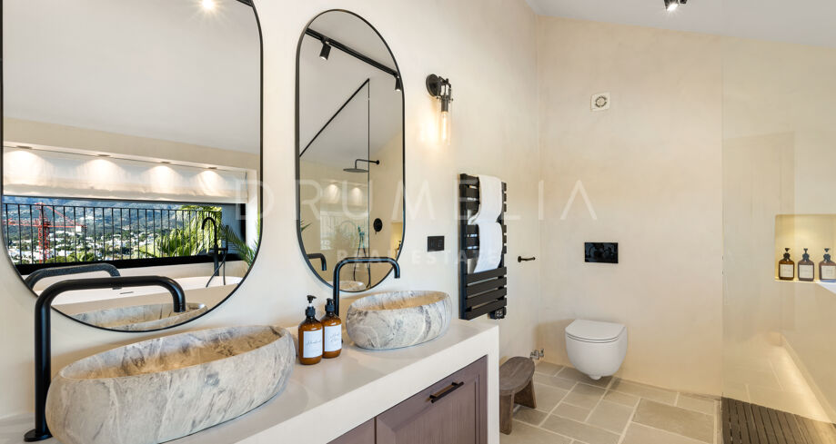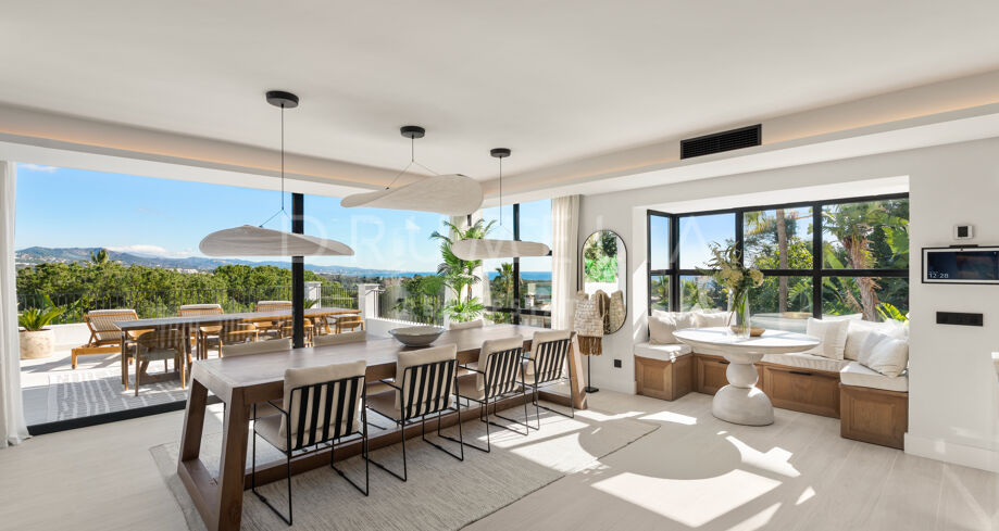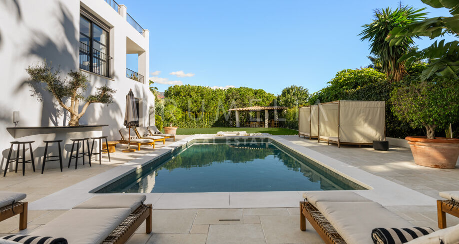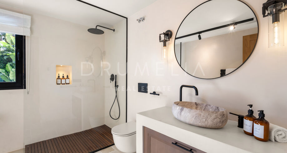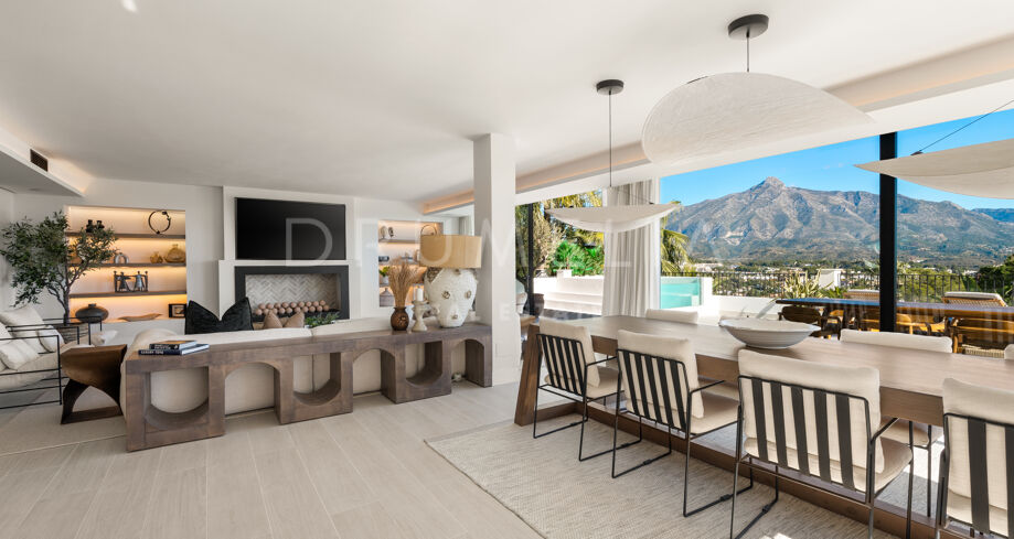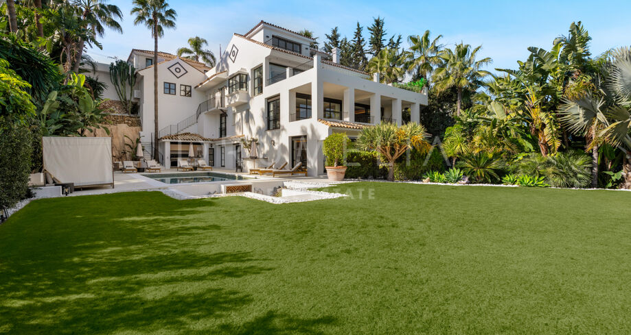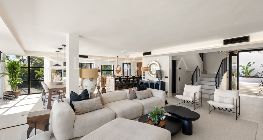 I hjärtat av Nueva Andalucía, bara några minuter från Marbellas bästa golfbanor, Puerto Banús och exklusiva restauranger och butiker, kombinerar denna moderna medelhavsvilla samtida elegans med genuin andalusisk charm. Den representerar essensen av lyxlivet i Marbella.