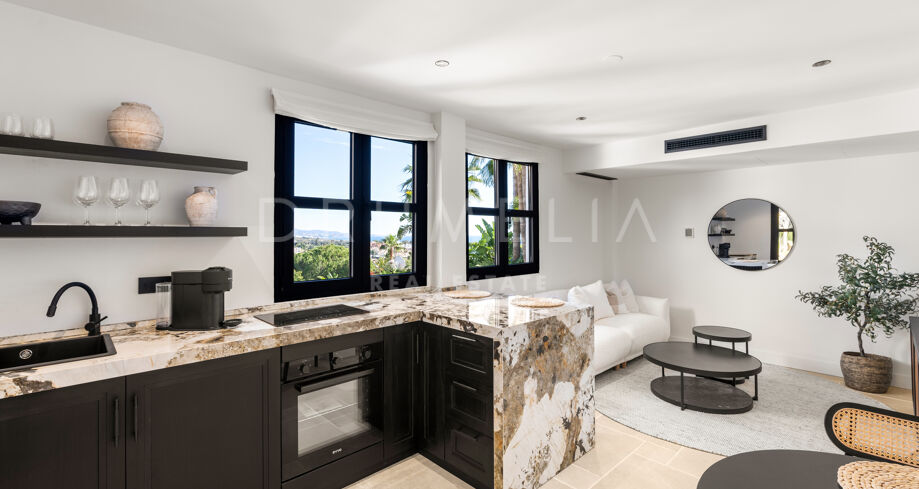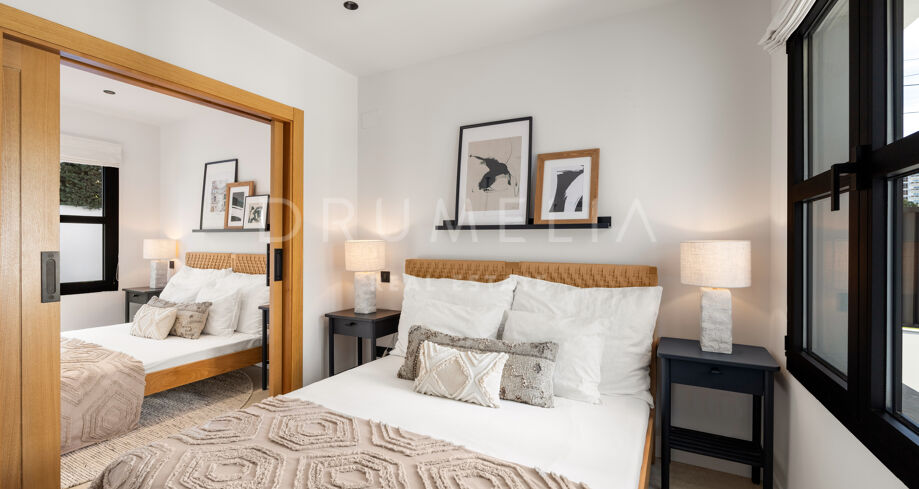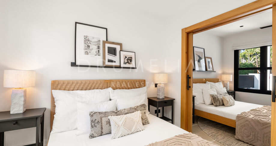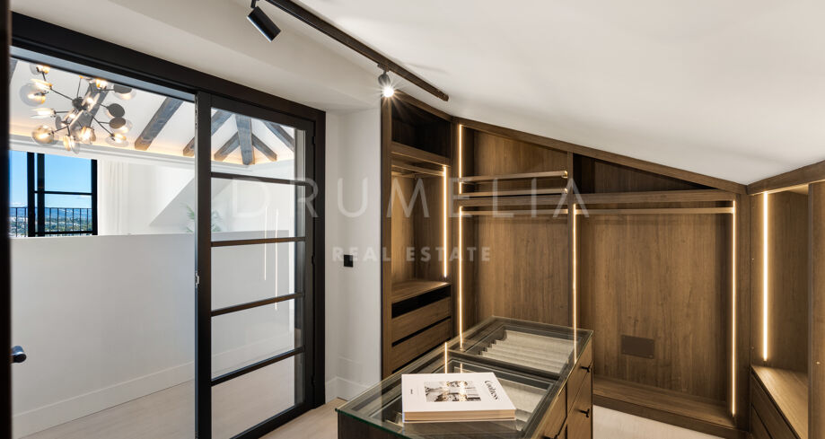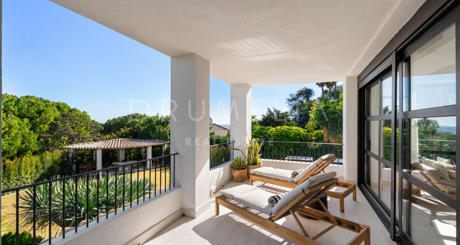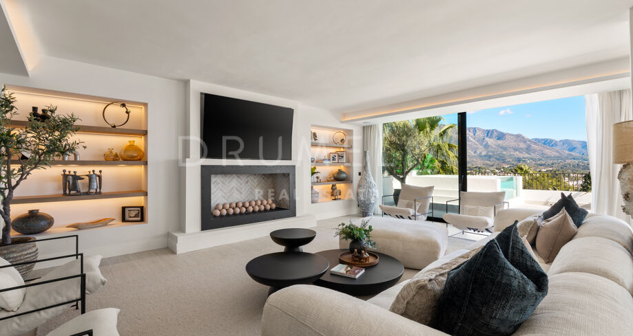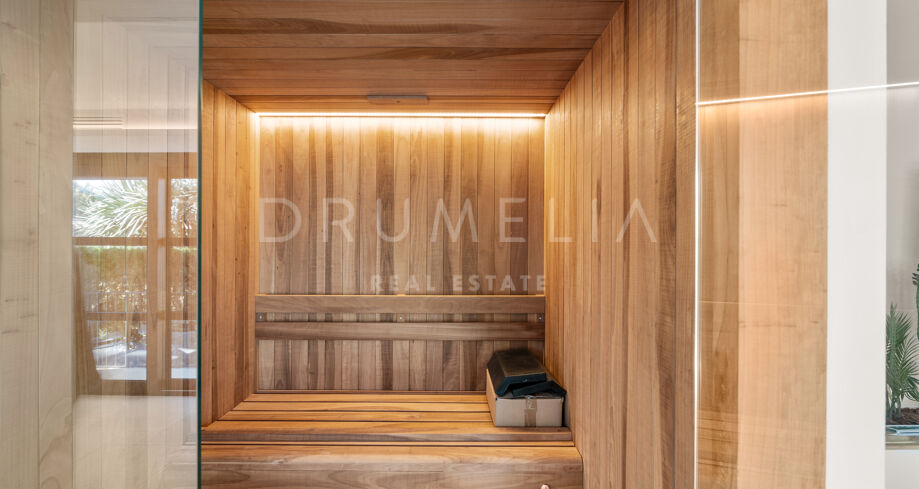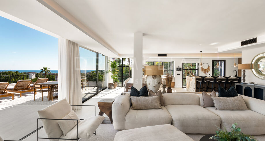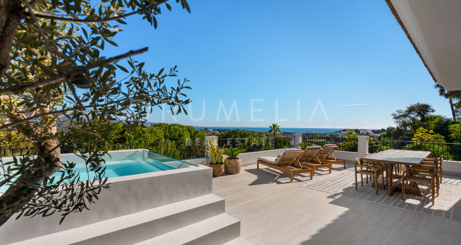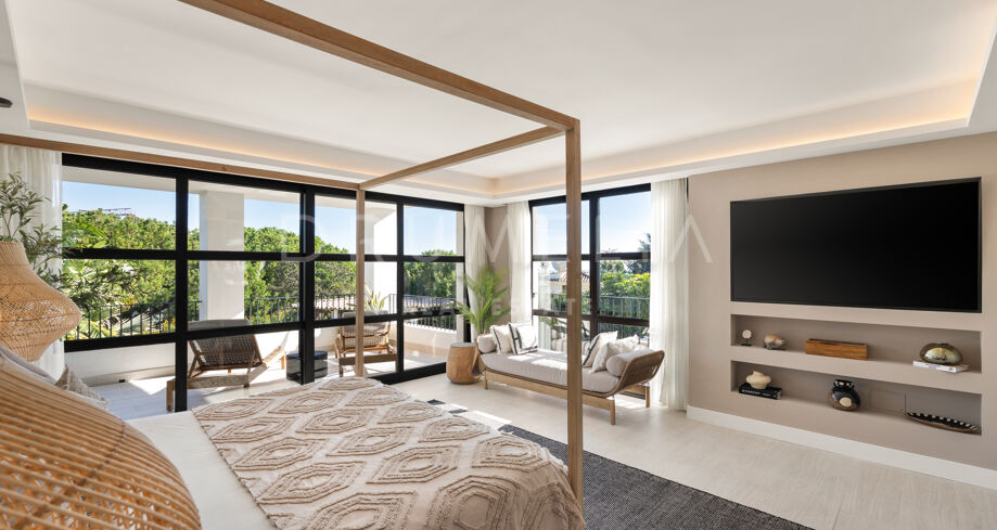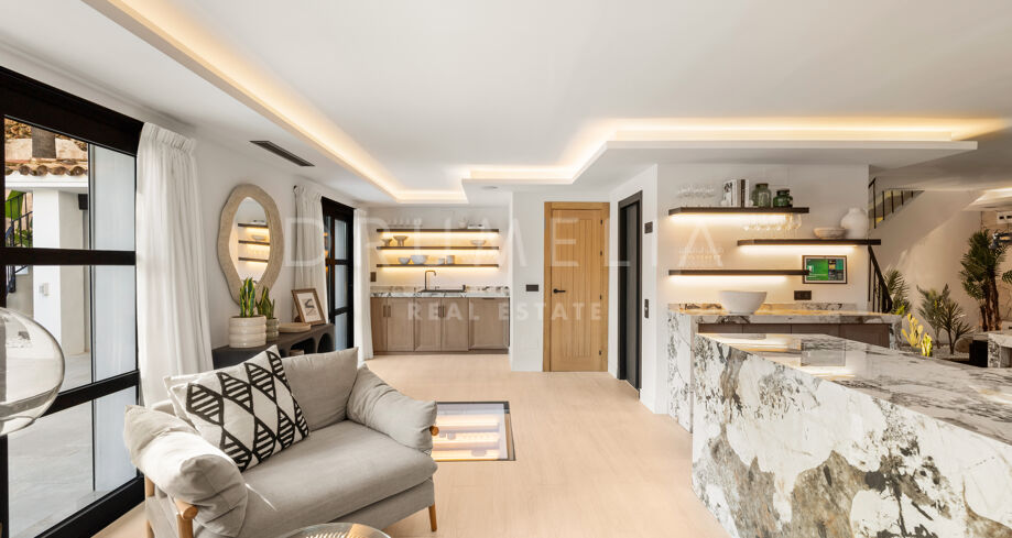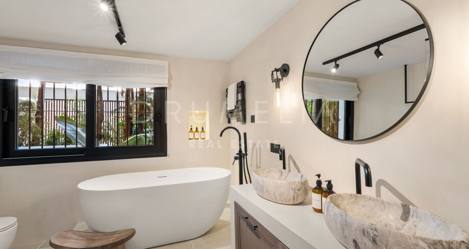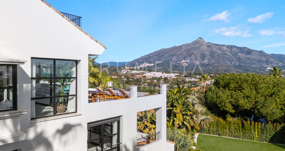 I hjärtat av Nueva Andalucía, bara några minuter från Marbellas bästa golfbanor, Puerto Banús och exklusiva restauranger och butiker, kombinerar denna moderna medelhavsvilla samtida elegans med genuin andalusisk charm. Den representerar essensen av lyxlivet i Marbella.