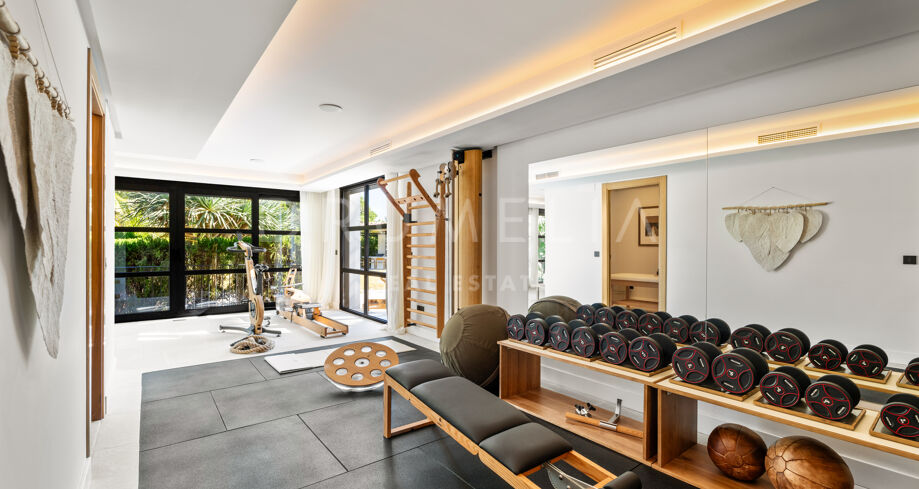 Utformad för komfort och livsstil erbjuder villan privat gym, vinkällare och hemmabio. De vackert anlagda trädgårdarna omger en infinitypool och flera terrasser med mat- och loungeområden. Varje stund här fångar det bästa av Marbellas exklusiva livsstil.