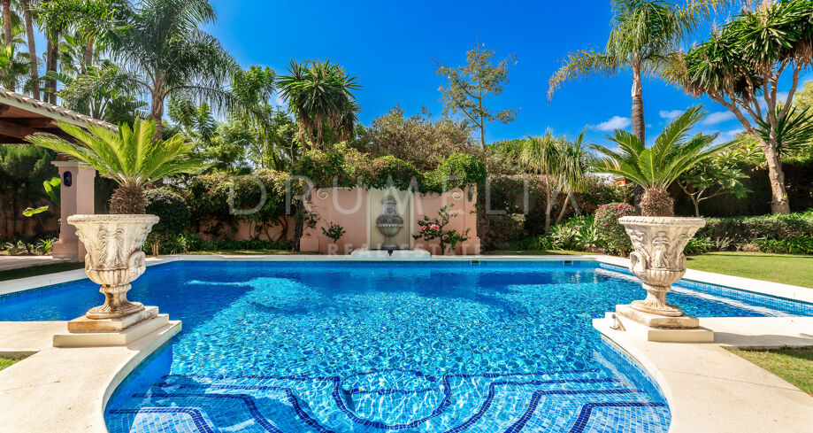Klassisk andalusisk villa med uppvuxen trädgård i Nueva Andalucía, Marbella