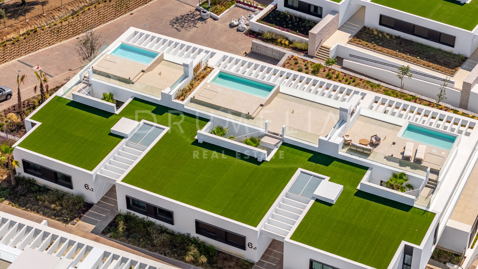 Det privata taksolariumet är den utmärkande egenskapen, med plats för lounge- och matplatser runt plunge poolen, och erbjuder upphöjda, öppna vyer som skapar en genuin medelhavslivsstil.