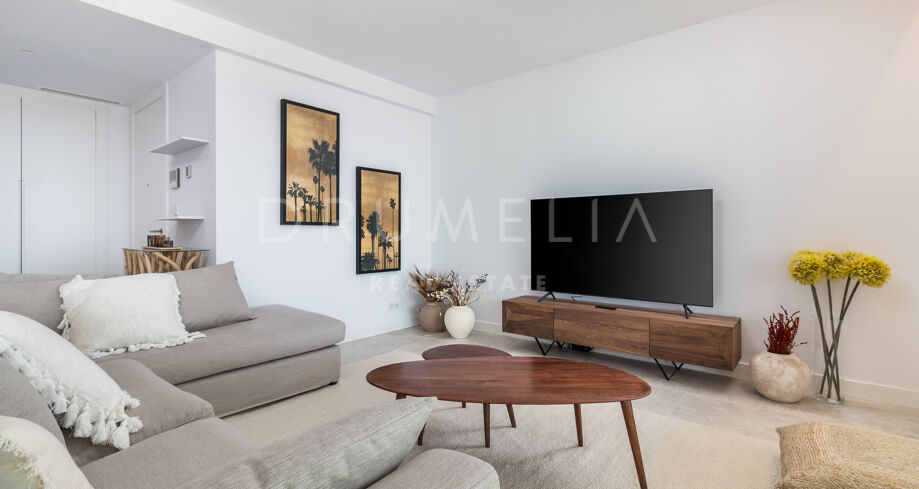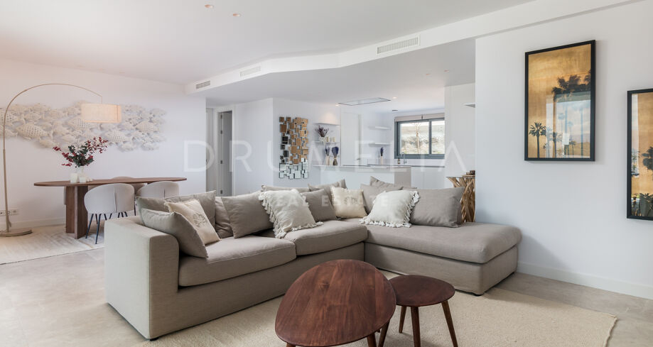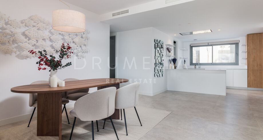 Denna lyxiga markplanslägenhet är belägen i Östra Marbella, inom ett modernt inhägnat bostadsområde intill det prestigefyllda Santa Clara Golf. Bostaden har turistlicens, en begränsad och eftertraktad fördel i området, vilket gör den särskilt attraktiv för korttidsuthyrning och som investering.