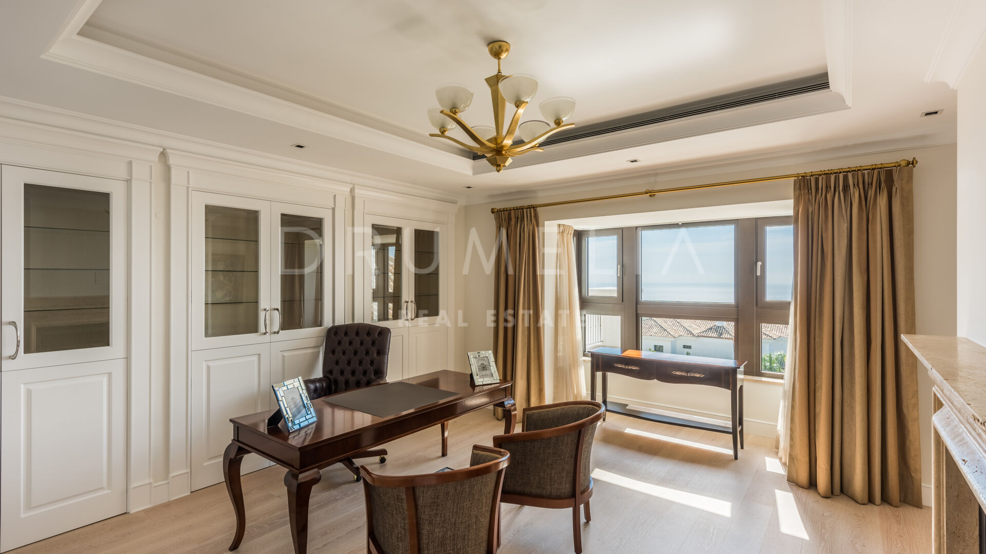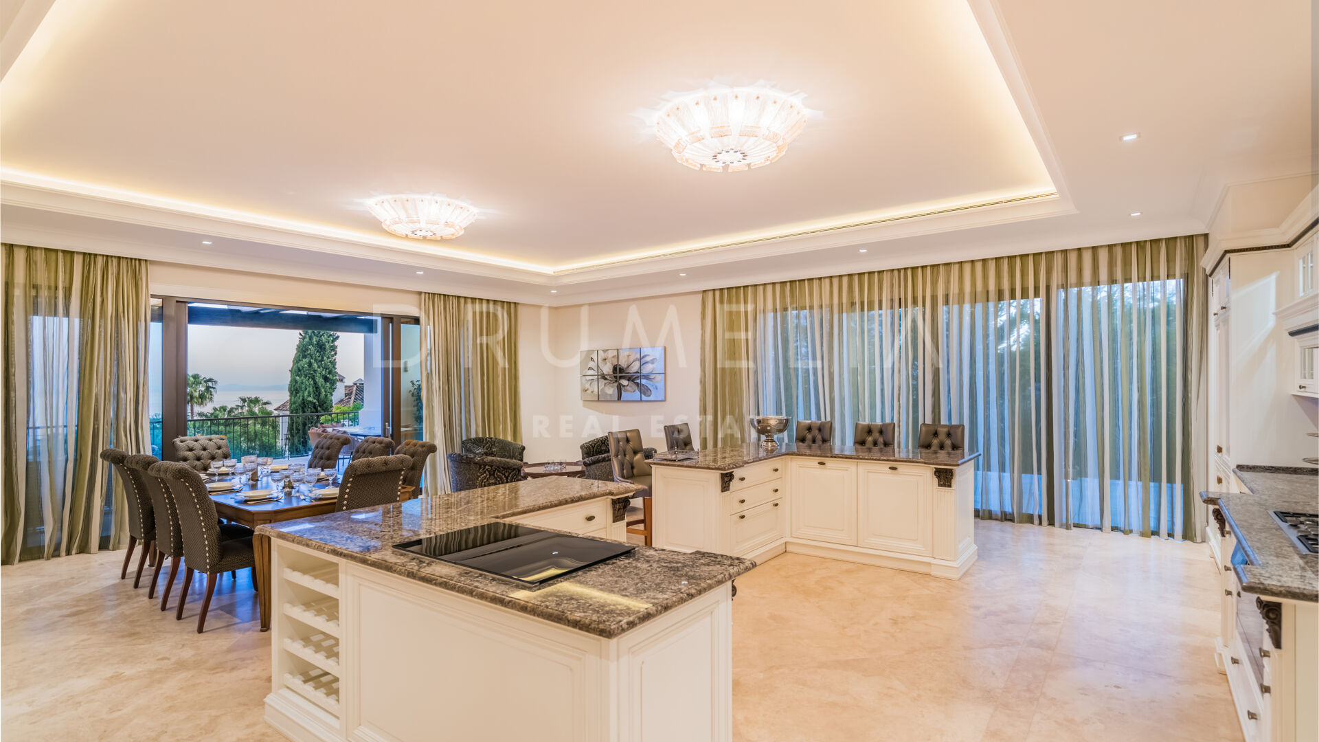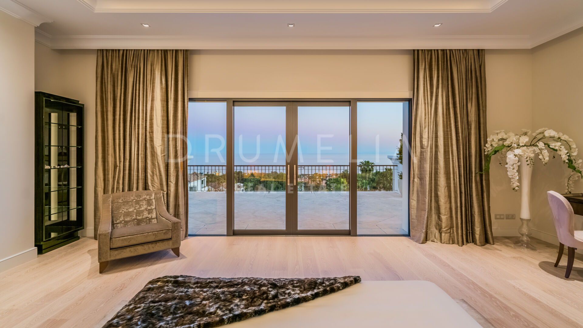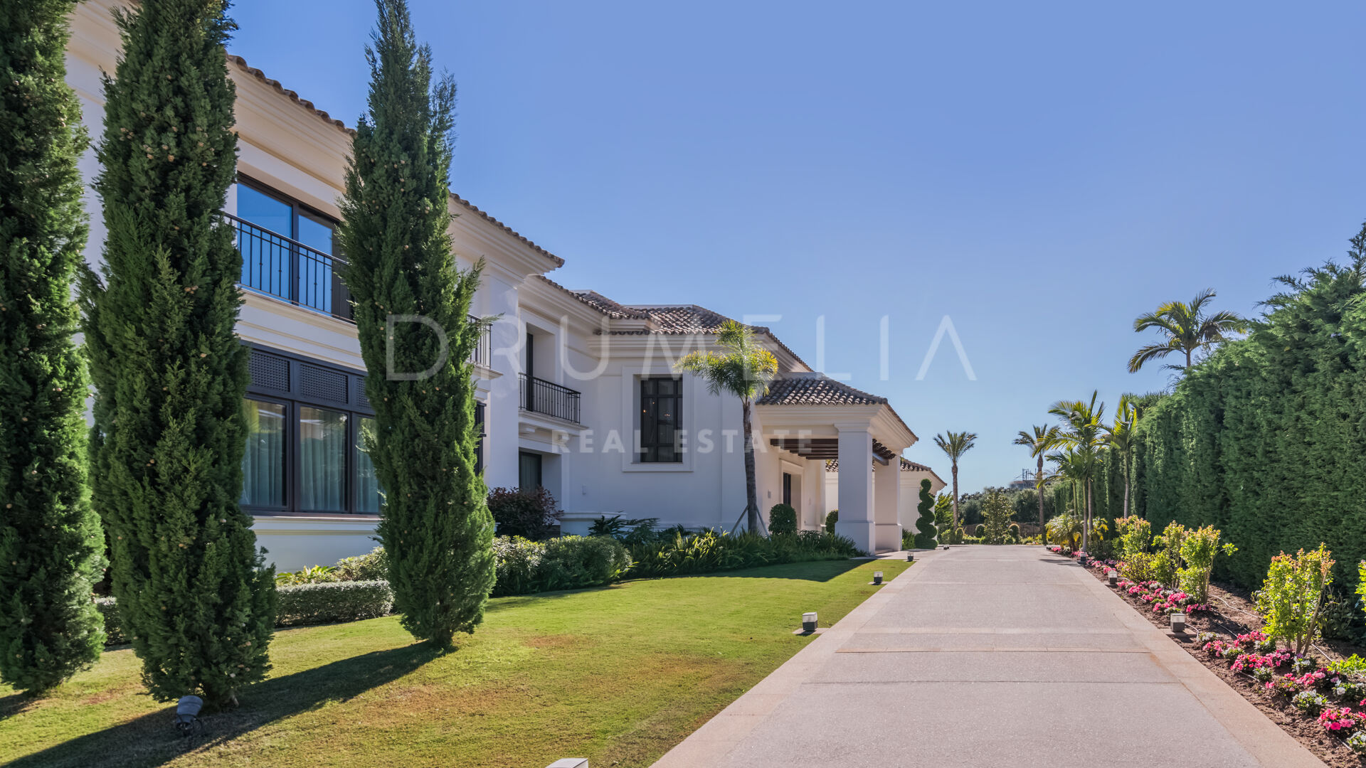 Endast det bästa kan förväntas. Fastigheten har en ädel, iögonfallande naturlig färgpalett, utmärkta marmorgolv, panoramaglasdörrar och glasvinskällare, inbyggda garderober i snickeri av hög kvalitet, expansivt och praktiskt omklädningsrum av exceptionell smak och kvalitet, stort garage, täckta och soliga terrasser, solarium och privata balkonger som är perfekta för att njuta av sensationella medelhavssolnedgångar, ett glas vin eller en ikonisk kopp kaffe på morgonen. Föreställ dig bara: 873 m² terrasser omsluter din villa på 2 720 m²!