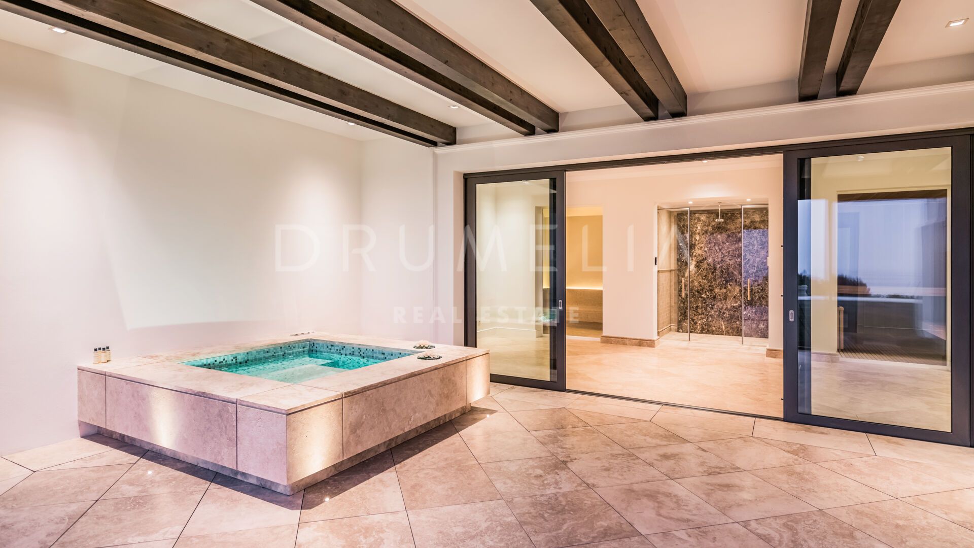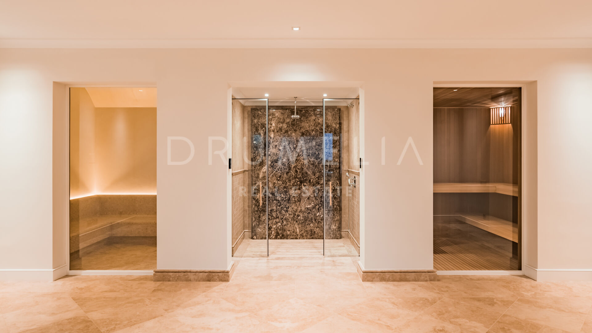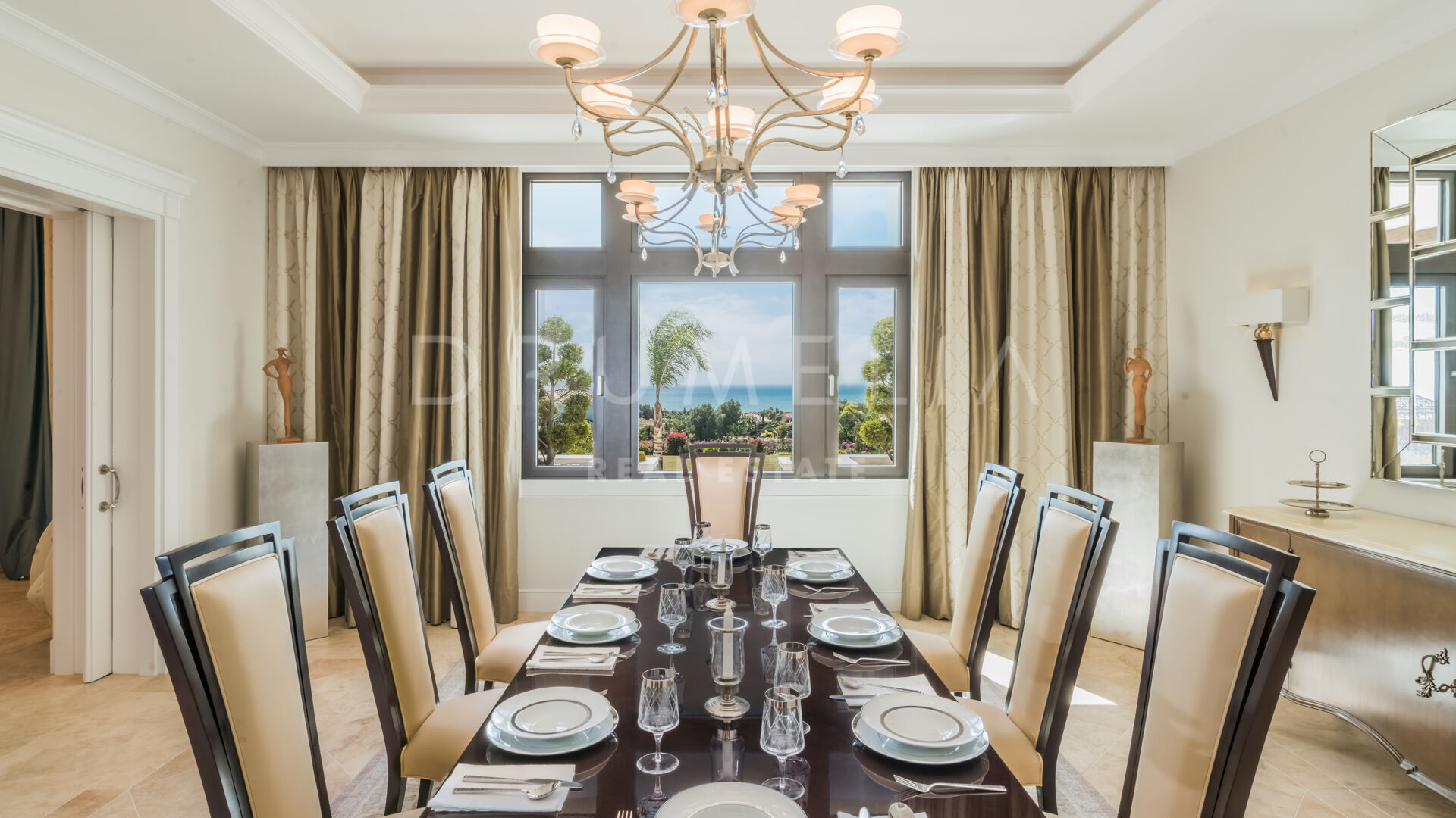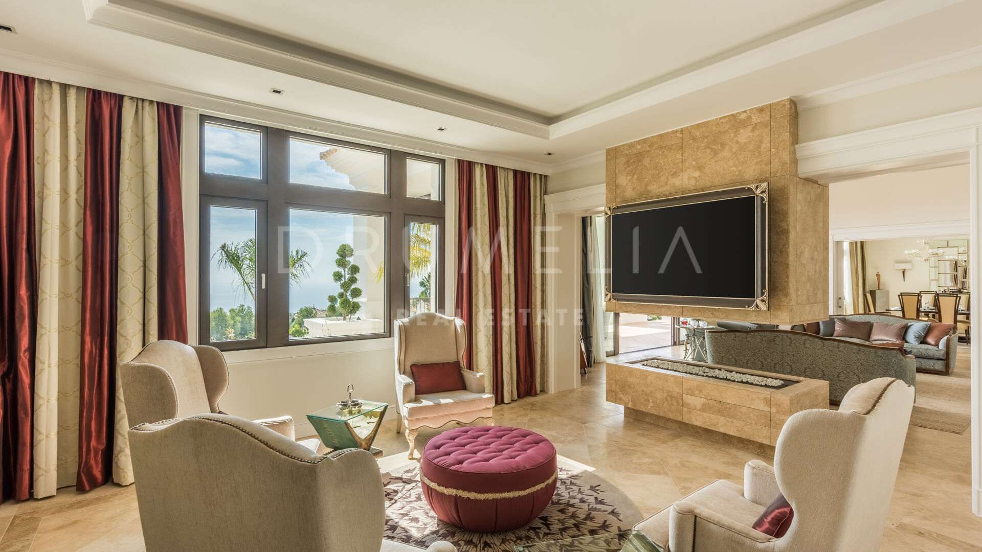 Endast det bästa kan förväntas. Fastigheten har en ädel, iögonfallande naturlig färgpalett, utmärkta marmorgolv, panoramaglasdörrar och glasvinskällare, inbyggda garderober i snickeri av hög kvalitet, expansivt och praktiskt omklädningsrum av exceptionell smak och kvalitet, stort garage, täckta och soliga terrasser, solarium och privata balkonger som är perfekta för att njuta av sensationella medelhavssolnedgångar, ett glas vin eller en ikonisk kopp kaffe på morgonen. Föreställ dig bara: 873 m² terrasser omsluter din villa på 2 720 m²!