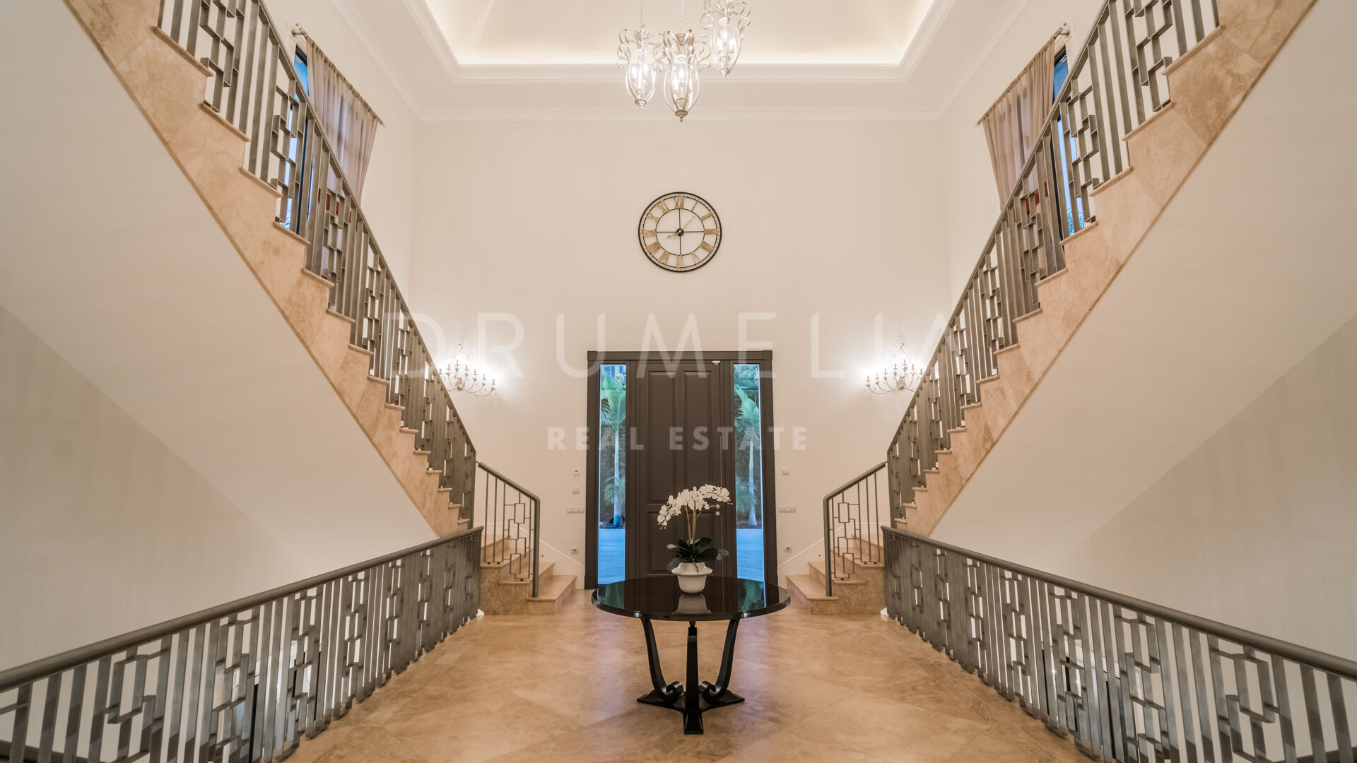 Välkommen till “Villa Symphony” som rankas bland de finaste hemmen på Costa del Sol! Integrerat i en drömlik medelhavsmiljö har det byggts med material av högsta kvalitet och erbjuder lyxig design och toppmoderna bekvämligheter. Den har inte fått sitt namn för ingenting! Det härstammar från det grekiska ordet “symphonia” och betyder “överenskommelse eller samklang av ljud”, “harmonisk”. Och det är det verkligen! De klassiska principerna om skala, balans, proportioner och symmetri finns alla där, och det presenterar elegant detaljerade behandlingar av dörrar, fönster, väggar, trappor, pelare och andra vackra inslag.