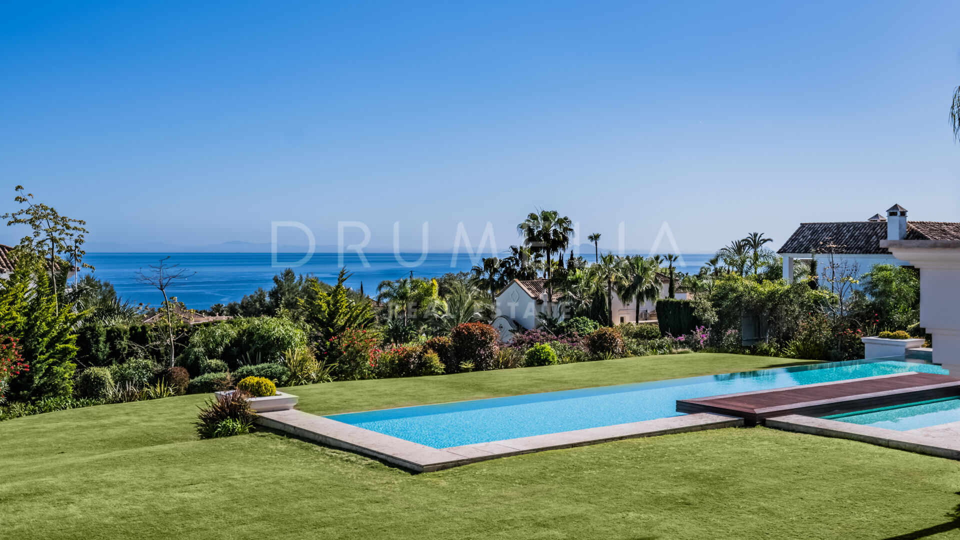 På huvudvåningen finns 2 av de 7 sovrummen; de delar vardagsrum och båda har öppen havsutsikt. På översta våningen finns 2 gästsvitriner, ett vardagsrum, ett kontor och en extraordinär master suite med vackert utformade och färdiga “hans” och “hennes” badrum, omklädningsrum som är idealiska för att visa upp modedesigners kollektioner och en privat terrass med hisnande utsikt. På nedre våningen har två sovrum som delar ett badrum direkt tillgång till en underbart anlagd subtropisk trädgård med en imponerande uppvärmd pool, cabaña med exotiskt tak och ett härligt poolhusområde, gott om chill-out och matplatser utomhus för att njuta av den världsberömda medelhavslivsstilen.