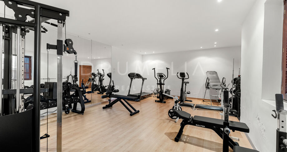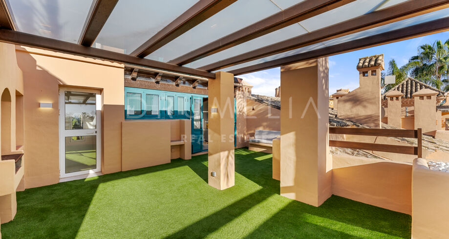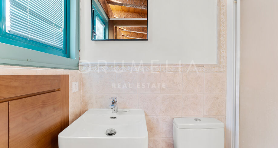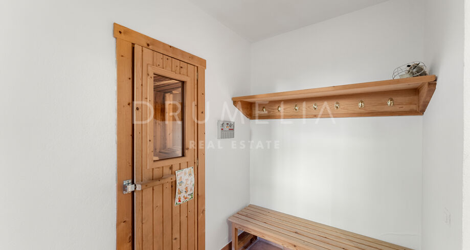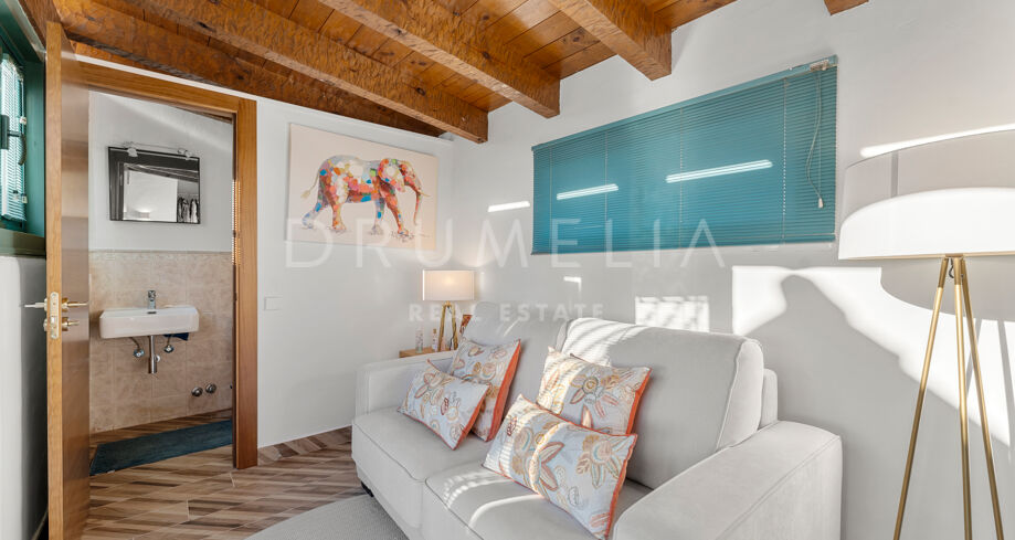 I øverste etasje finner du et allsidig personal- eller kontorrom med eget bad, samt et fantastisk solarium med enestående, fantastisk havutsikt. Denne takterrassen er ideell for underholdning eller bare for å nyte solskinnet på Costa del Sol.