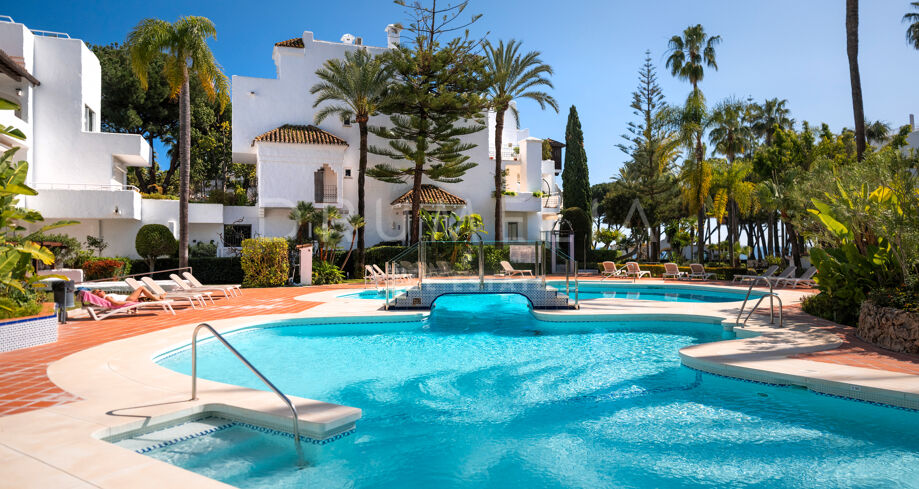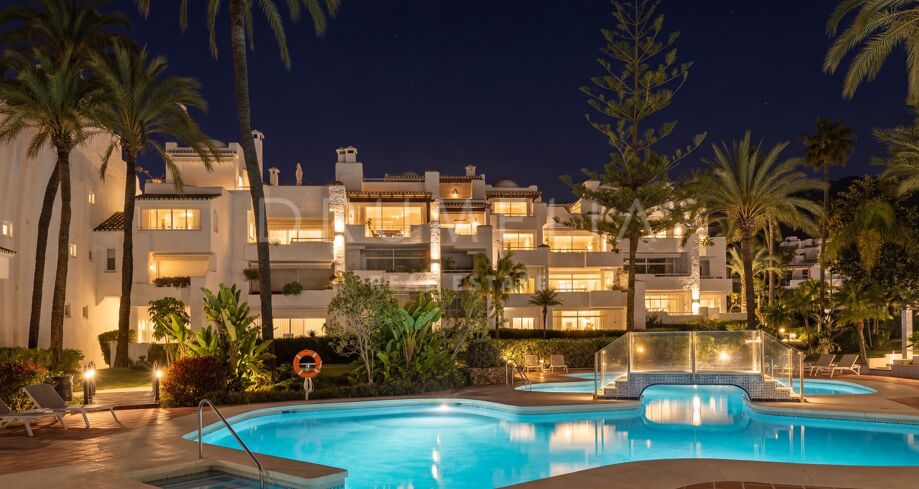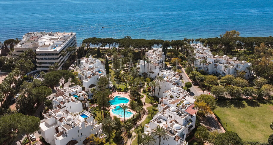 Eiendommen ligger i et veletablert strandnært område med fellesbasseng og parkering, og har en ideell beliggenhet innen gangavstand til Marbellas beste strandklubber, restauranter og fasiliteter, samt den sjarmerende gamlebyen i Marbella.