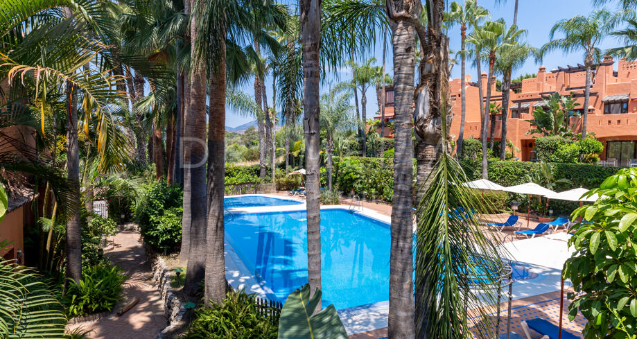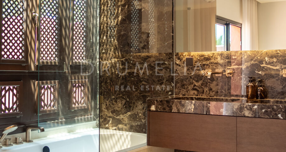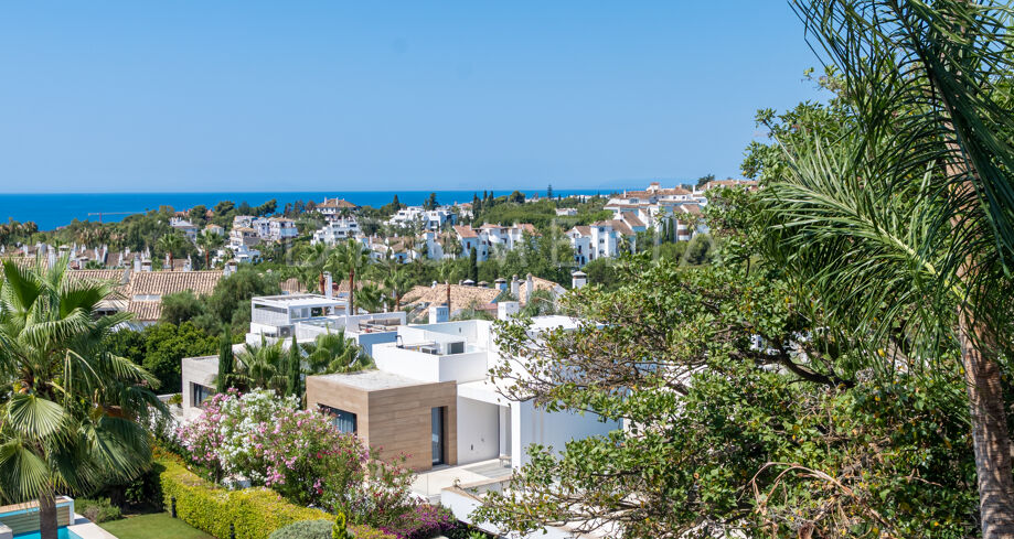 Denne totalrenoverte eiendommen ligger i det ettertraktede området Altos de Puente Romano, mindre enn 20 minutters gange fra det kjente Hotel Puente Romano, stranden og strandpromenaden som forbinder Marbella sentrum og den berømte Puerto Banús. Eiendommen ligger i Monte Marbella Club, et lukket og velholdt boligområde som garanterer privatliv og ro.