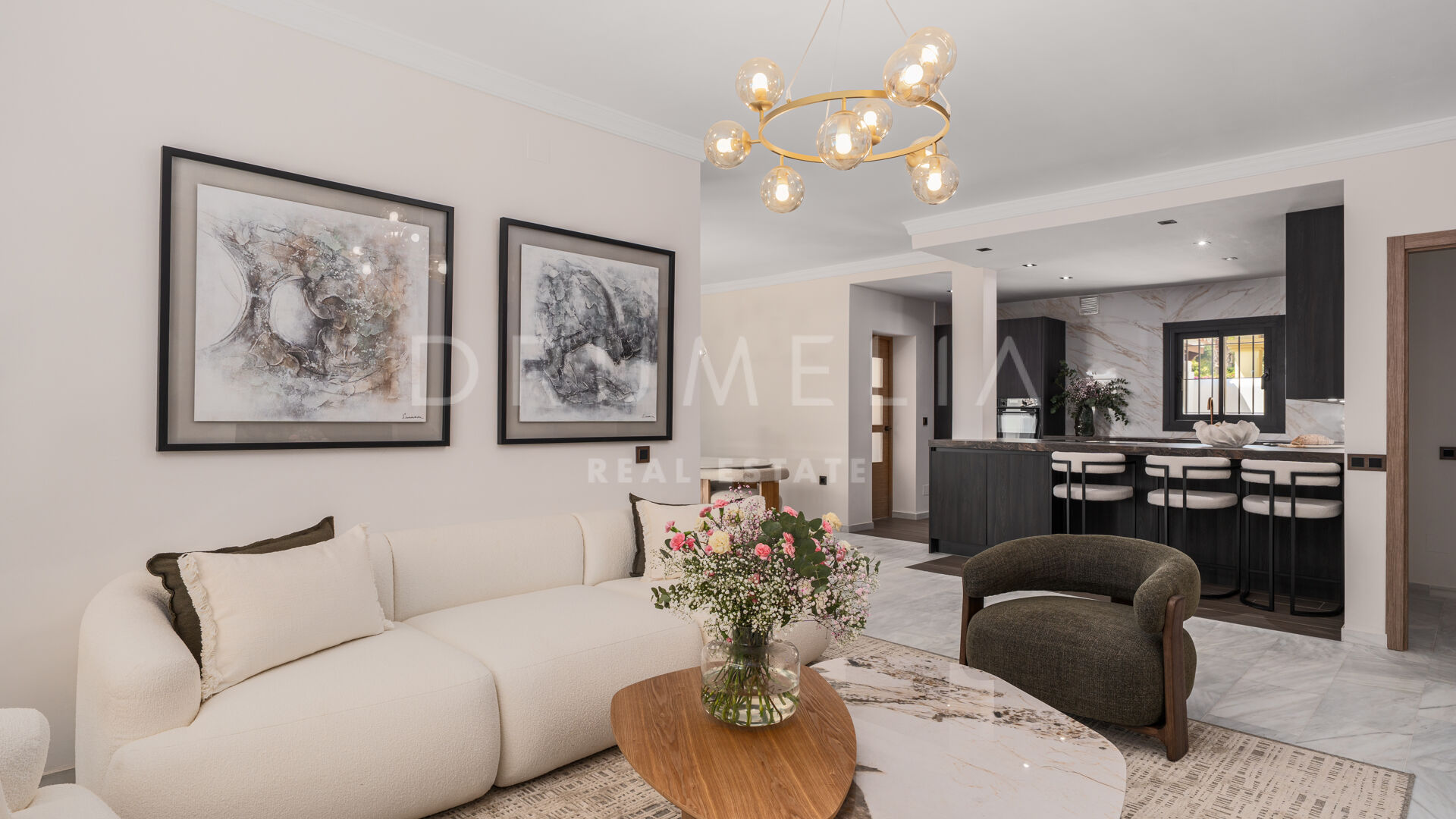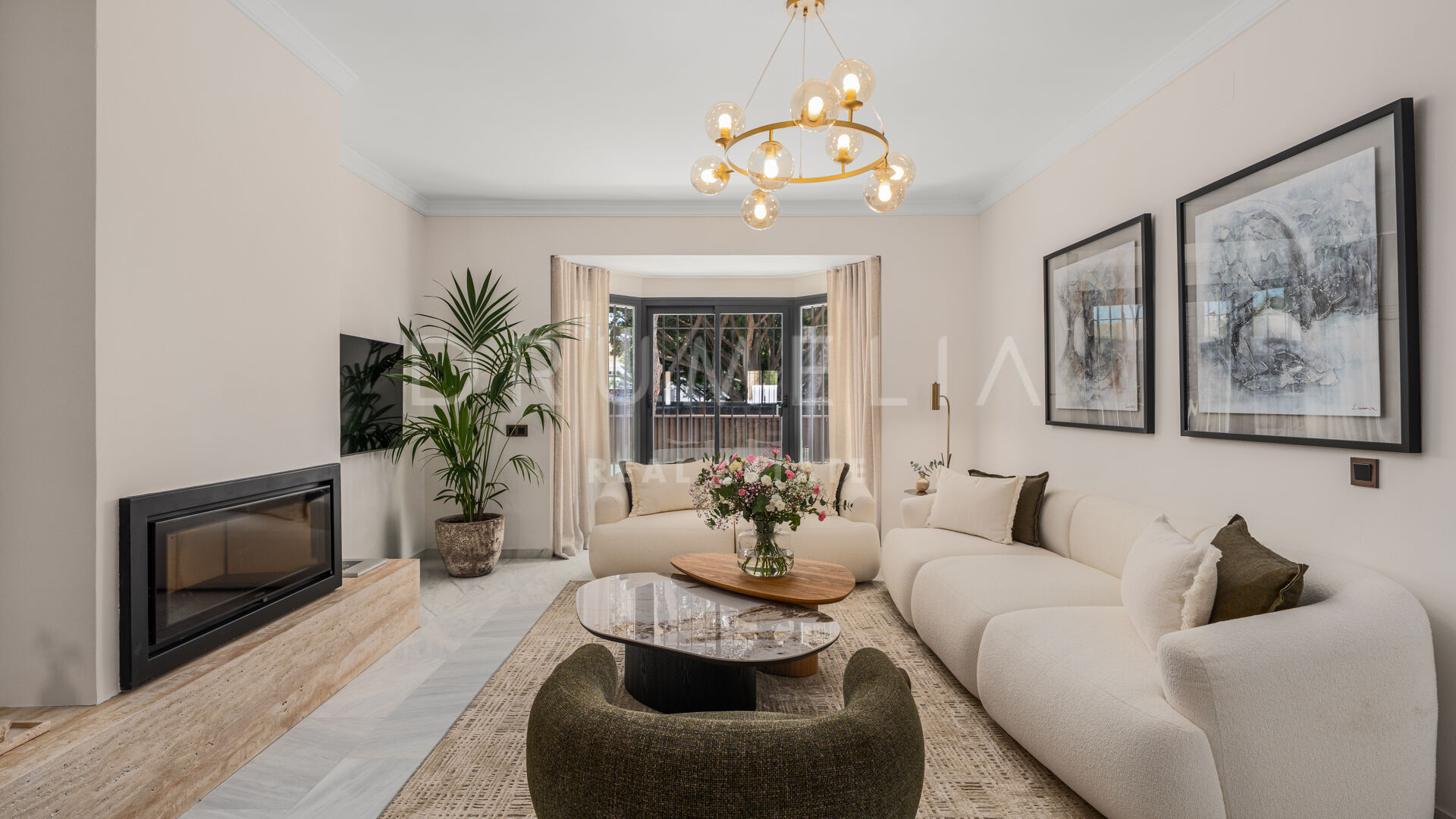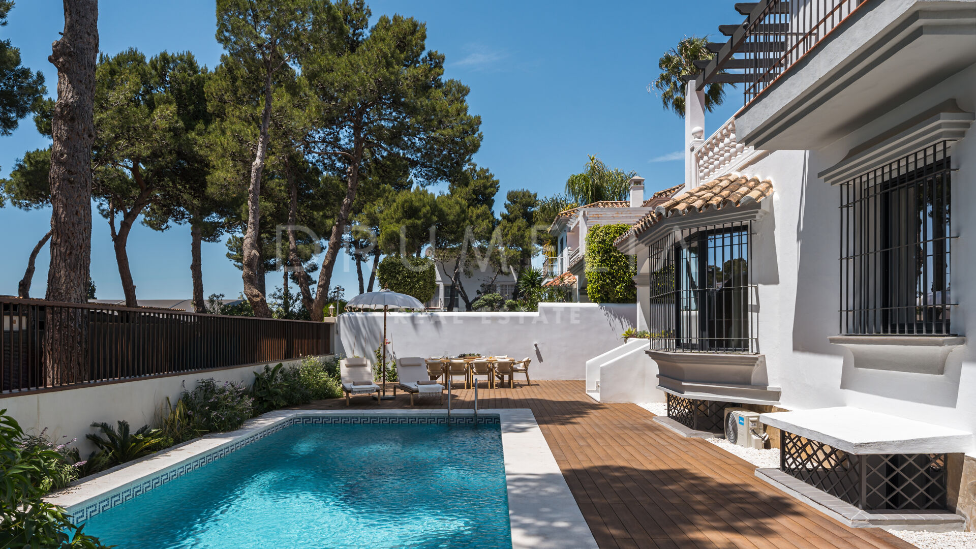Casa Los Momentos er en raffinert og romslig villa med 6 soverom til salgs, beliggende i det ettertraktede boligområdet Altos del Rodeo i Nueva Andalucía, bare minutter fra Puerto Banús og Marbellas beste fasiliteter. Spredt over tre nivåer med 315 kvadratmeter bebygd areal, representerer eiendommen en sjelden mulighet til å nyte den perfekte kombinasjonen av klassisk middelhavsarkitektur og moderne komfort på Costa del Sol.