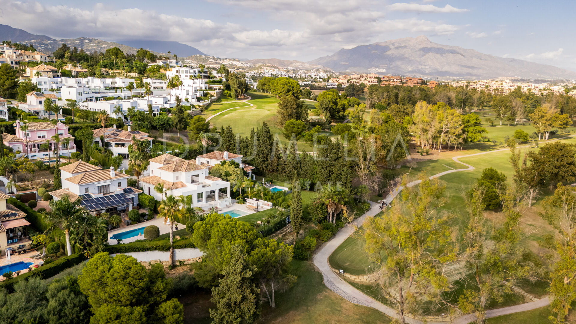 Villa med fem soverom til salgs i det rolige og eksklusive området Atalaya Golf, Benahavis, som ligger ved siden av den anerkjente Atalaya golfbane, og tilbyr fantastisk utsikt over de frodige greenene og havet. Området Atalaya er kjent for sin eksklusive atmosfære og rolige omgivelser, i nærheten av fasiliteter og attraksjoner av topp kvalitet, noe som gjør det til et ettertraktet reisemål for luksusliv.