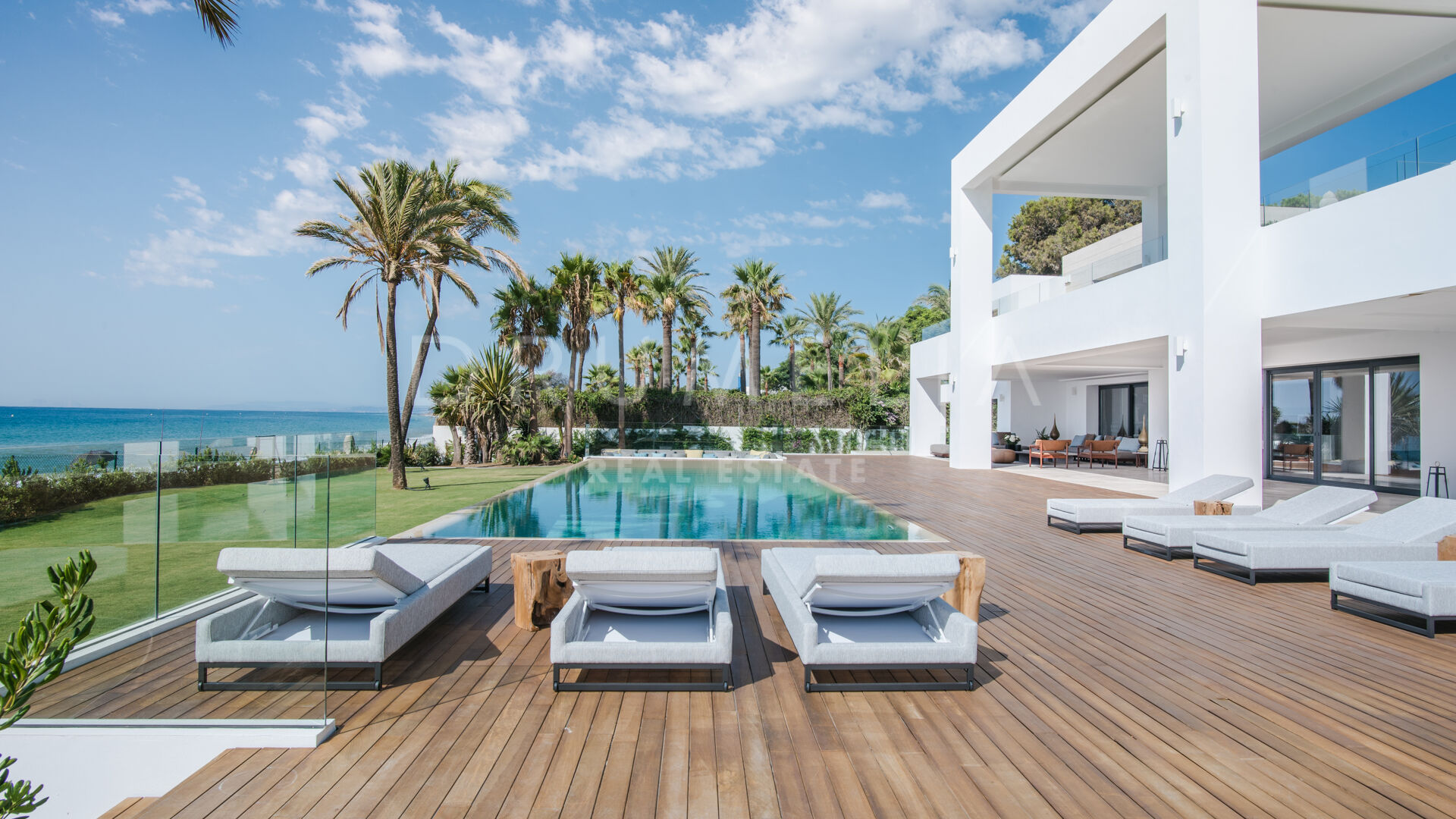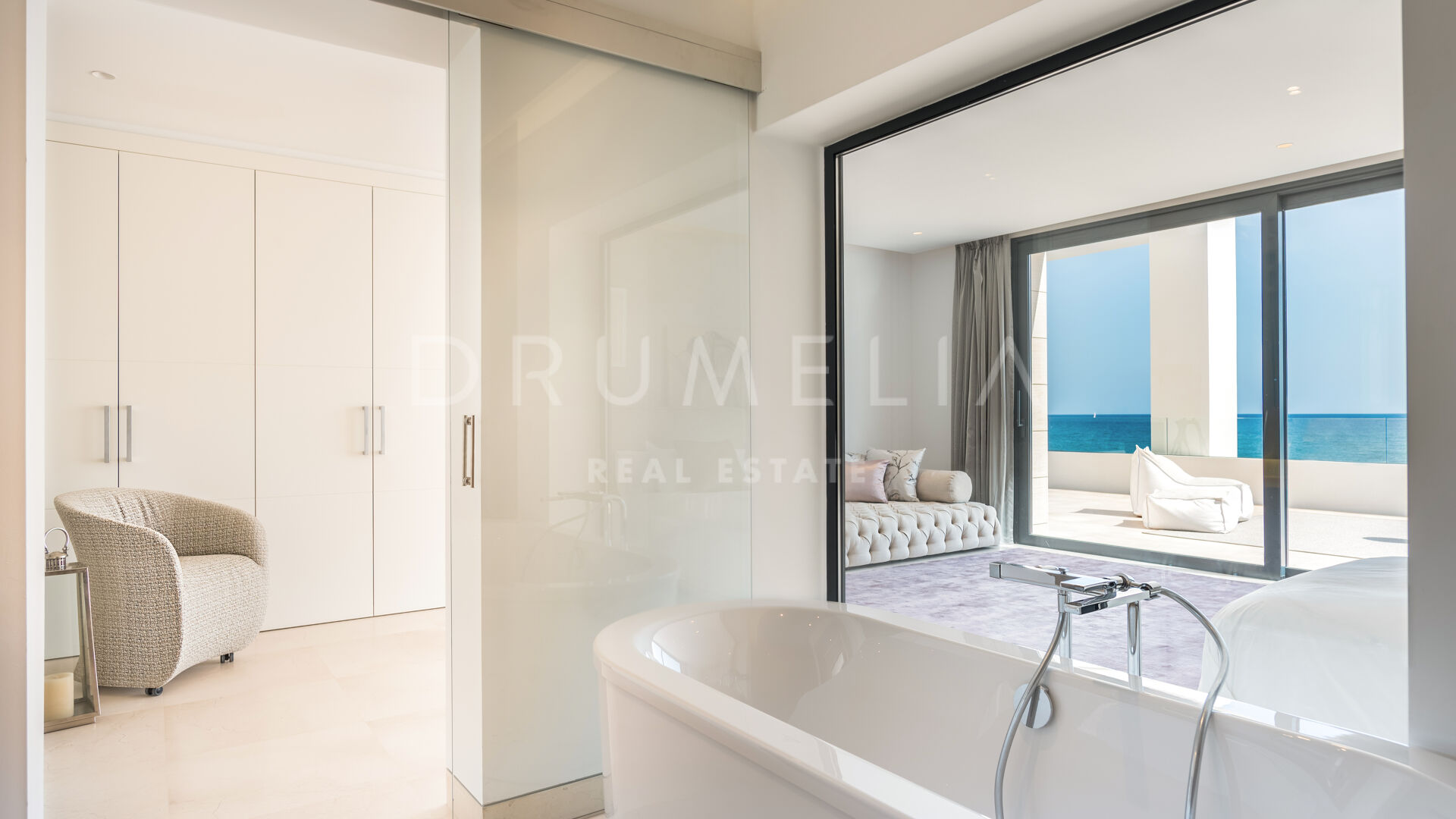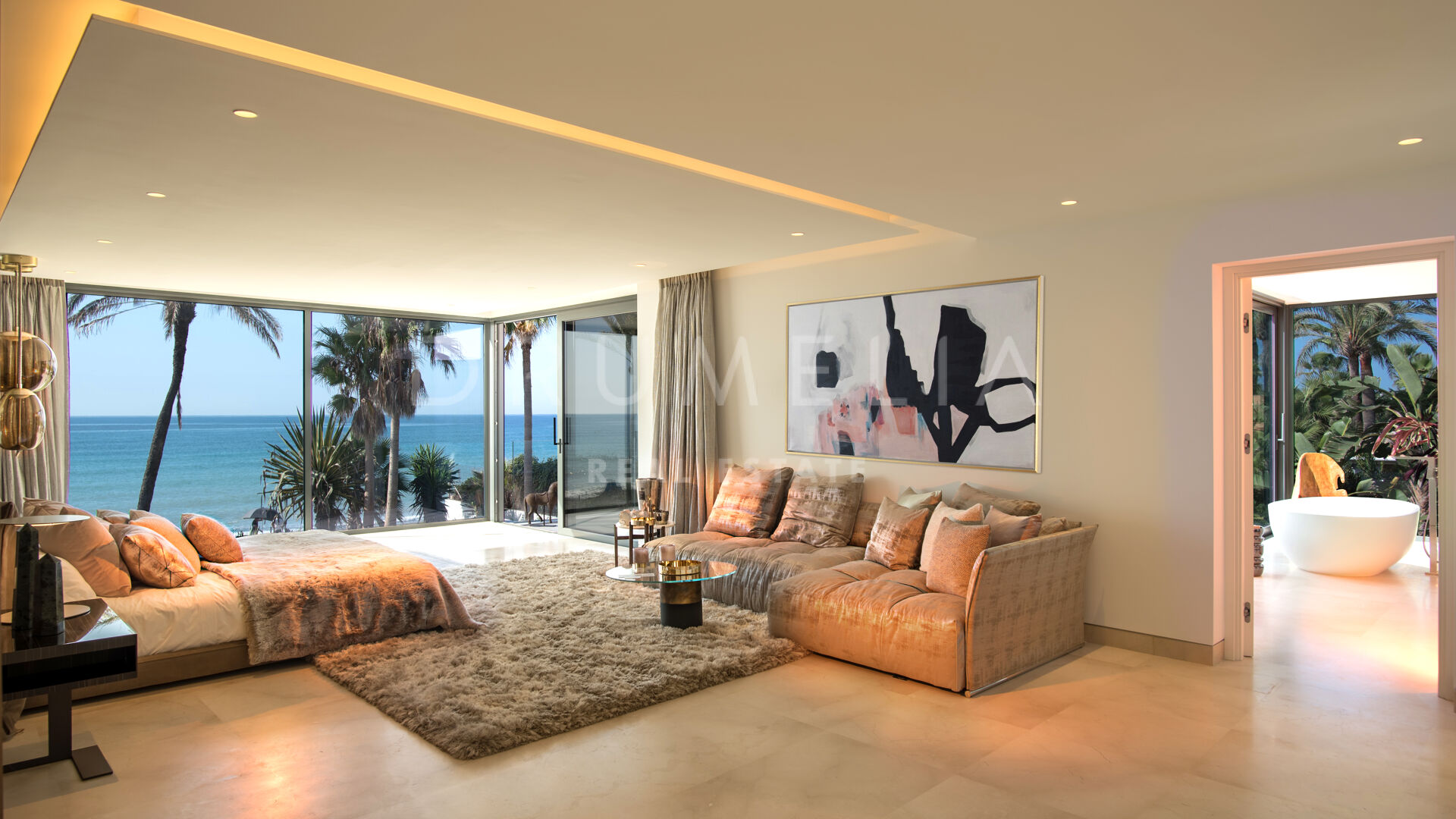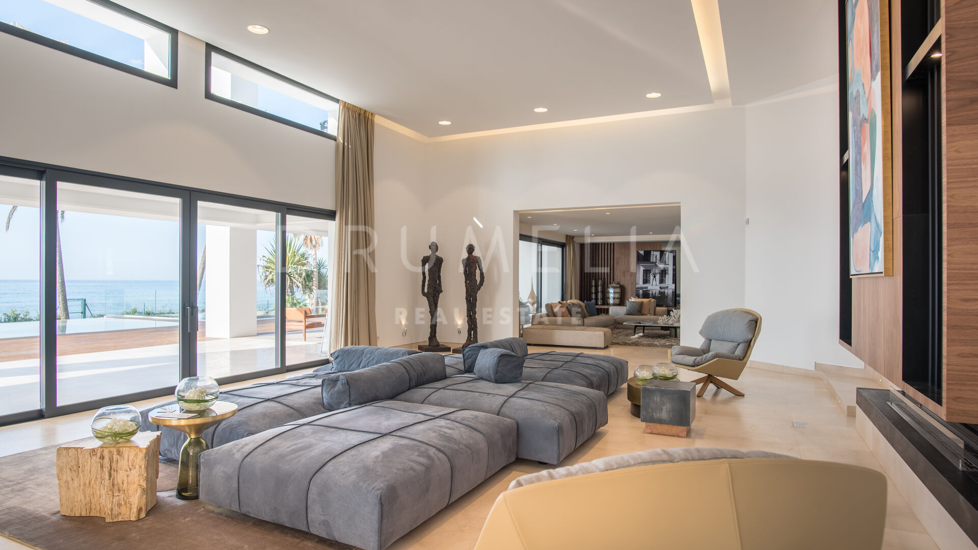 Villa til salgs i Beach Side New Golden Mile, Estepona Øst med 12 soverom, 13 baderom, 2 toaletter og har basseng (privat), garasje (privat) og hage (privat). Dimensjoner: 2513m² bygget, 4125m² tomt og 884m² terrasse.