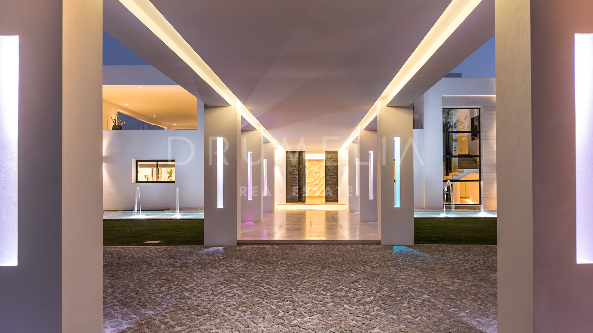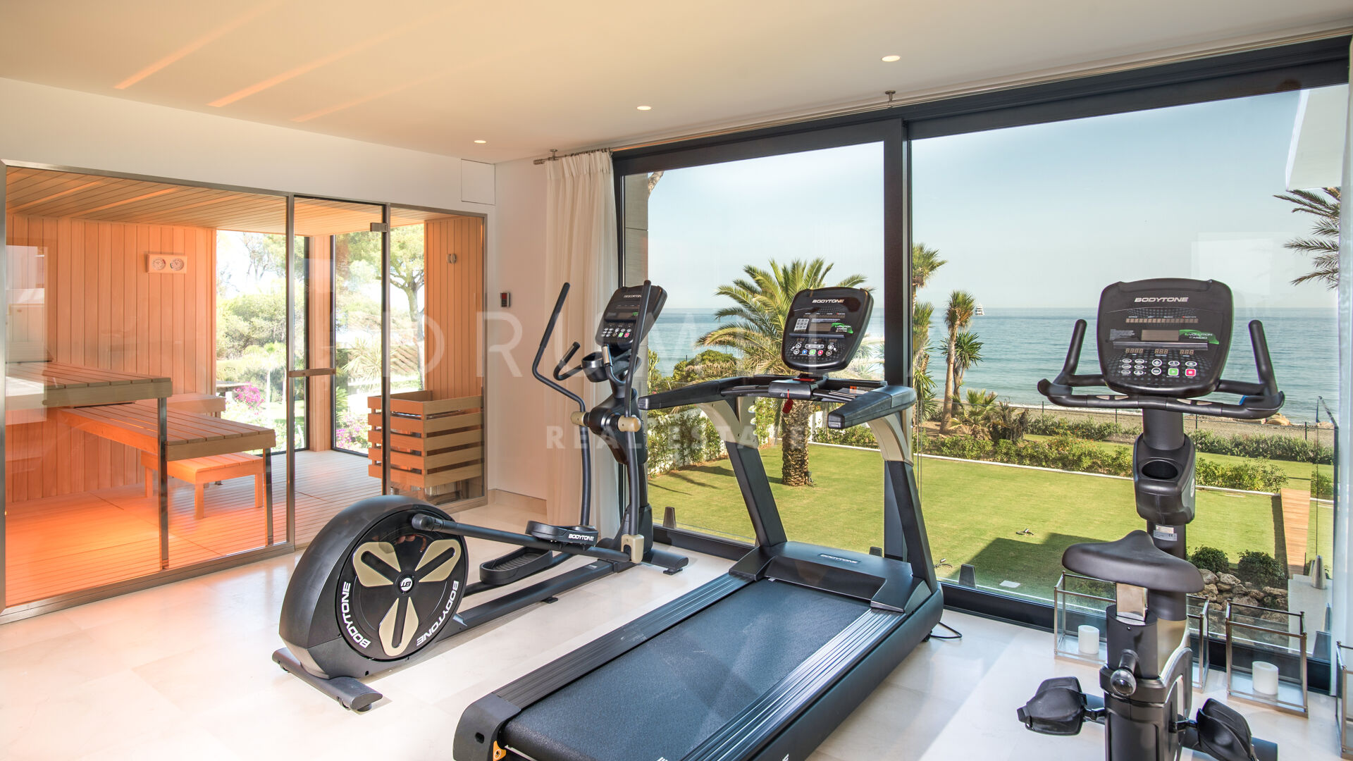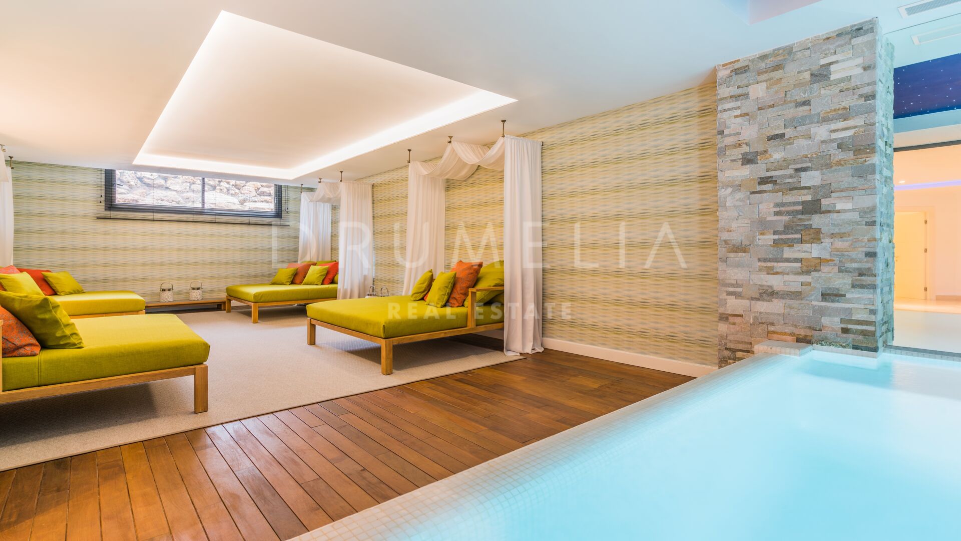 Villa til salgs i Beach Side New Golden Mile, Estepona Øst med 12 soverom, 13 baderom, 2 toaletter og har basseng (privat), garasje (privat) og hage (privat). Dimensjoner: 2513m² bygget, 4125m² tomt og 884m² terrasse.