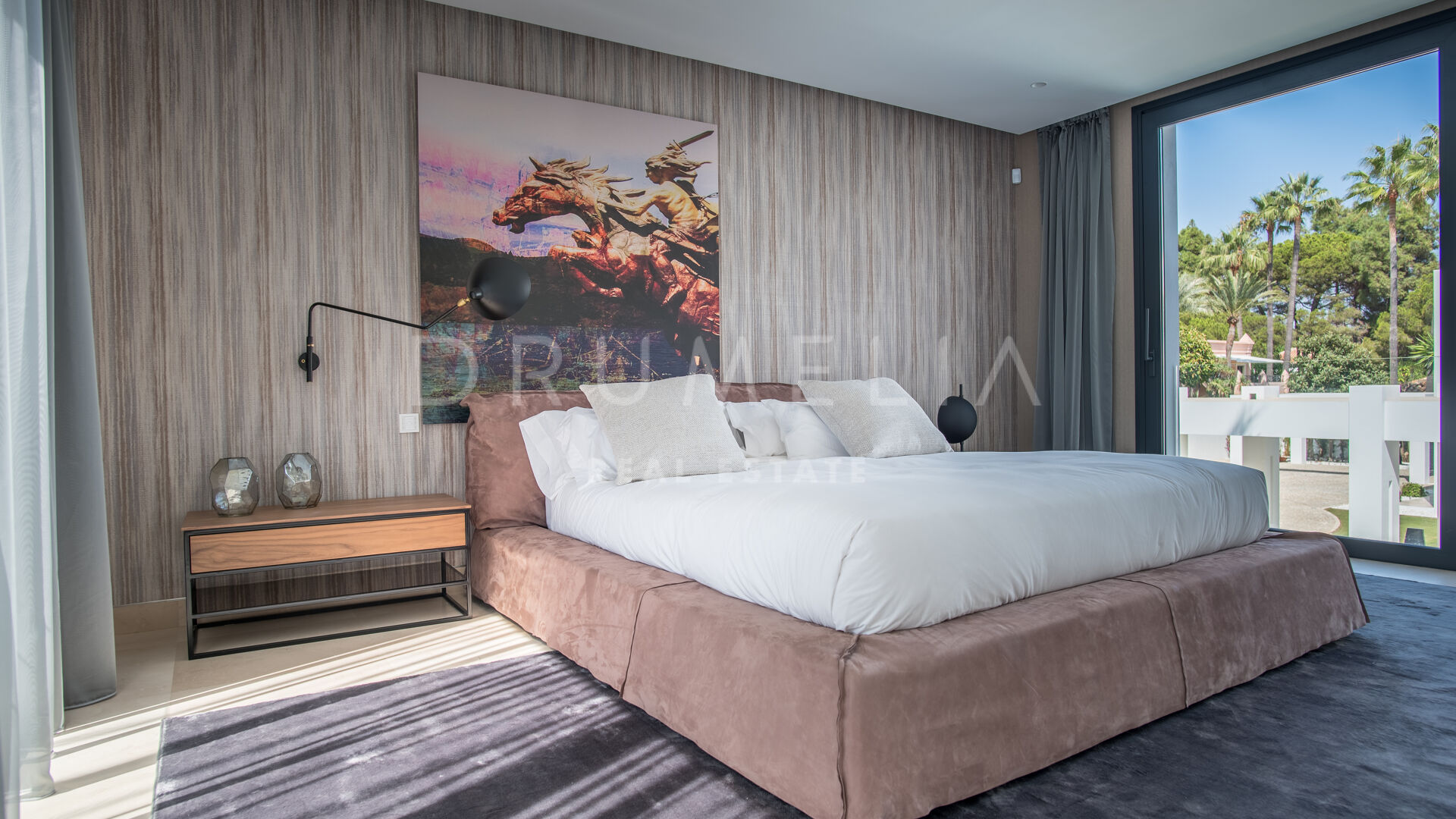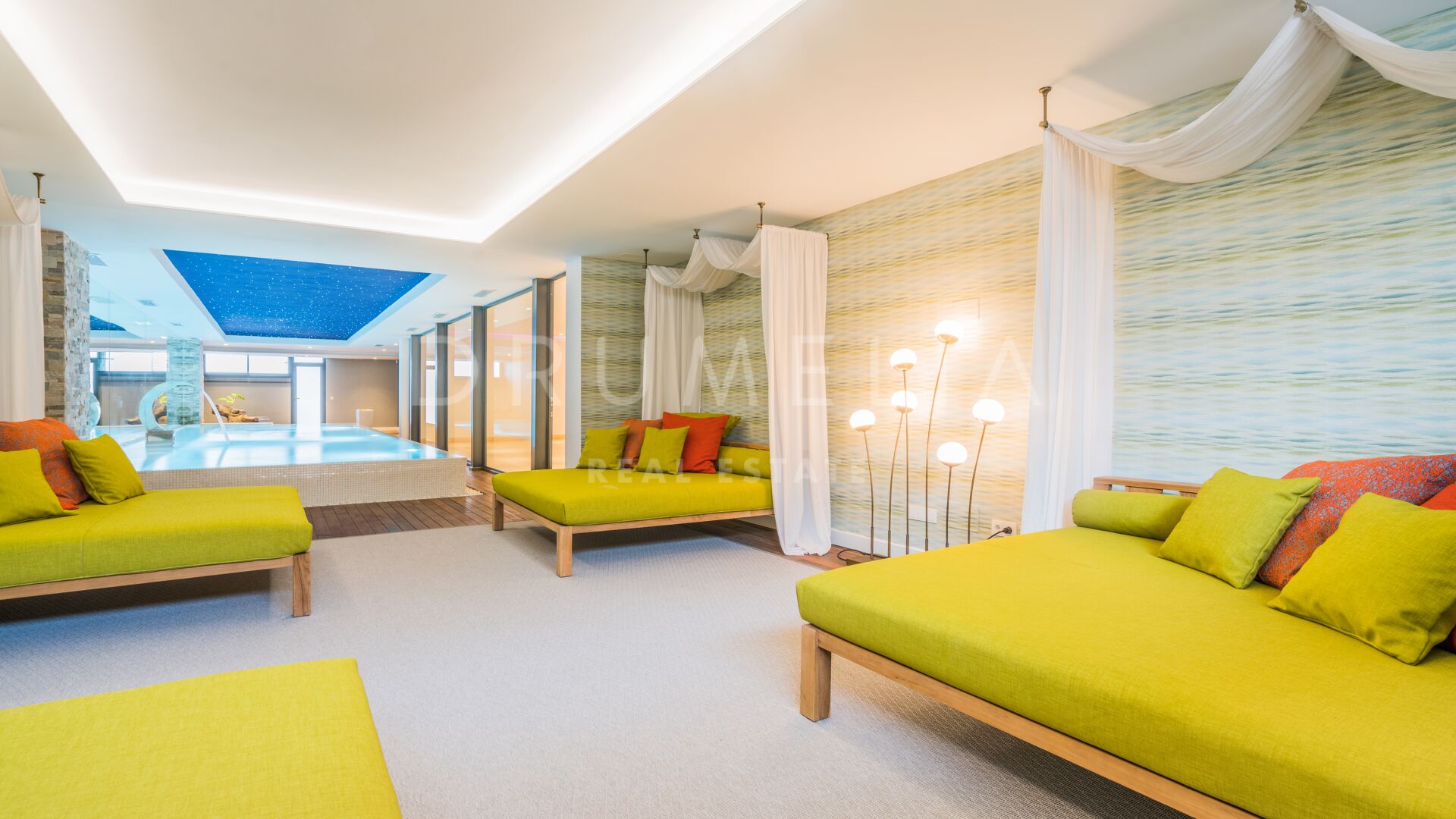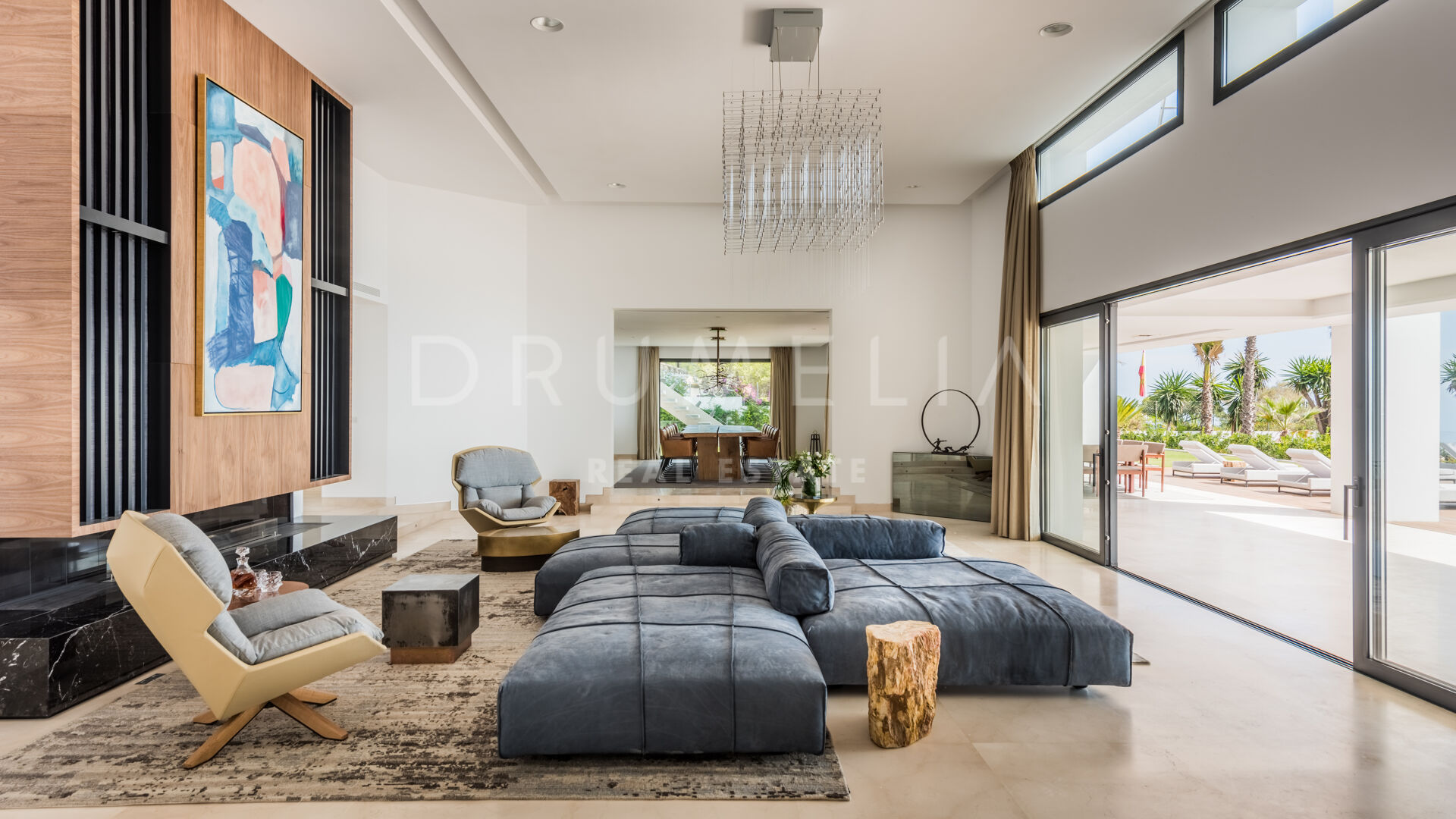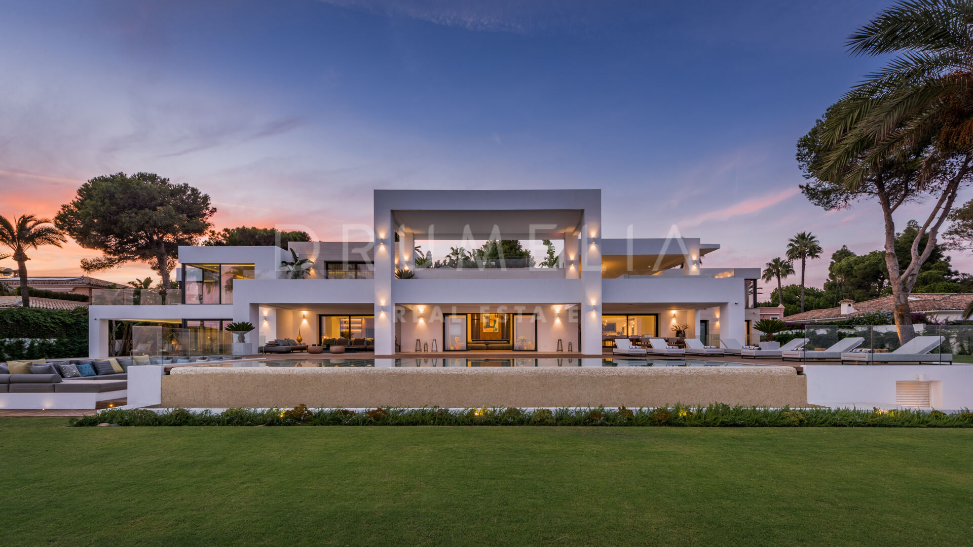 Villa til salgs i Beach Side New Golden Mile, Estepona Øst med 12 soverom, 13 baderom, 2 toaletter og har basseng (privat), garasje (privat) og hage (privat). Dimensjoner: 2513m² bygget, 4125m² tomt og 884m² terrasse.