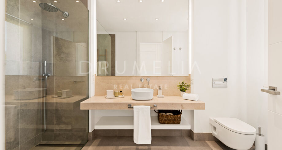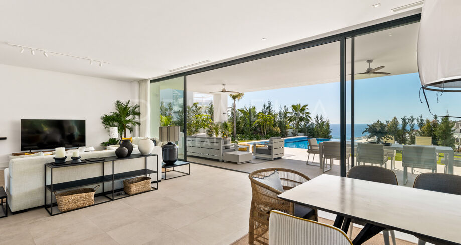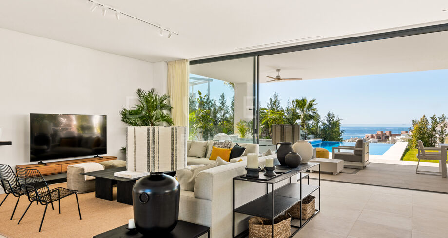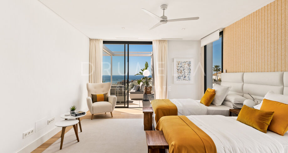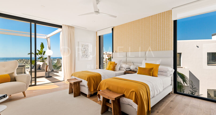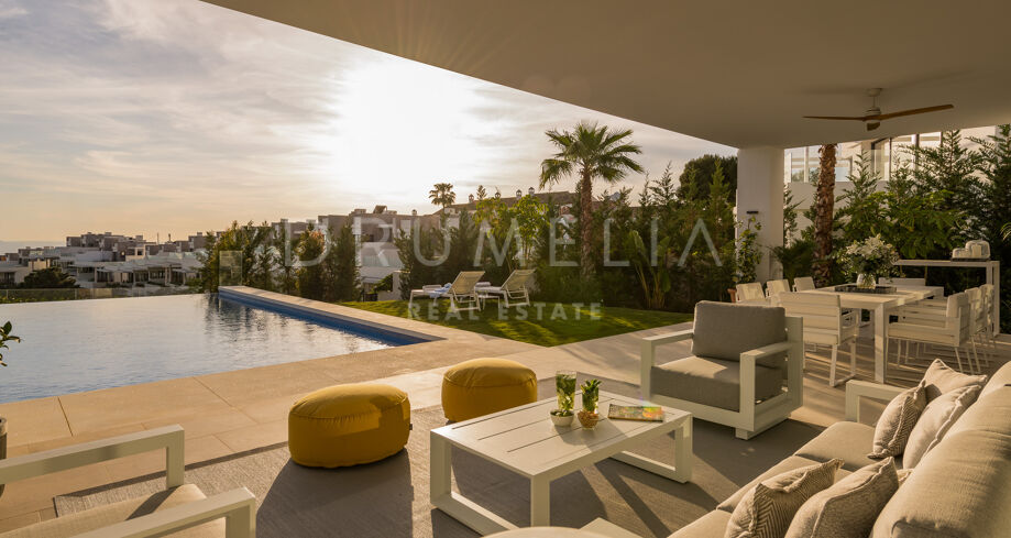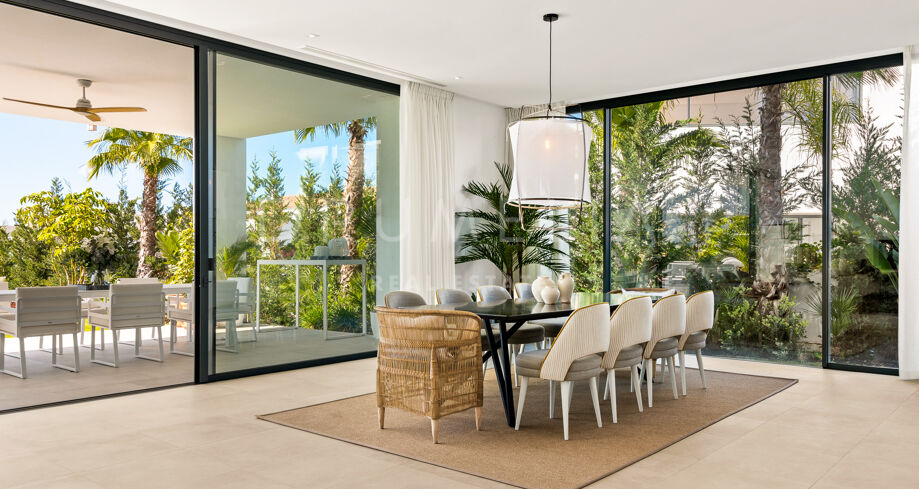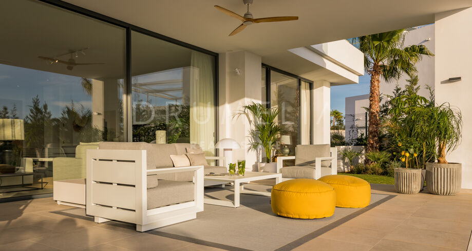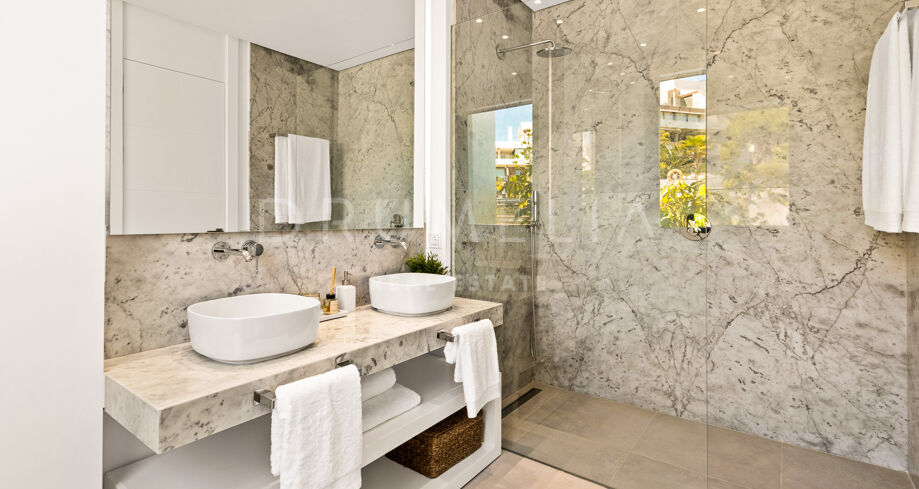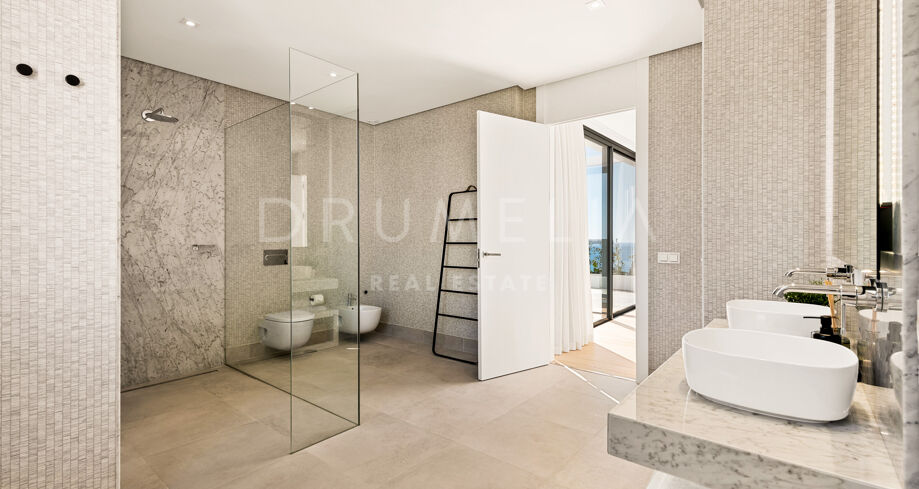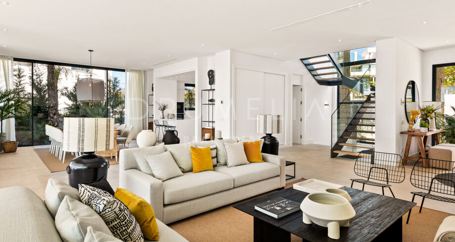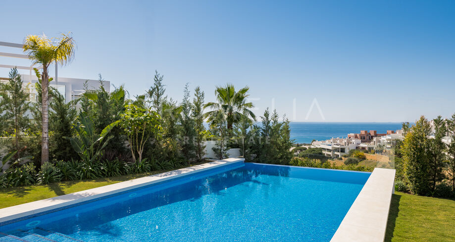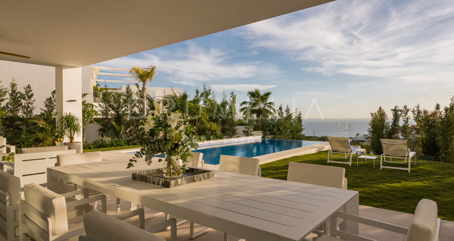 Villa til salgs i Cabopino, Marbella Øst med 5 soverom, 5 baderom, 1 toalett, innebygd 2021 og har basseng (privat), garasje (carport) og hage (privat). Dimensjoner: 635m² bygget, 852m² tomt og 149m² terrasse.