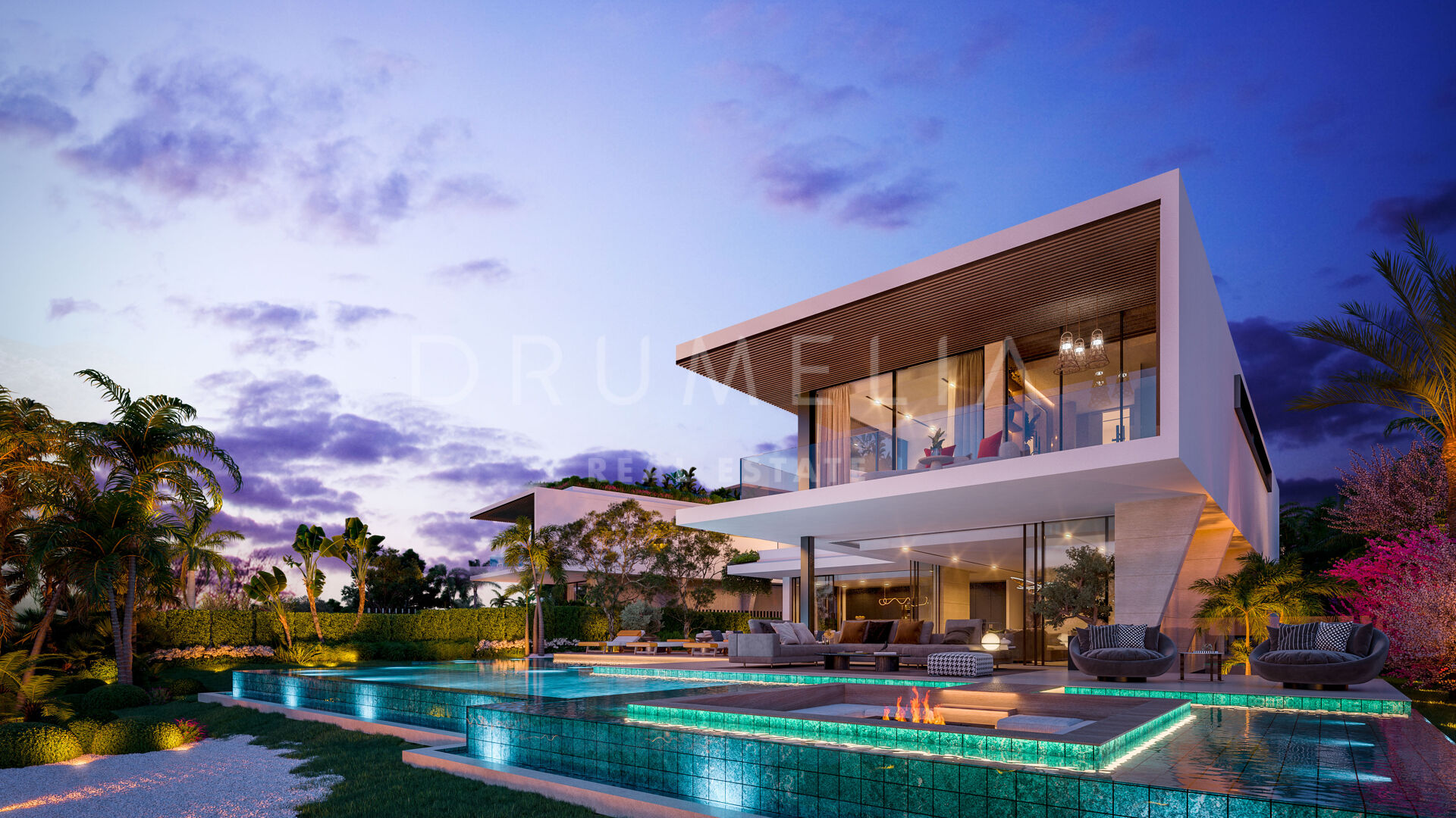 Villa til salgs i Cascada de Camojan, Marbella Golden Mile med 5 soverom, 6 baderom, 4 baderom med eget bad, 1 toalett, innebygd 2026 og har basseng (privat), garasje (privat) og hage (privat). Dimensjoner: 1767m² bygget, 1253m² tomt og 635m² terrasse.