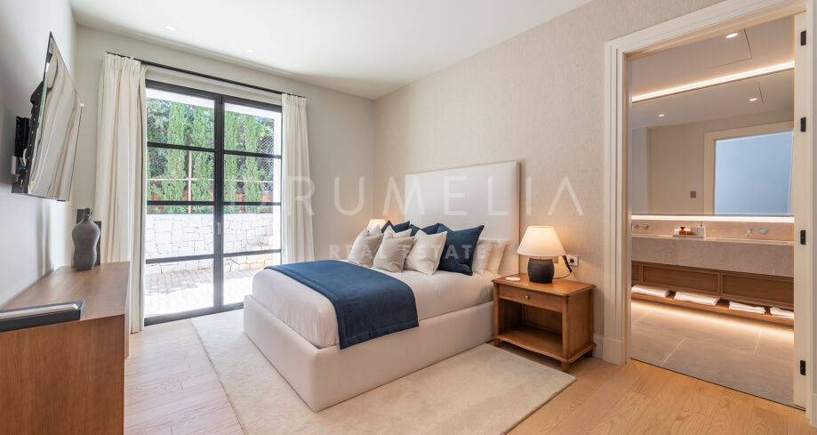 Villaen har 5 omhyggelig designede soverom med eget bad og 2 gjestetoaletter, noe som gir eksepsjonell komfort for beboere og gjester. Den anerkjente interiørarkitekten Rina Rankova har innredet hvert soverom til perfeksjon. Villaen er utstyrt med toppmoderne teknologi og et sofistikert sikkerhetssystem, inkludert videoinngang, et avansert alarmsystem og overvåkningskameraer, noe som sikrer det høyeste sikkerhetsnivået.