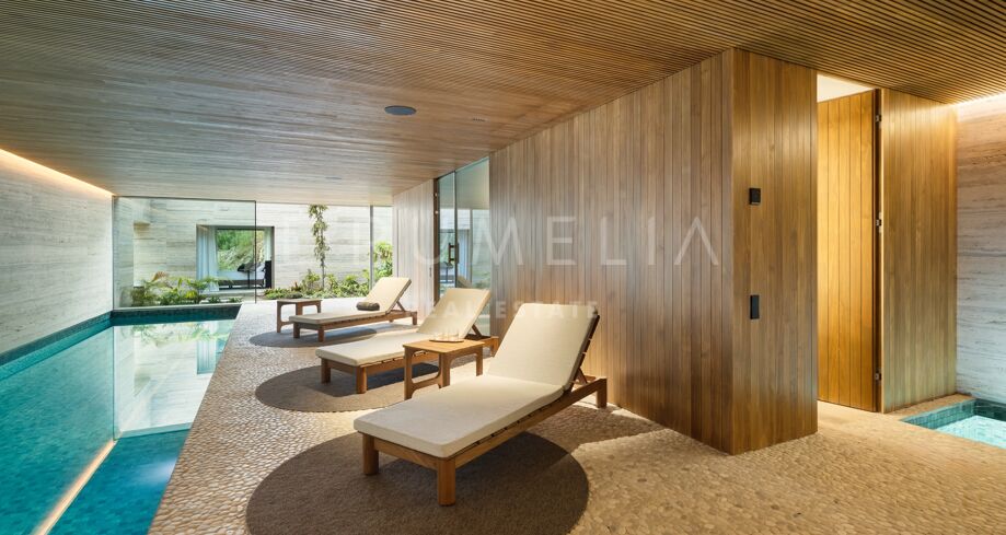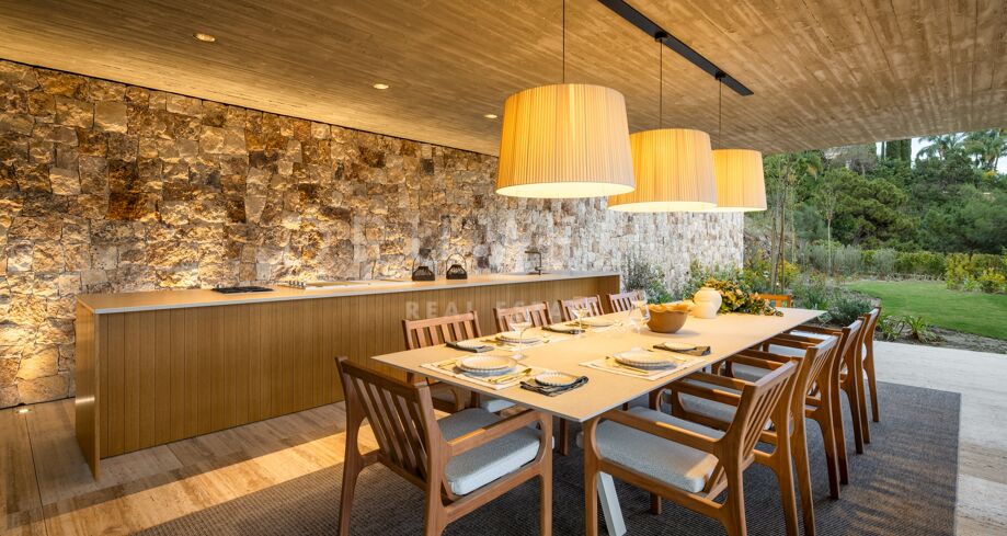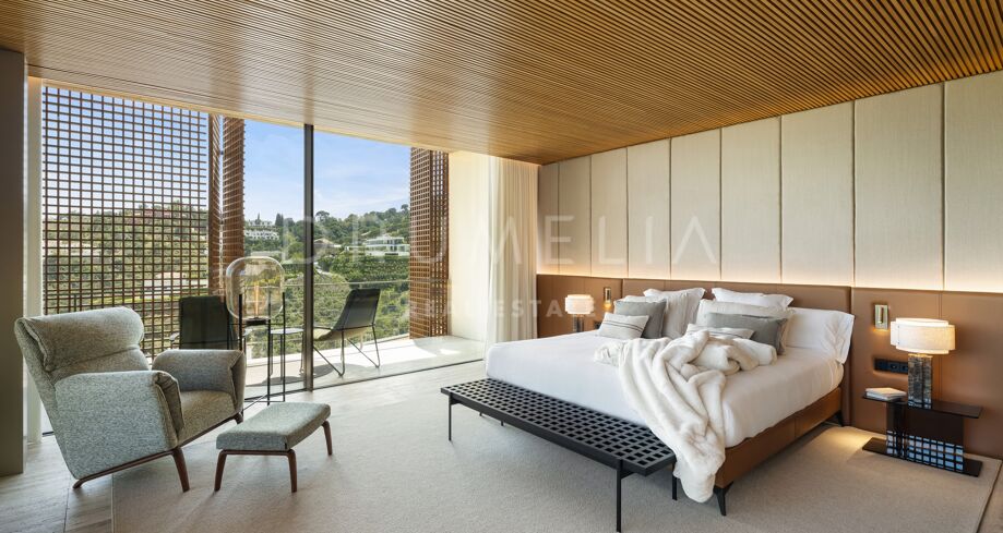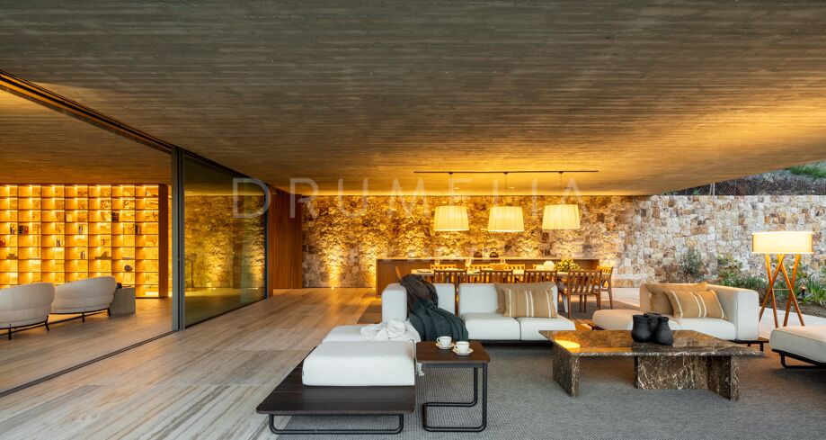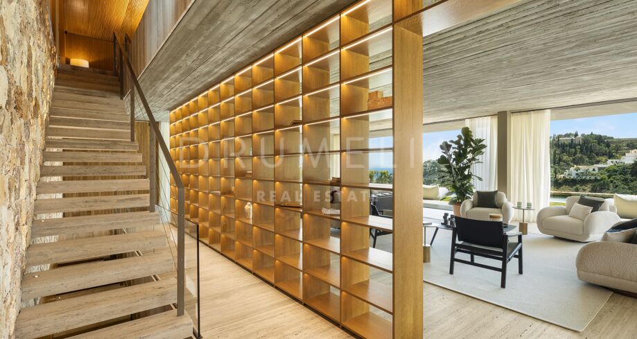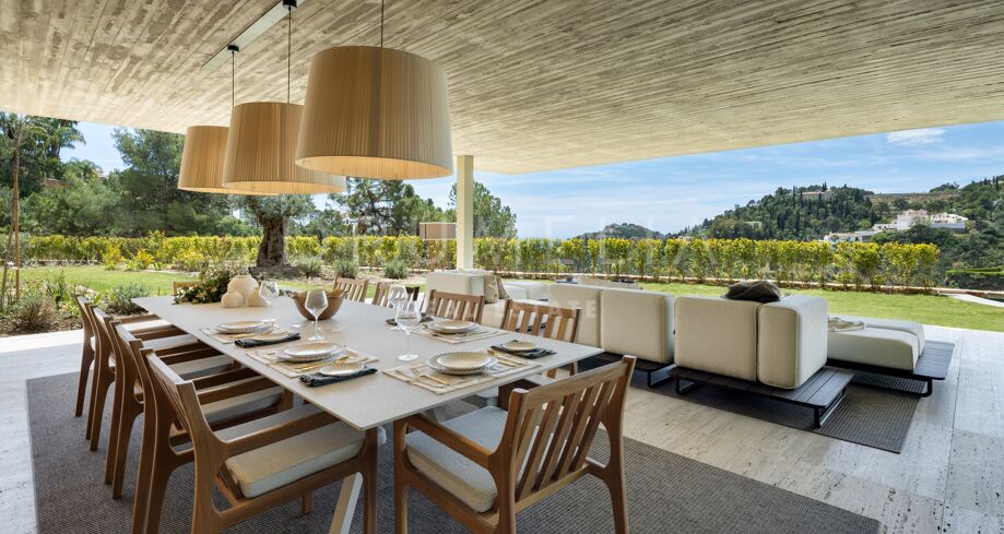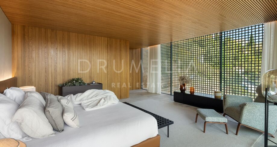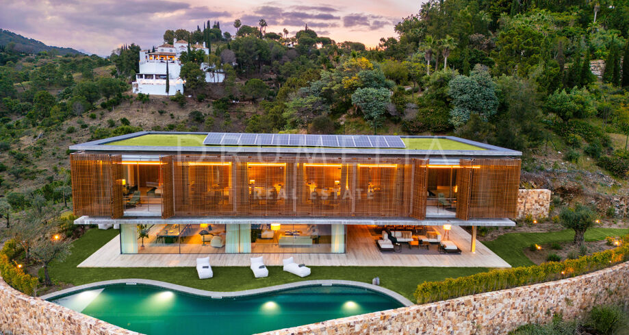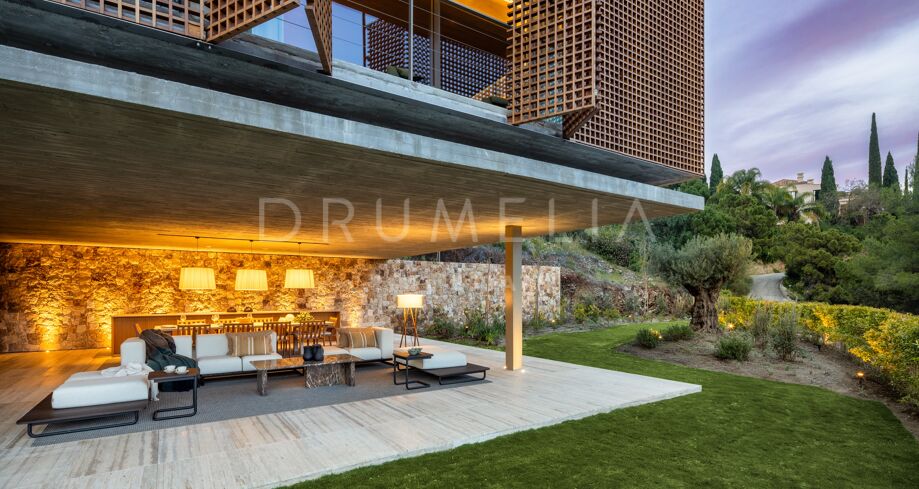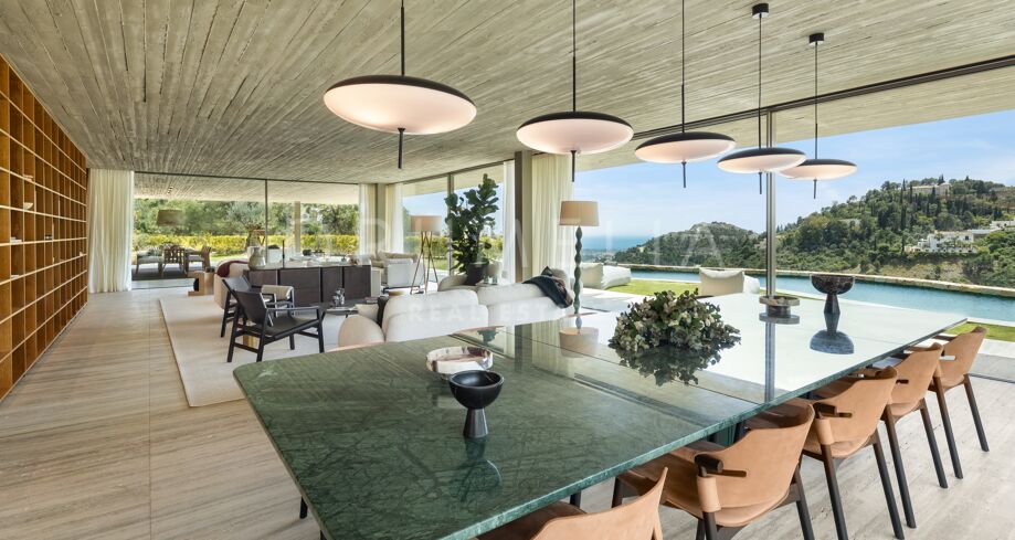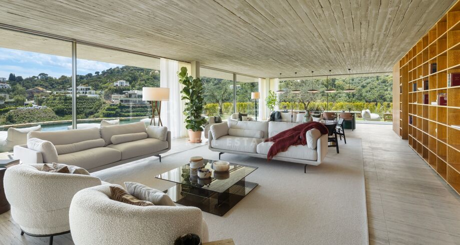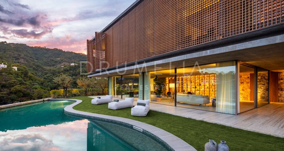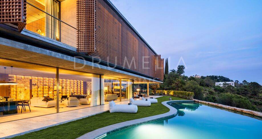 I det eksklusive området El Madroñal i Benahavís finner du denne arkitektoniske perlen som setter en ny standard for luksusliv på Costa del Sol. Villaen er designet av den prisbelønte arkitekten Marcio Kogan i samarbeid med Lamar Development, og byr på spektakulær utsikt over Middelhavet og fjellene omkring. Den moderne utformingen smelter harmonisk sammen med det grønne hageanlegget, hvor et elegant svømmebasseng står i sentrum.