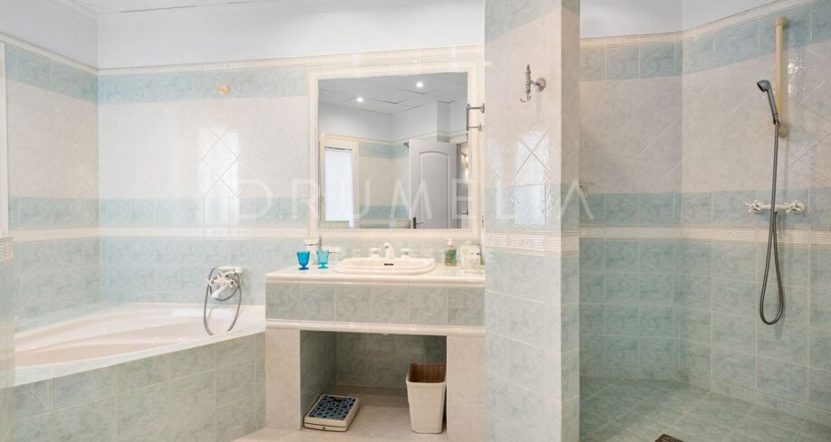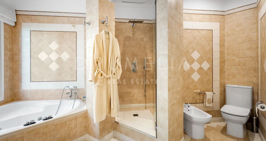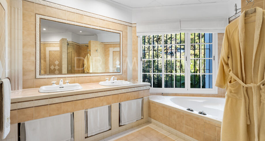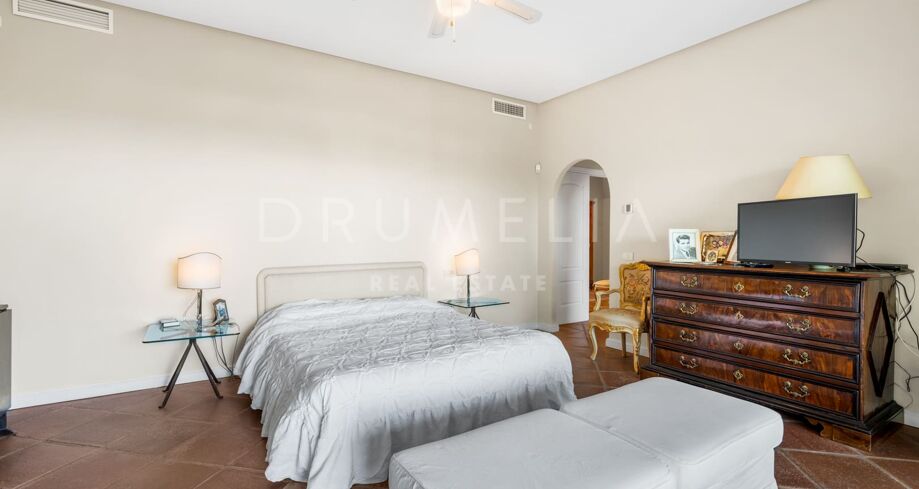 Villaen er vendt mot sørvest for å dra nytte av naturlig lys og solnedganger over Marbella-bukten, og er designet for et komfortabelt og sofistikert liv. Hovedetasjen har fem romslige soverom med eget bad, mens den nedre etasjen har en ekstra gjestesuite, ideell for familie eller besøkende.