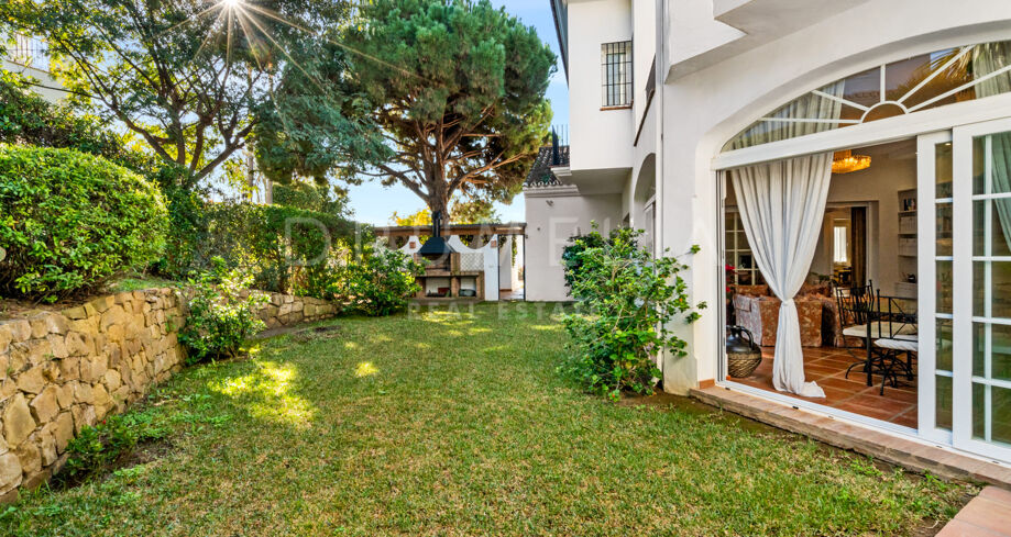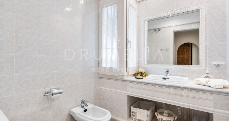 Hovedstuen har en peis som gir varme og er forbundet med en utendørs grillplass som er perfekt for underholdning, omgitt av modne hager som garanterer total privatliv. En heis forbinder alle etasjer, og den underjordiske garasjen tilbyr god plass til flere biler.