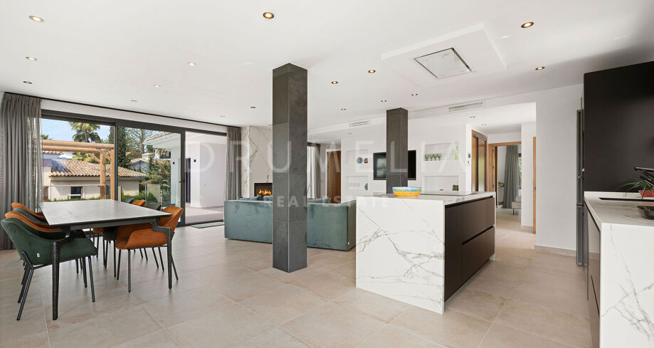 Boligen har klimaanlegg, gulvvarme, privat garasje og moderne sikkerhetssystem. Beliggenheten gir enkel tilgang til noen av regionens beste strender, golfbaner, internasjonale skoler og restauranter. Marbella sentrum og Puerto Banús ligger kun en kort kjøretur unna, noe som gjør dette til et ideelt hjem eller en luksuriøs feriebolig.