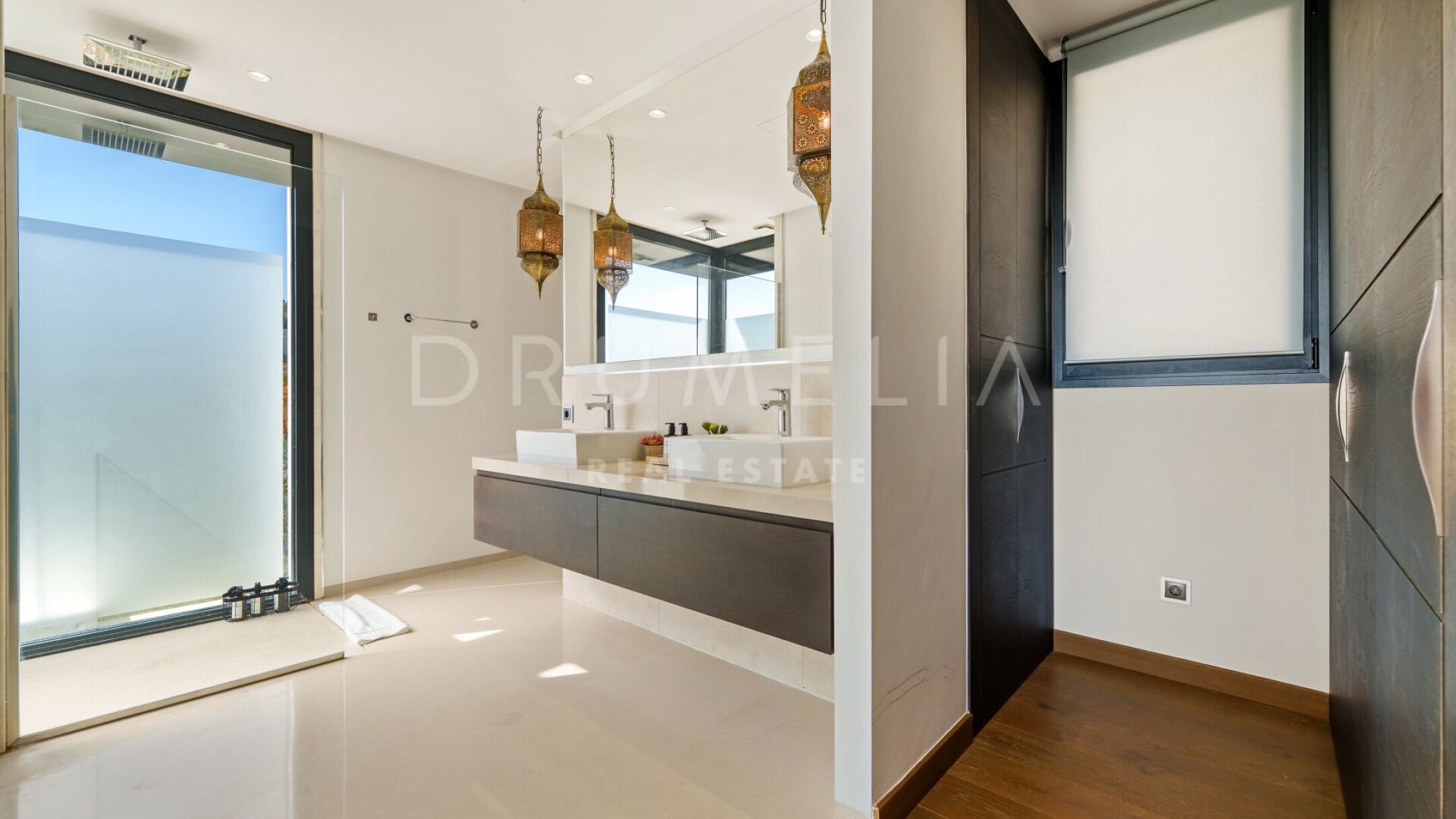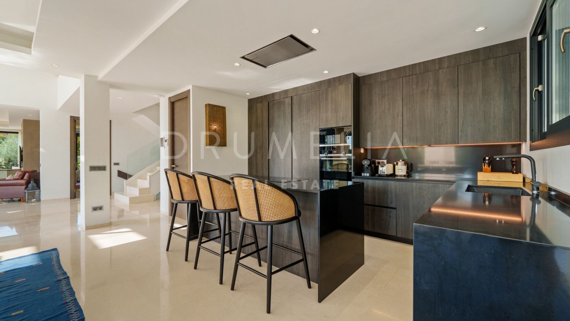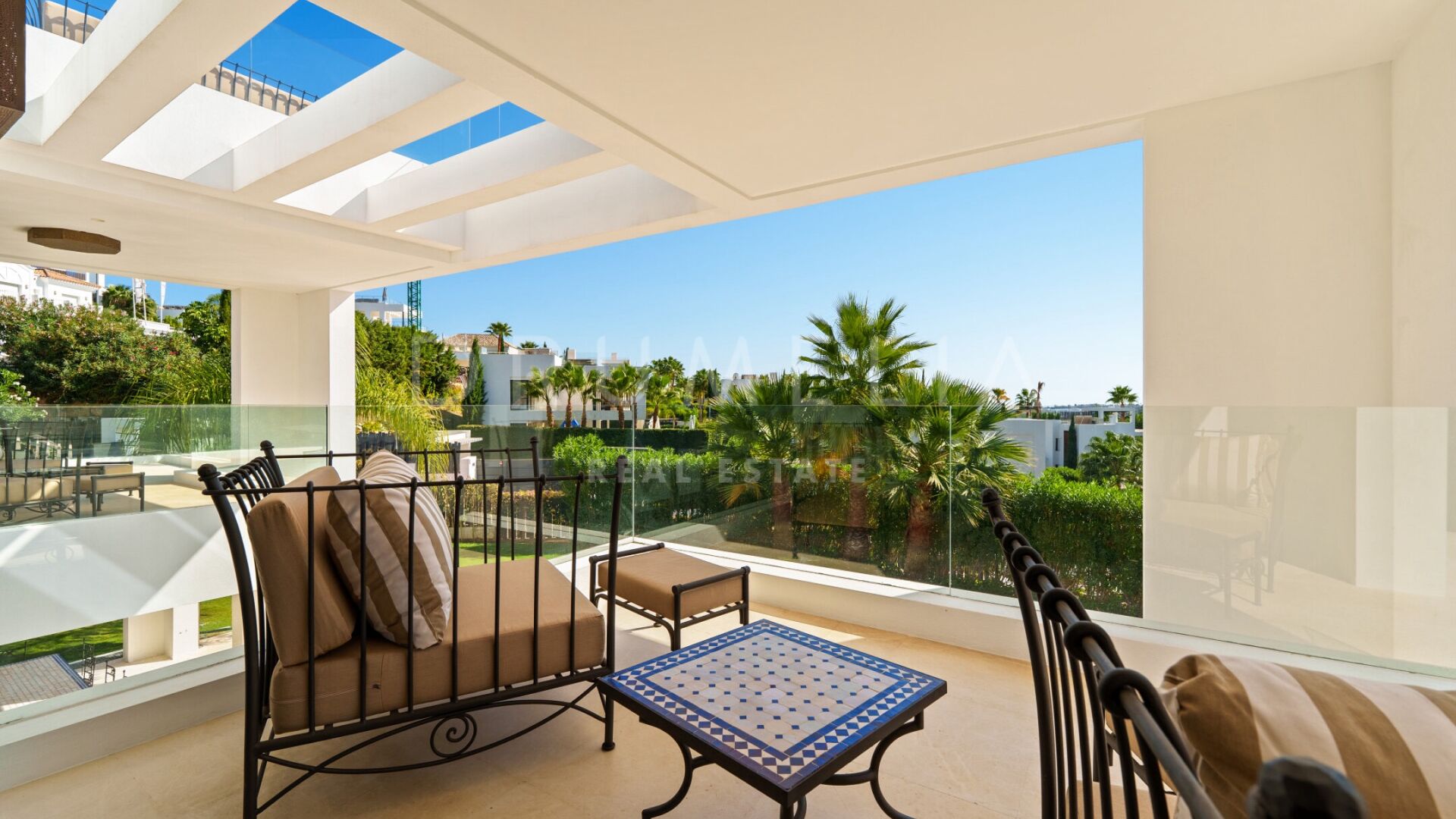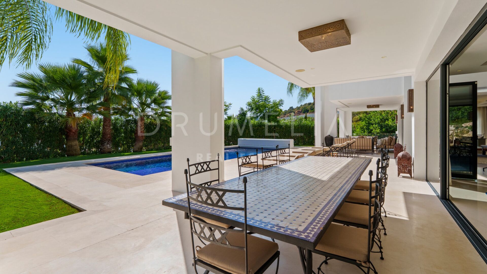 Denne vakre boligen i Haza del Conde, Nueva Andalucía, kombinerer moderne eleganse med klassisk andalusisk sjarm. Arkitekturen forener rene linjer med håndlagde detaljer og maurisk inspirasjon, som skaper en varm og sofistikert atmosfære. Store glassdører slipper inn rikelig med naturlig lys, mens spesialdesignede lamper, tekstiler og møbler gir personlighet og karakter.