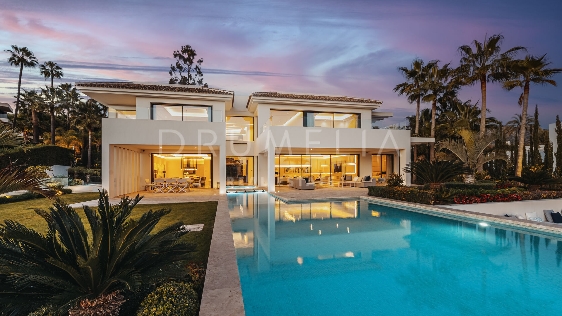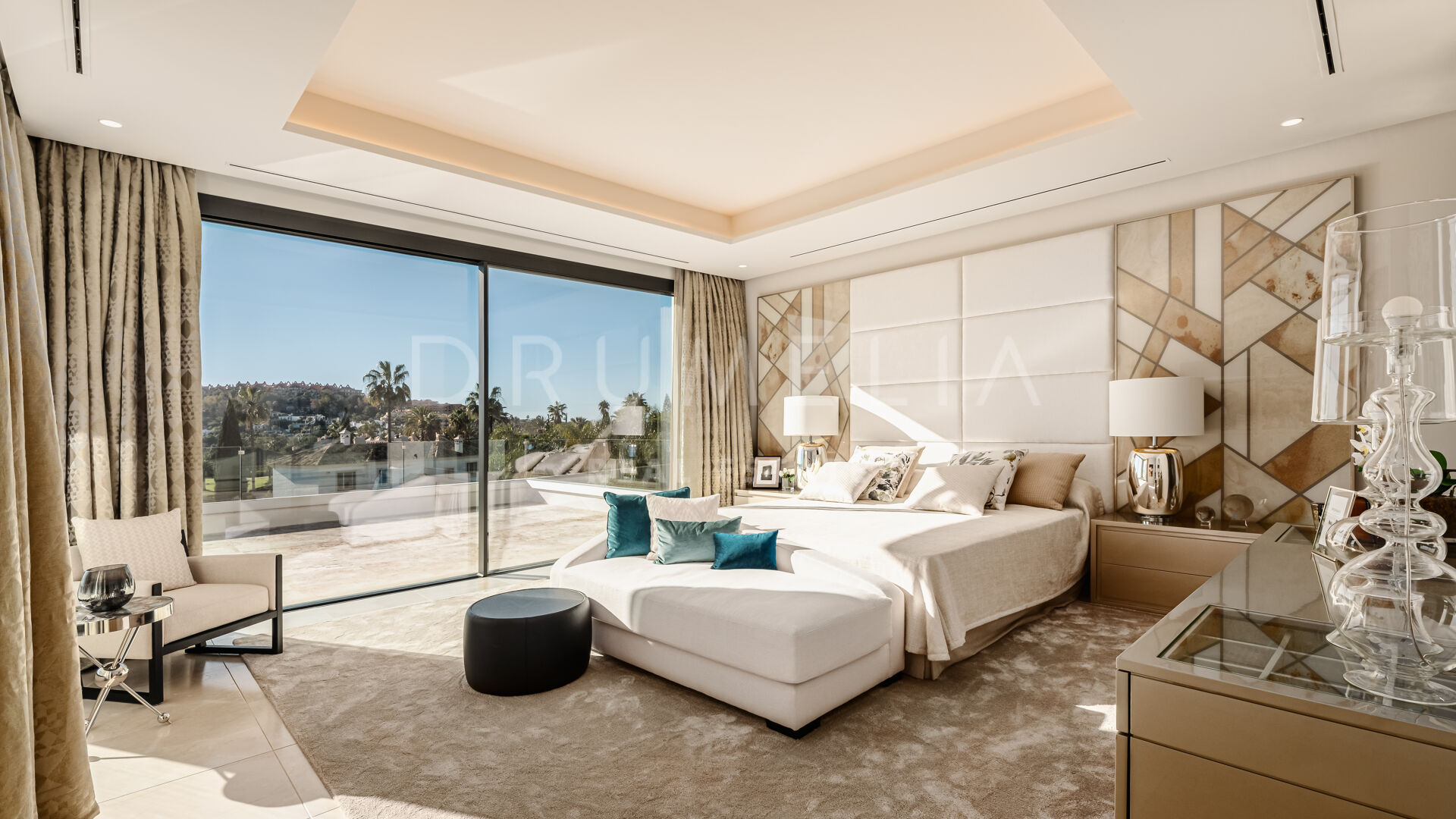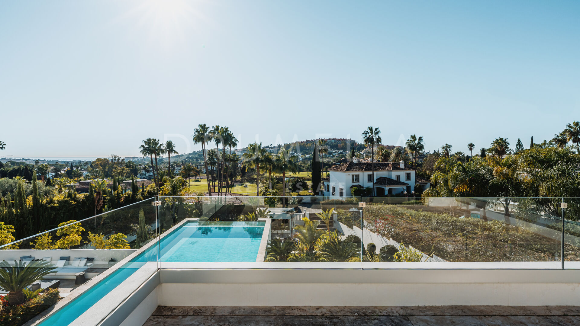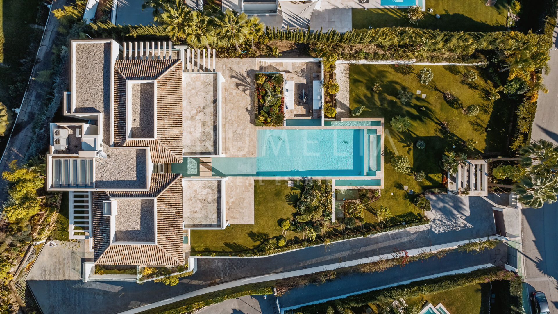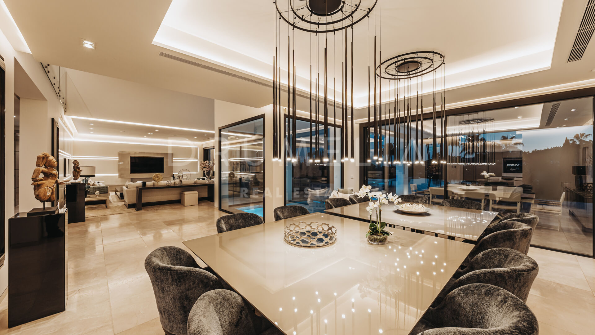 Dette spektakulære huset er omgitt av golfbaner og lignende luksuseiendommer i Nueva Andalucía, og er virkelig et av de mest eksepsjonelle husene i området. Det ligger i nærheten av alt du trenger: internasjonale skoler, butikker, restauranter og barer, flere golfbaner, et kasino, sandstrender og strandklubber, alle fasiliteter i livlige Nueva Andalucía, glamorøse Puerto Banus, San Pedro og Marbella sentrum.