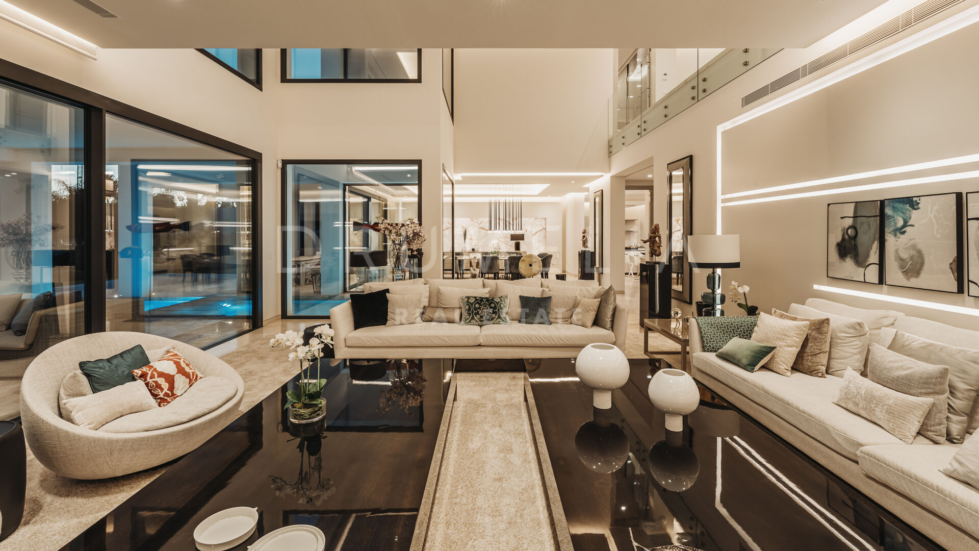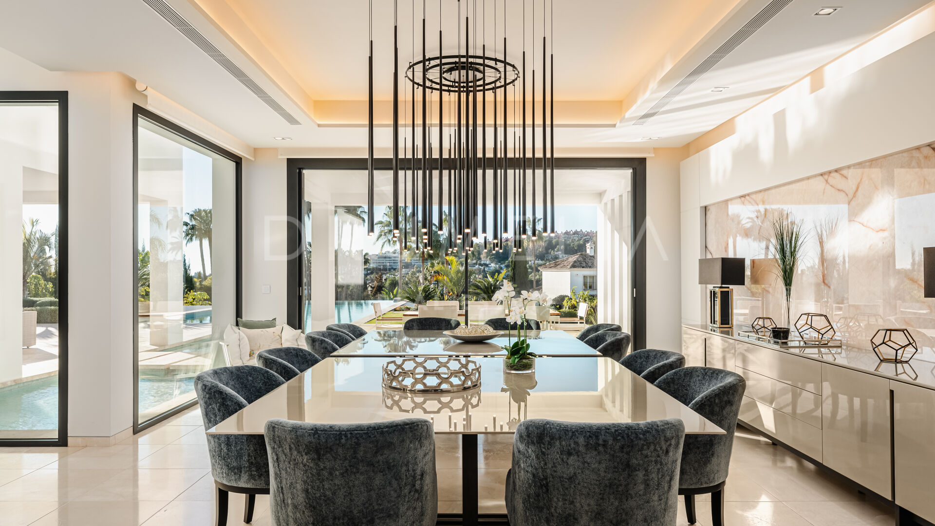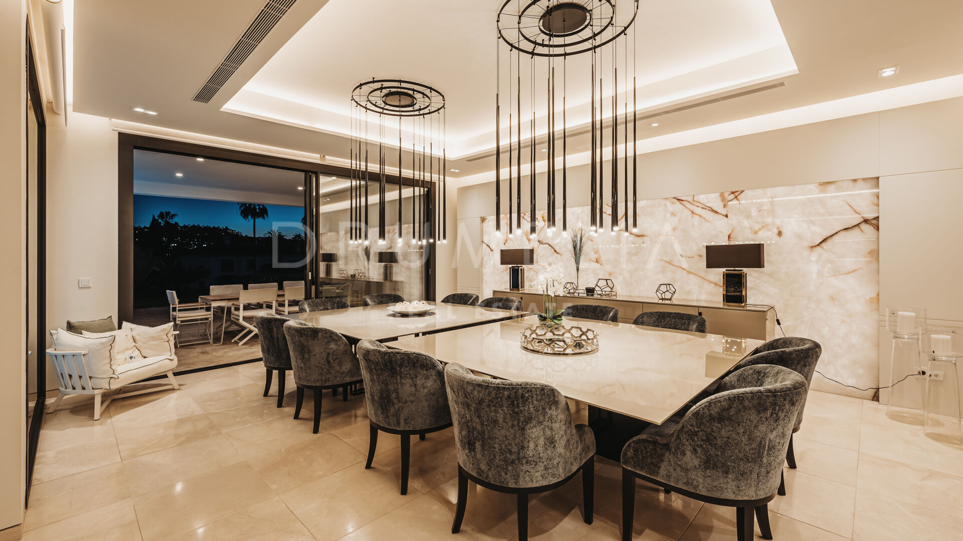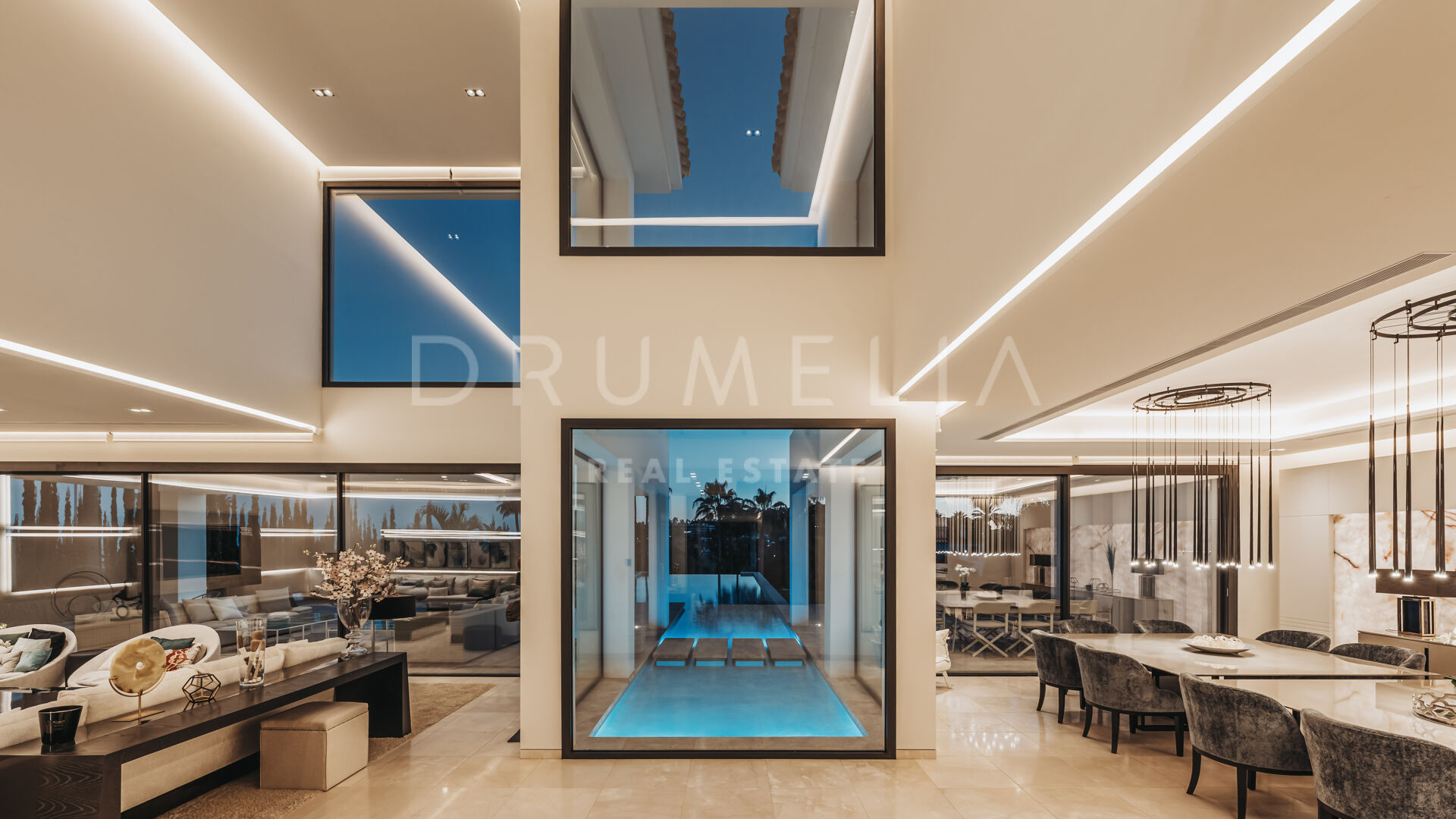 Dette spektakulære huset er omgitt av golfbaner og lignende luksuseiendommer i Nueva Andalucía, og er virkelig et av de mest eksepsjonelle husene i området. Det ligger i nærheten av alt du trenger: internasjonale skoler, butikker, restauranter og barer, flere golfbaner, et kasino, sandstrender og strandklubber, alle fasiliteter i livlige Nueva Andalucía, glamorøse Puerto Banus, San Pedro og Marbella sentrum.