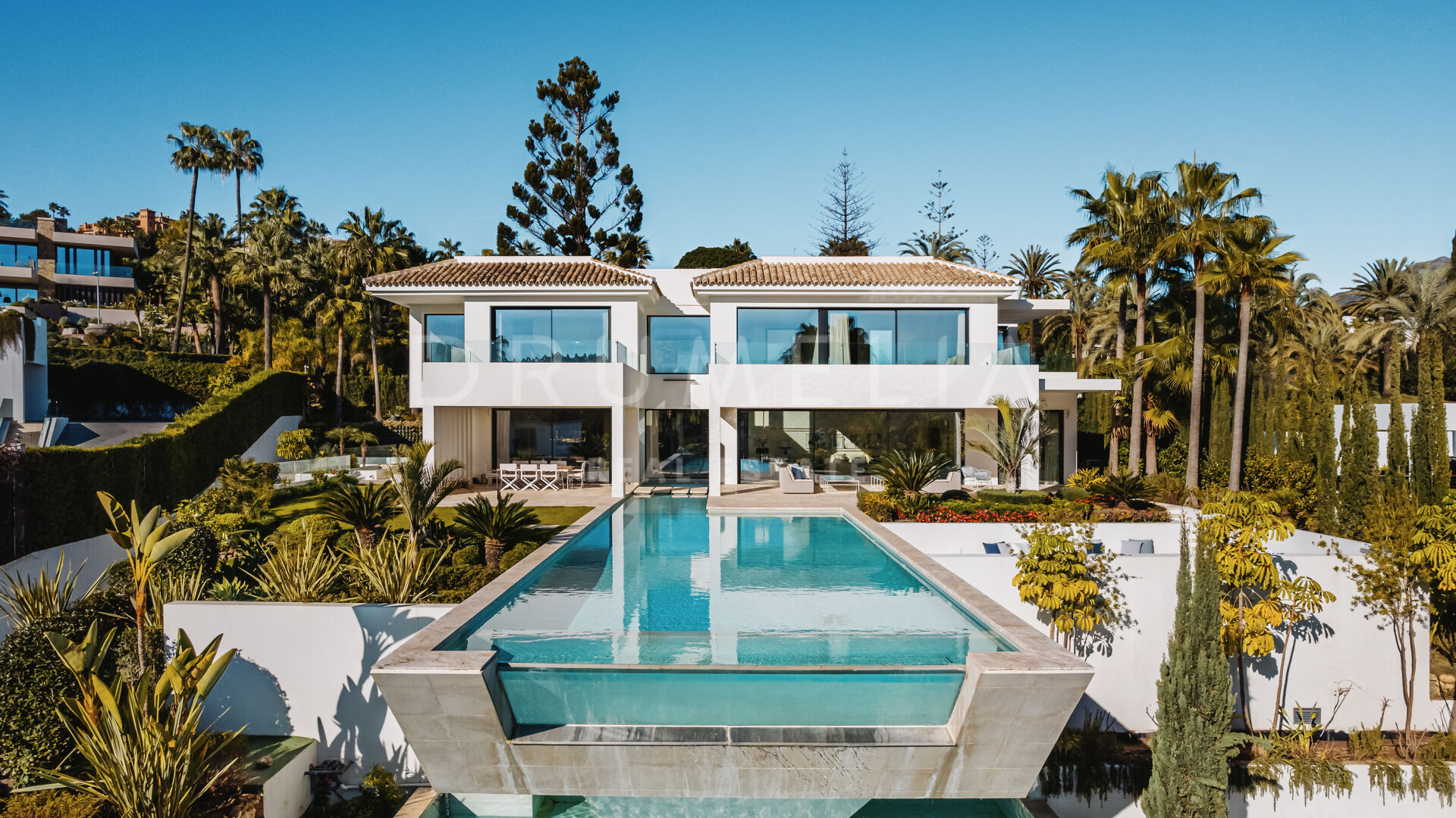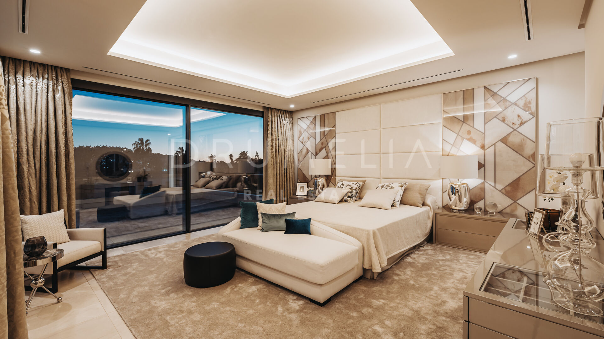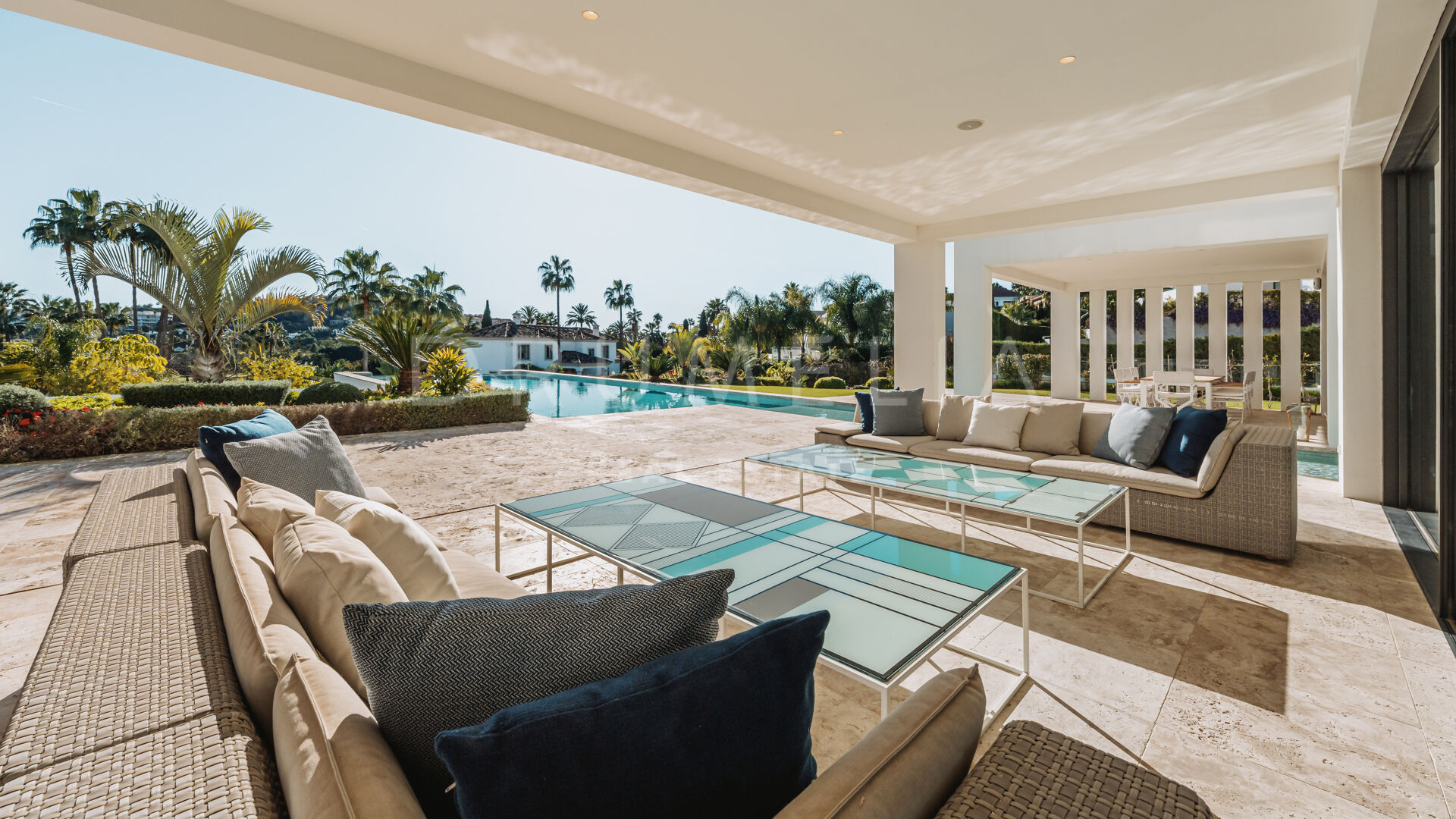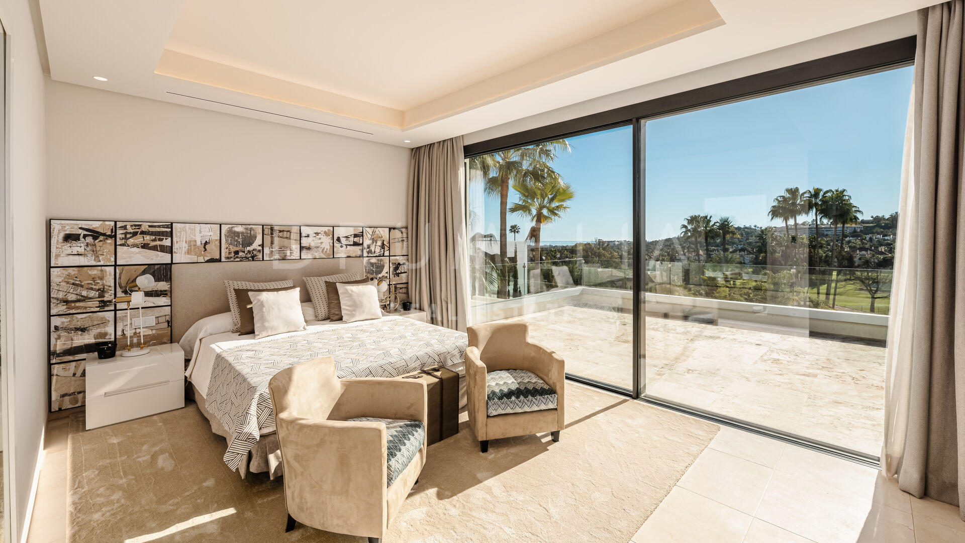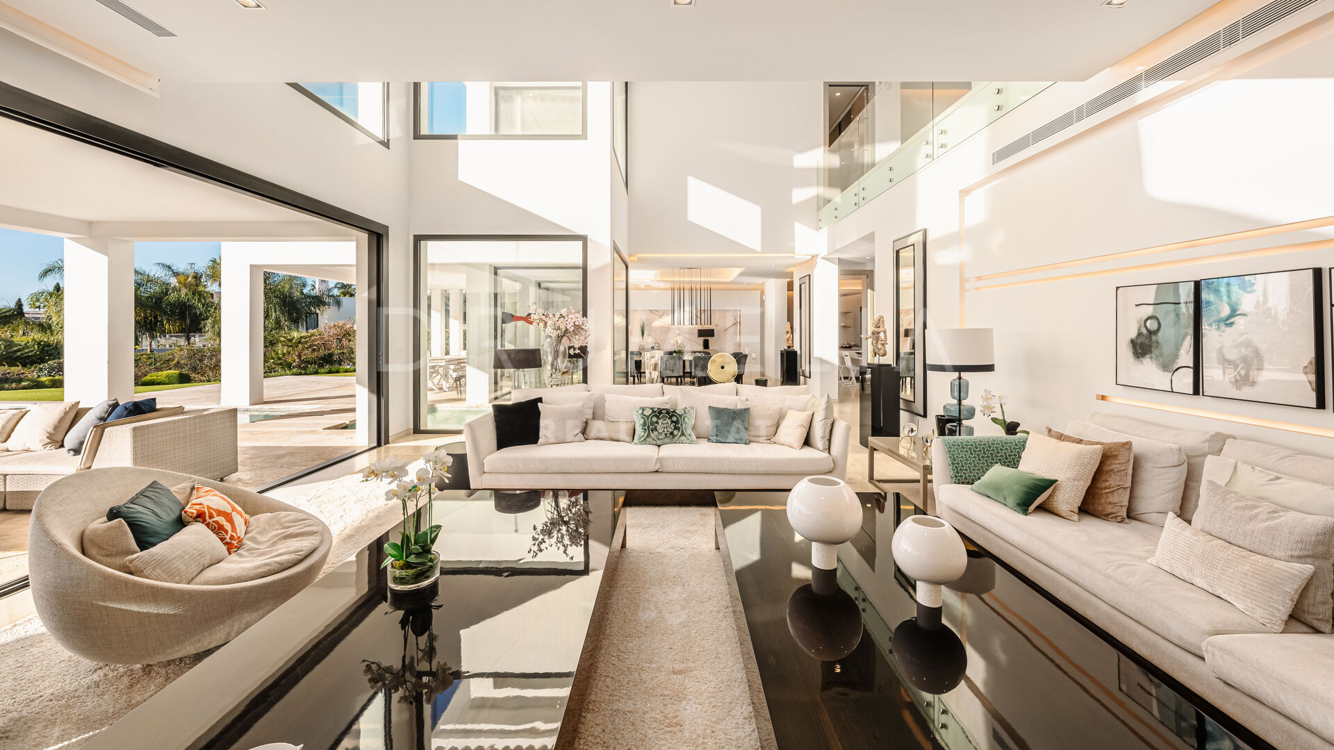 Dette spektakulære huset er omgitt av golfbaner og lignende luksuseiendommer i Nueva Andalucía, og er virkelig et av de mest eksepsjonelle husene i området. Det ligger i nærheten av alt du trenger: internasjonale skoler, butikker, restauranter og barer, flere golfbaner, et kasino, sandstrender og strandklubber, alle fasiliteter i livlige Nueva Andalucía, glamorøse Puerto Banus, San Pedro og Marbella sentrum.