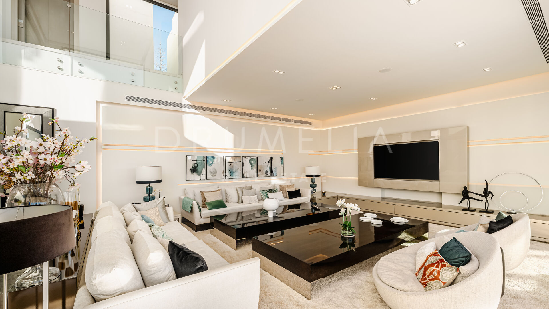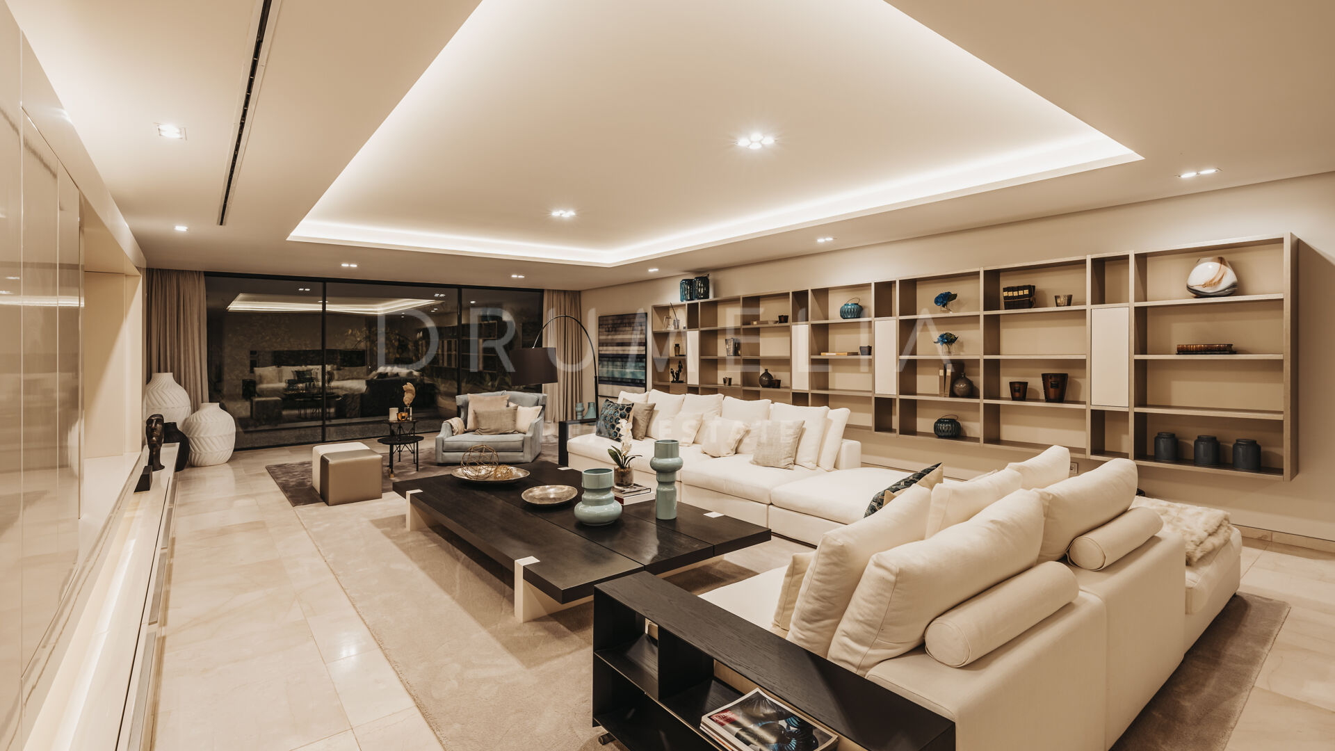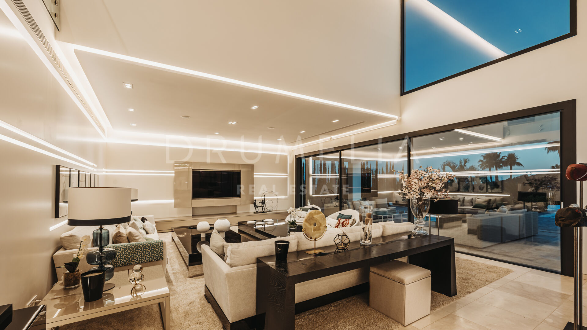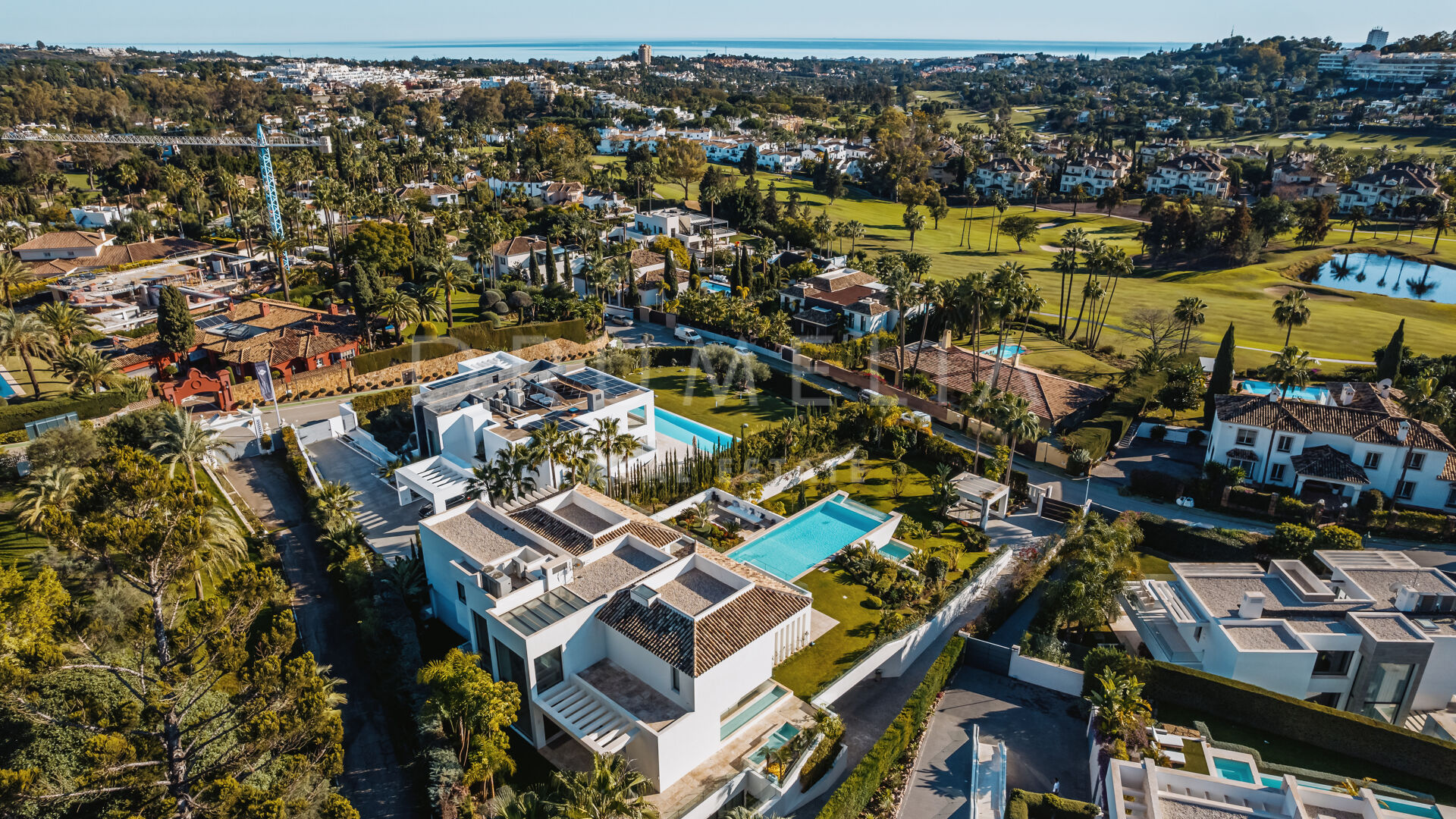Dette spektakulære huset er omgitt av golfbaner og lignende luksuseiendommer i Nueva Andalucía, og er virkelig et av de mest eksepsjonelle husene i området. Det ligger i nærheten av alt du trenger: internasjonale skoler, butikker, restauranter og barer, flere golfbaner, et kasino, sandstrender og strandklubber, alle fasiliteter i livlige Nueva Andalucía, glamorøse Puerto Banus, San Pedro og Marbella sentrum.