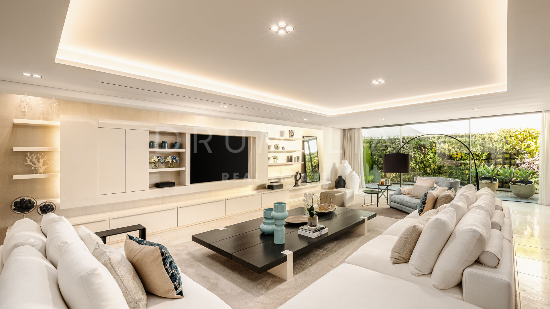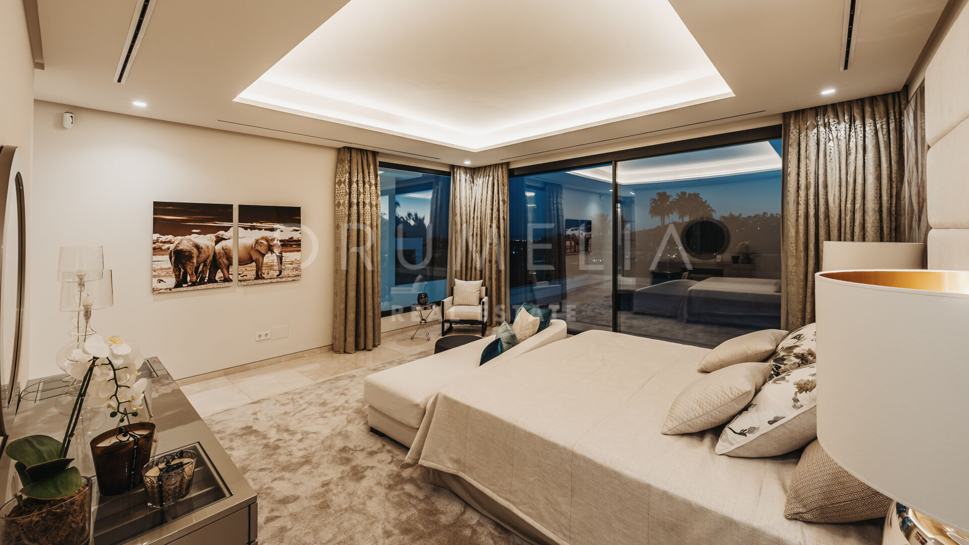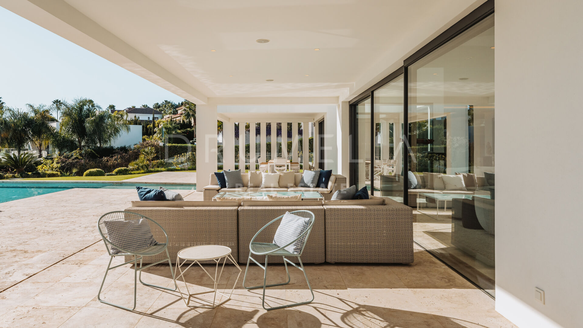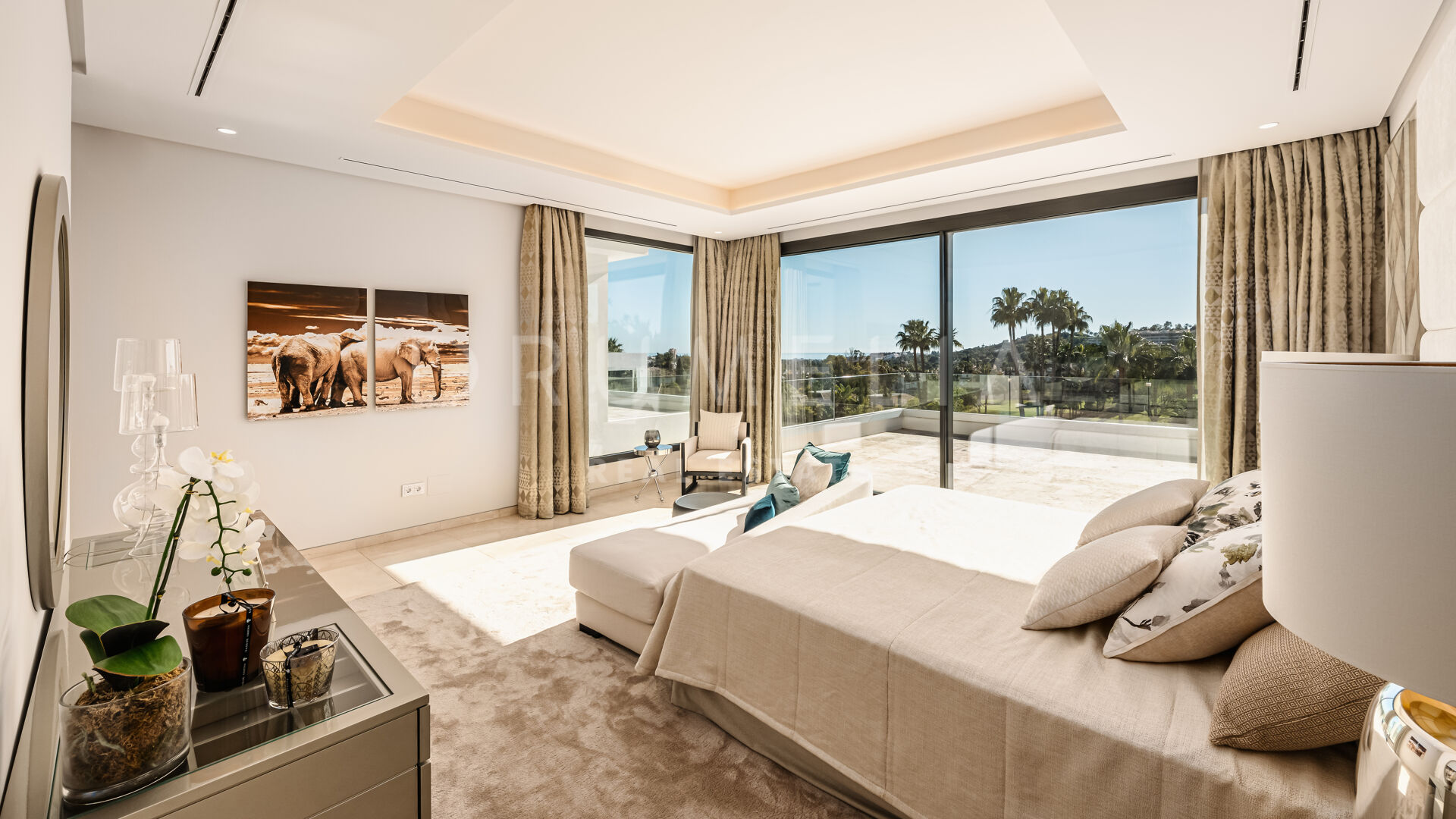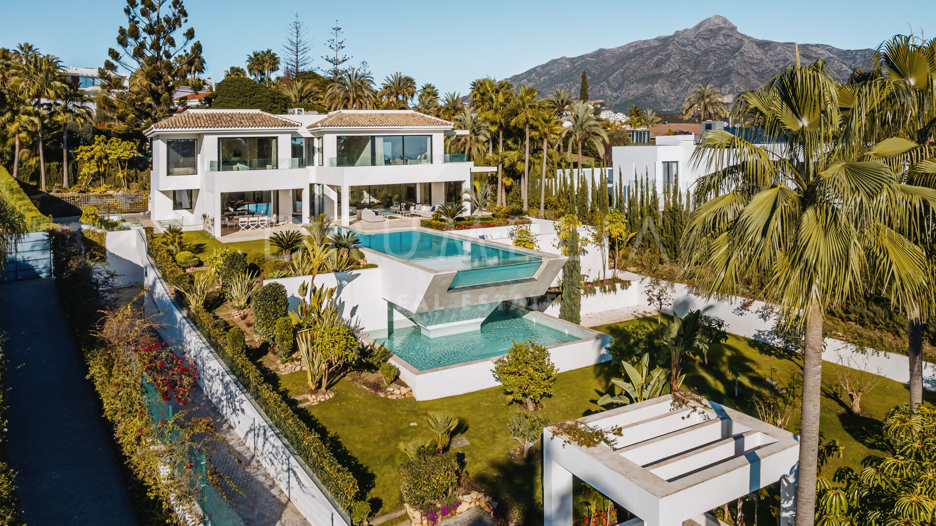 Dette spektakulære huset er omgitt av golfbaner og lignende luksuseiendommer i Nueva Andalucía, og er virkelig et av de mest eksepsjonelle husene i området. Det ligger i nærheten av alt du trenger: internasjonale skoler, butikker, restauranter og barer, flere golfbaner, et kasino, sandstrender og strandklubber, alle fasiliteter i livlige Nueva Andalucía, glamorøse Puerto Banus, San Pedro og Marbella sentrum.