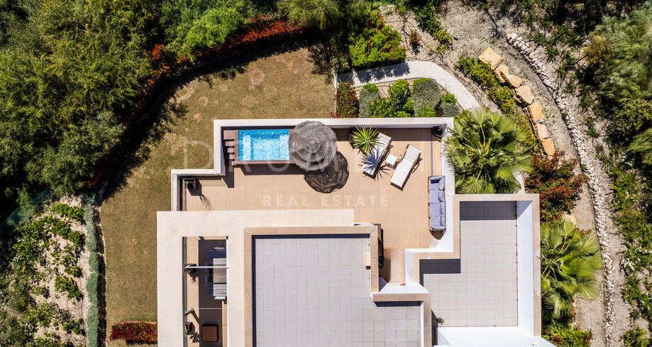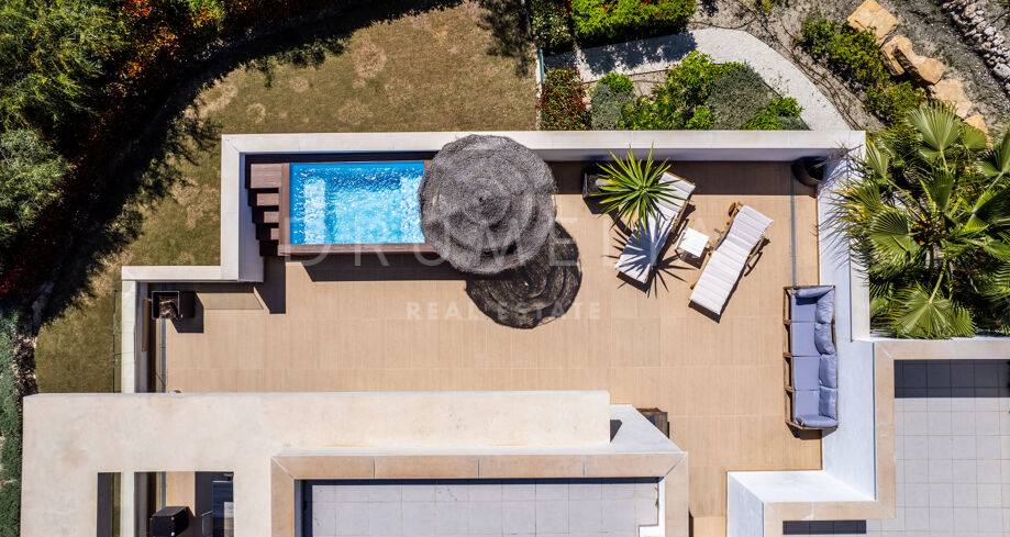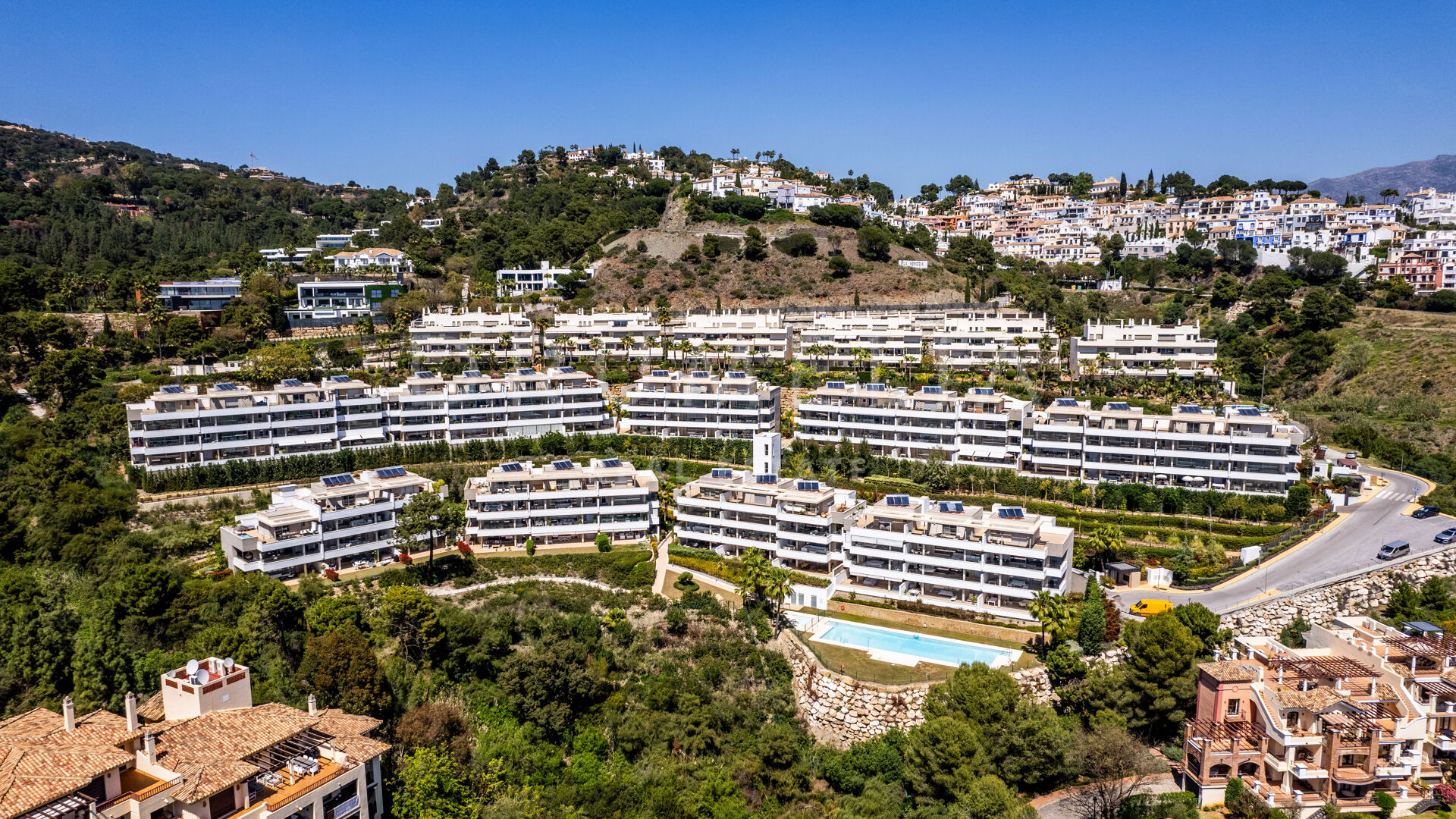 Denne eksepsjonelle toppleiligheten med 3 soverom til salgs ligger i rolige og fredelige omgivelser i La Reserva del Alcuzcuz i Benahavís. Residencial Botanic er en del av et moderne og luksuriøst boligkompleks som vitner om miljøvennlig livsstil og luksus. Komplekset er godt integrert i de rolige naturomgivelsene med vertikale hager og frodige grøntområder, omkranset av et inngjerdet område med to utendørsbassenger.