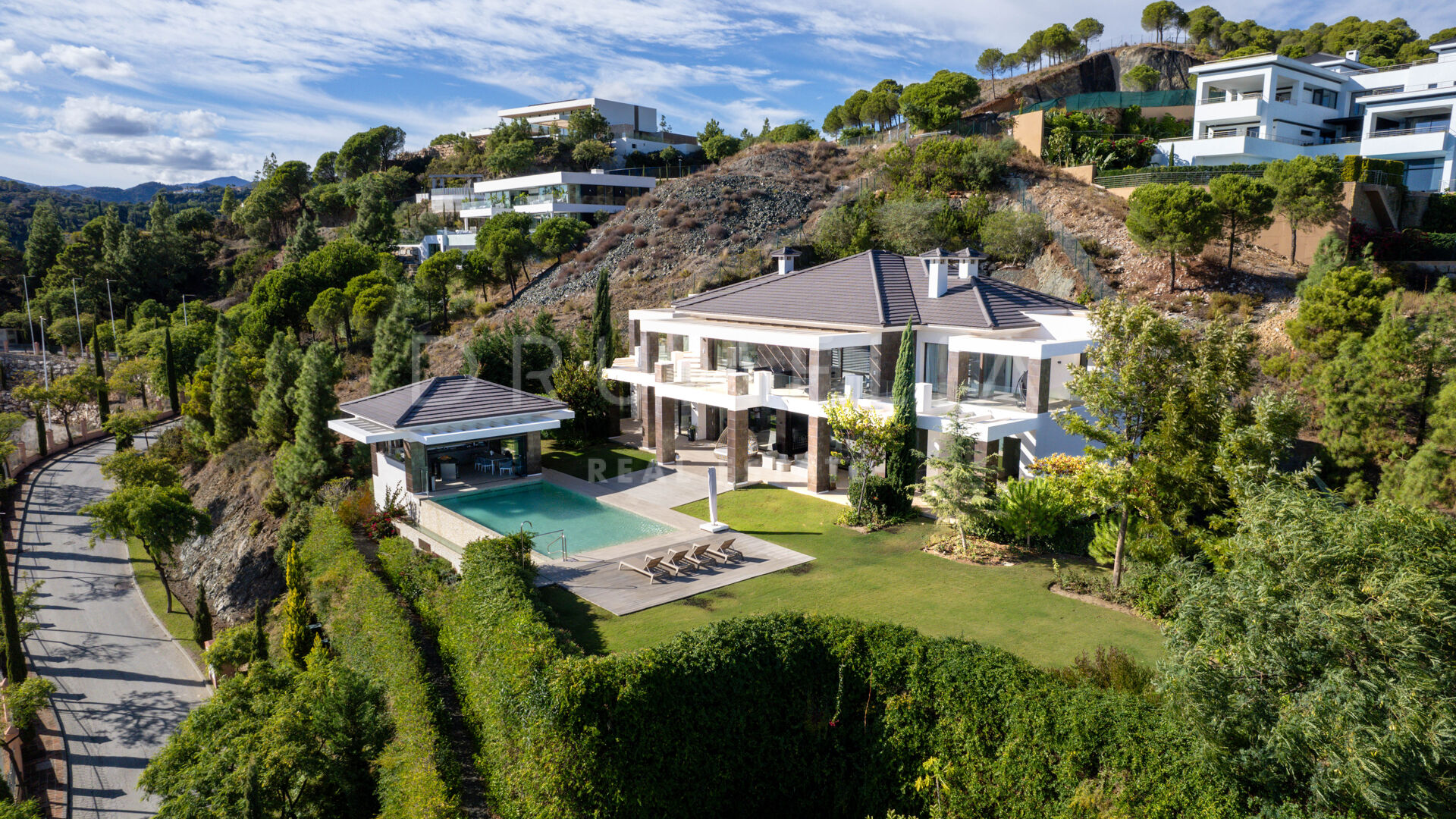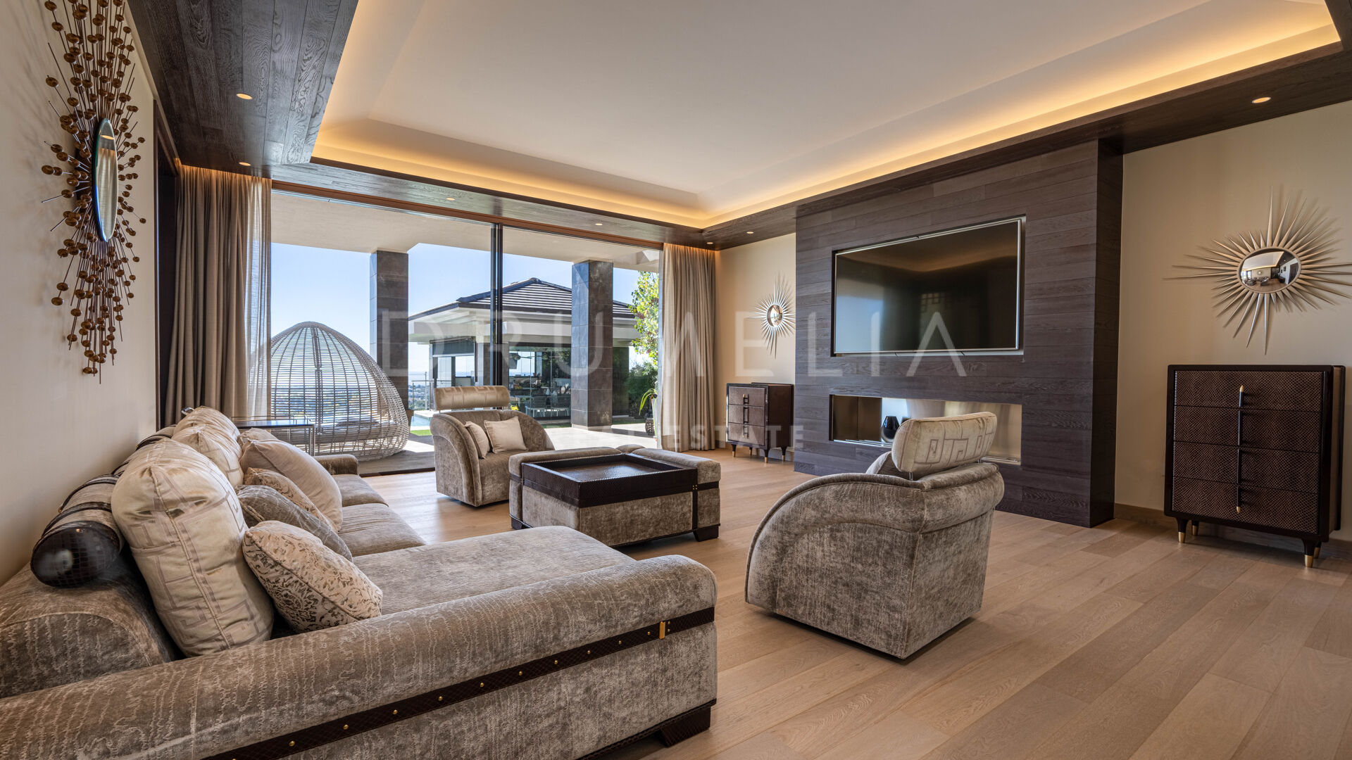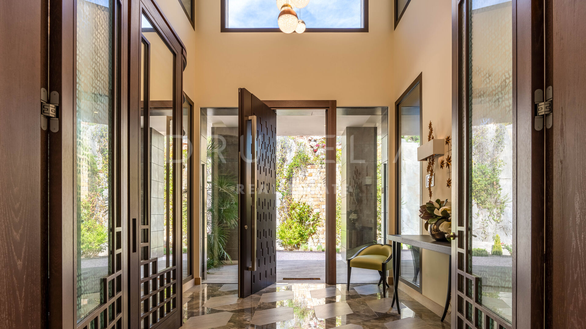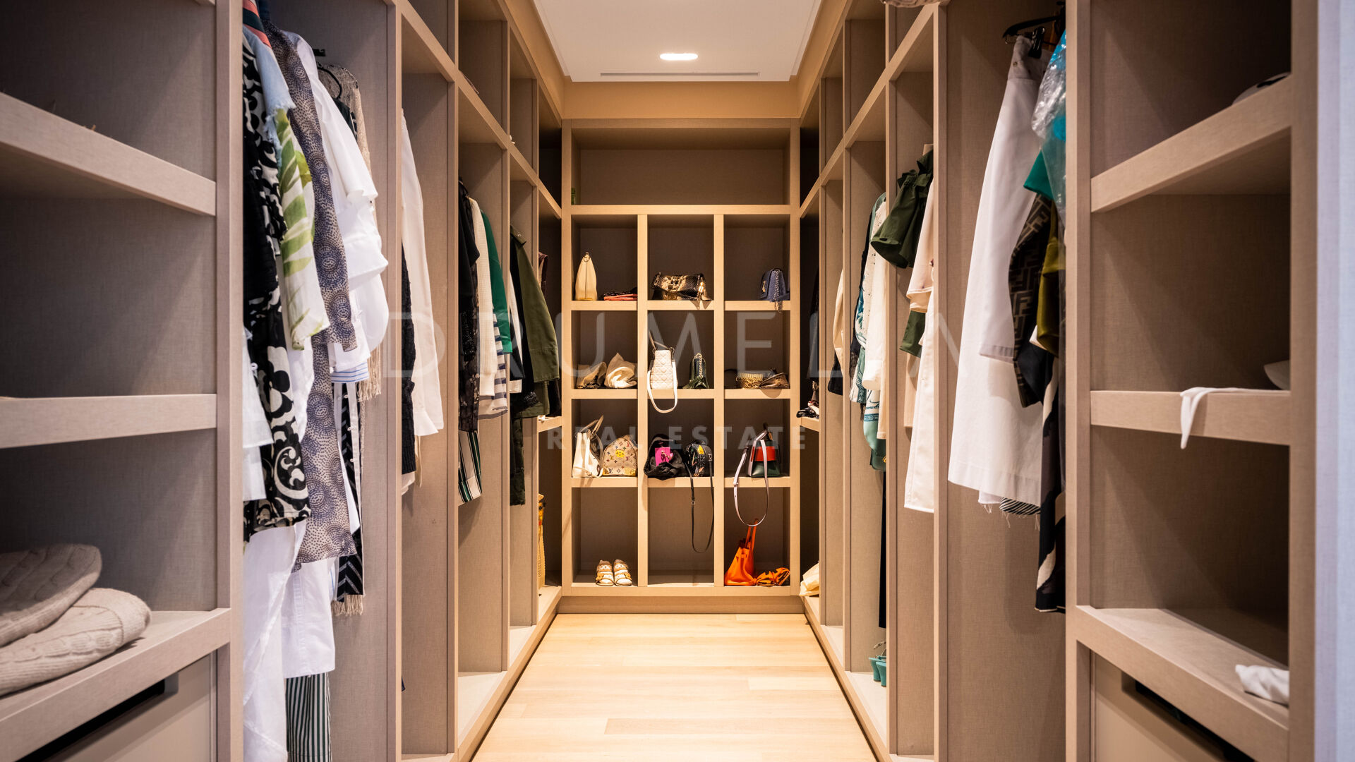 Glassdørene og de store vinduene slipper inn rikelig med naturlig lys i hele huset. Rommene vender ut mot de flotte terrassene, en subtropisk hage med grønne plener, anlagte områder og en solterrasse. Et imponerende svømmebasseng på 12×6 meter med sjøsaltfiltreringssystem innbyr til avkjøling på varme dager eller til storslåtte bassengfester året rundt. Marbella-området er kjent for det beste været på det europeiske kontinentet, og bassenget er oppvarmet. En innglasset paviljong og chill-out-område har et komplett kjøkken, ideelt for grilling og middager i det fri. En privat garasje har plass til fire biler. Denne eksklusive, moderne villaen er selve innbegrepet av luksus og har mange attraktive detaljer, blant annet heis, tregulv, gulvvarme og klimaanlegg i hele huset, garderober, LED-lys osv. Det nøytrale fargevalget skaper en virkelig rolig atmosfære. Ultramoderne møter avslapping i denne luksuriøse eiendommen, som tilbyr den perfekte blandingen av middelhavsnyanse og funksjonalitet!