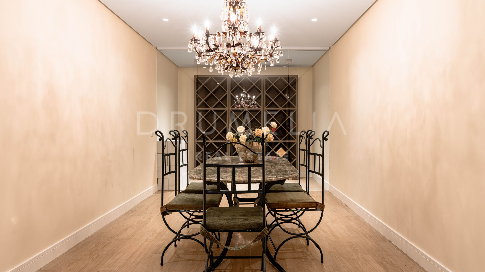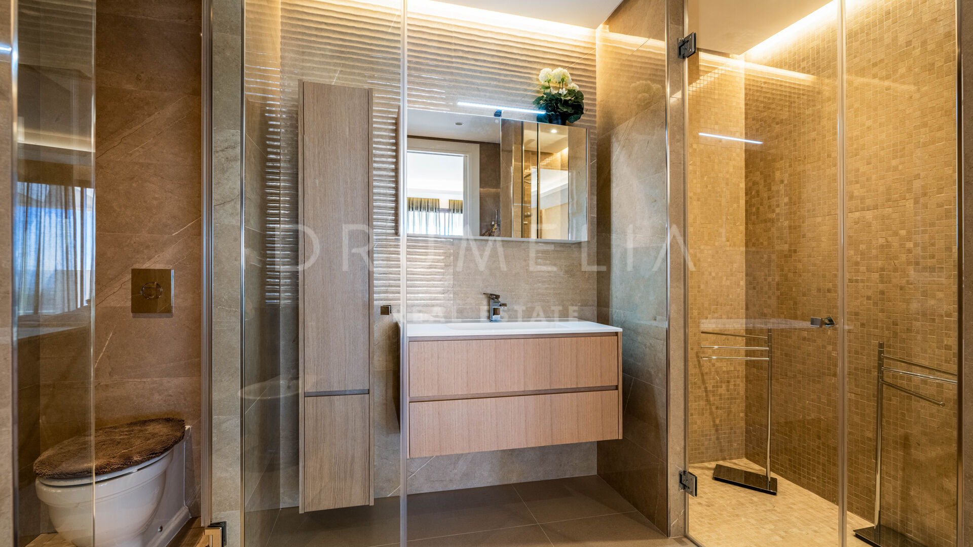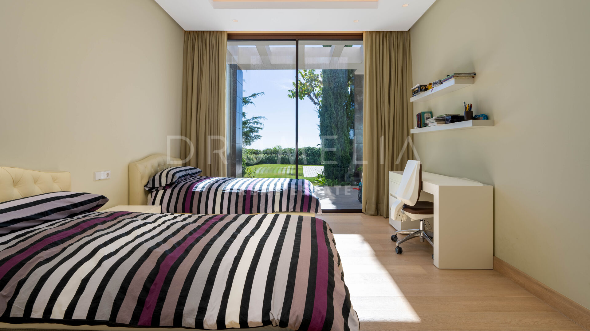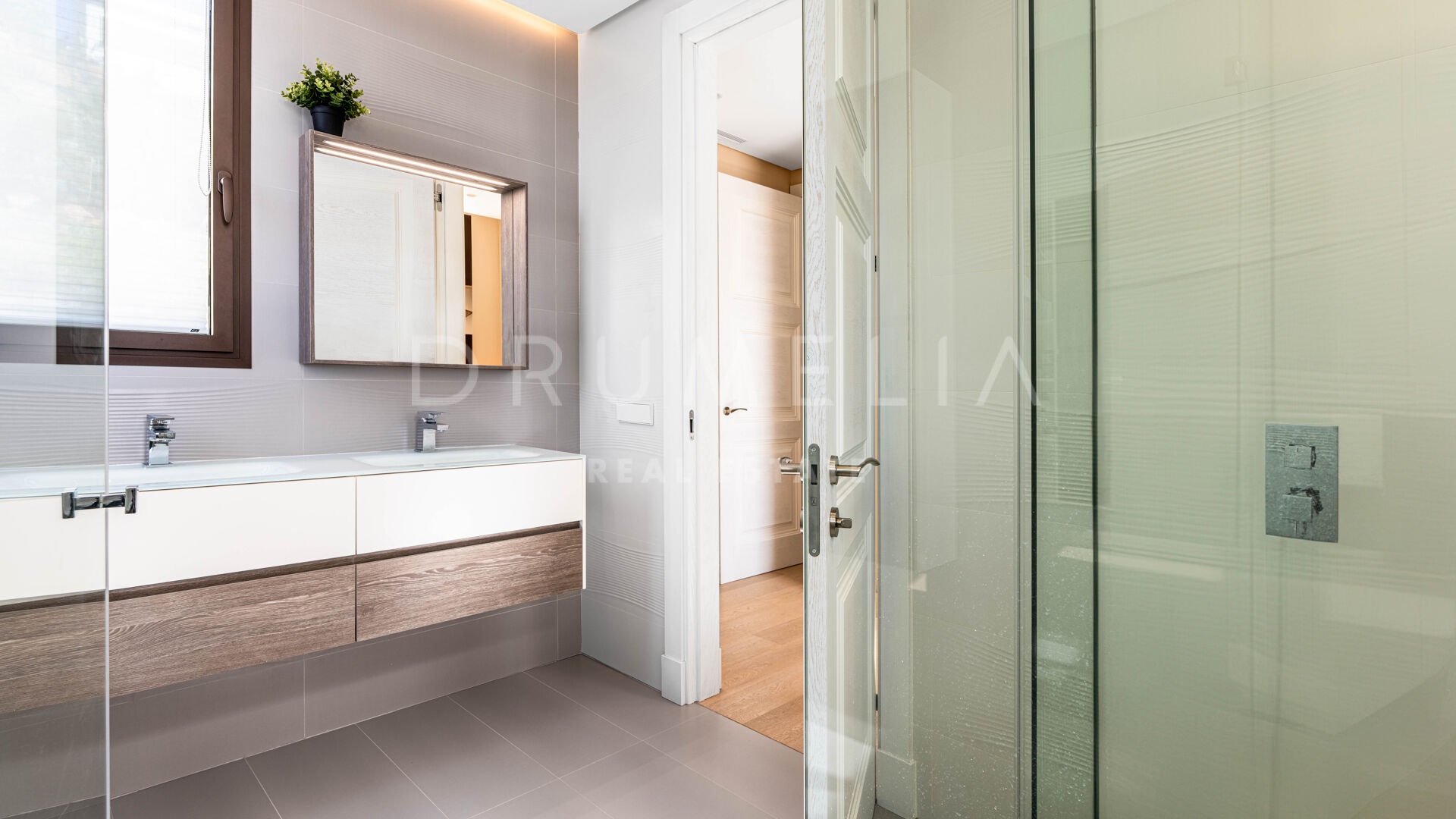 Glassdørene og de store vinduene slipper inn rikelig med naturlig lys i hele huset. Rommene vender ut mot de flotte terrassene, en subtropisk hage med grønne plener, anlagte områder og en solterrasse. Et imponerende svømmebasseng på 12×6 meter med sjøsaltfiltreringssystem innbyr til avkjøling på varme dager eller til storslåtte bassengfester året rundt. Marbella-området er kjent for det beste været på det europeiske kontinentet, og bassenget er oppvarmet. En innglasset paviljong og chill-out-område har et komplett kjøkken, ideelt for grilling og middager i det fri. En privat garasje har plass til fire biler. Denne eksklusive, moderne villaen er selve innbegrepet av luksus og har mange attraktive detaljer, blant annet heis, tregulv, gulvvarme og klimaanlegg i hele huset, garderober, LED-lys osv. Det nøytrale fargevalget skaper en virkelig rolig atmosfære. Ultramoderne møter avslapping i denne luksuriøse eiendommen, som tilbyr den perfekte blandingen av middelhavsnyanse og funksjonalitet!