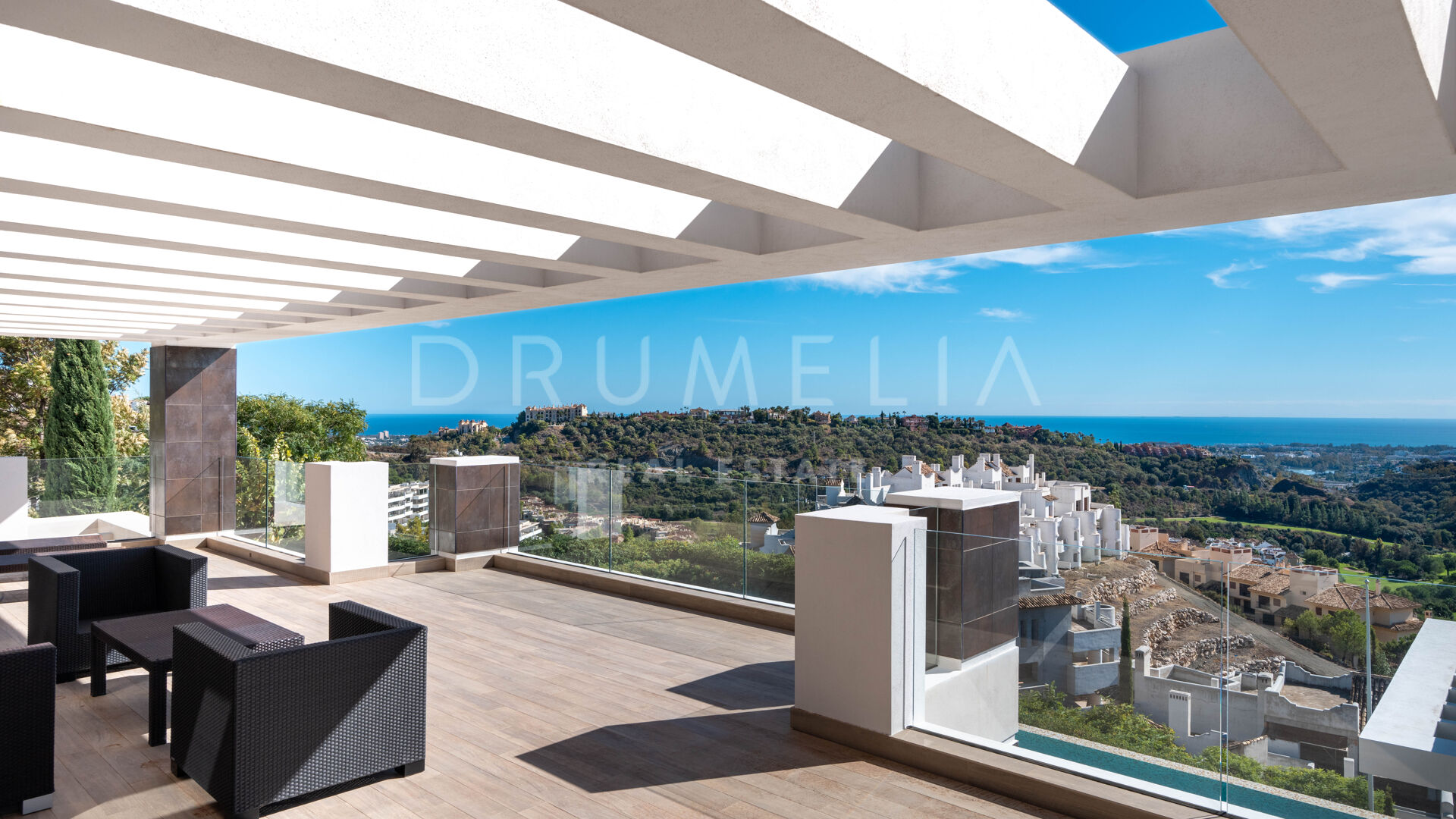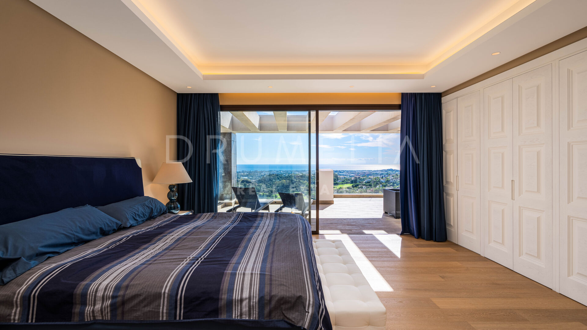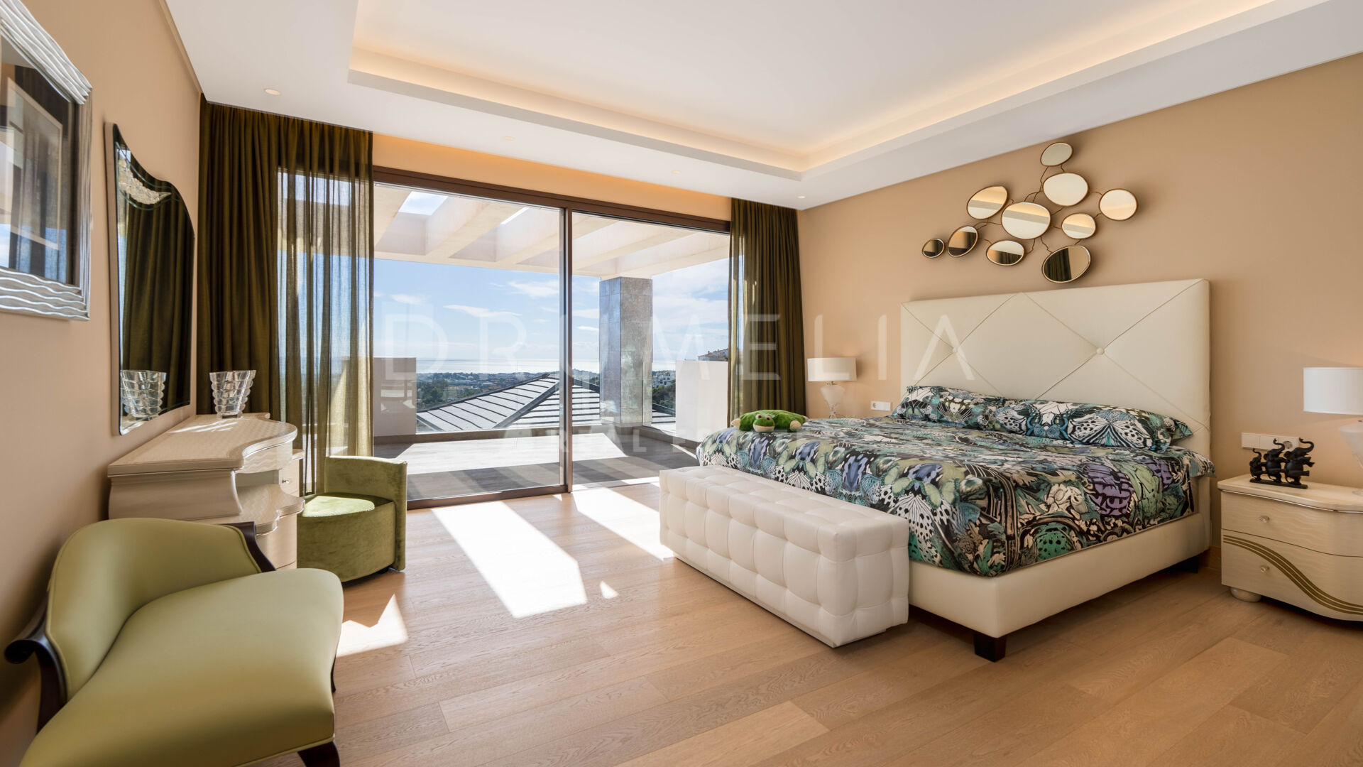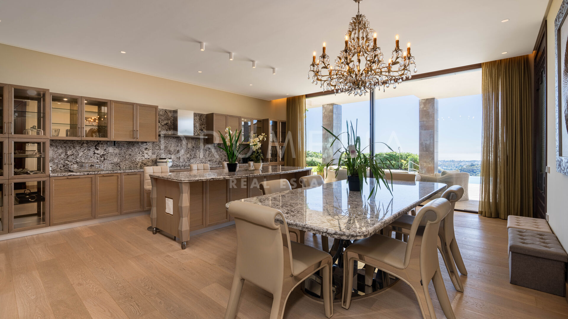 Et moderne herskapshus med 9 soverom er til salgs i La Reserva del Alcuzcuz, et ettertraktet inngjerdet område med rolige, familievennlige gater med leiligheter, villaer og tomter i frodige omgivelser på veien til Benahavis. 70 % av Benahavis kommune er erklært “miljømessig viktig”. En annen fordel med dette vakre området er mikroklimaet i Serrania de Ronda og Sierra de las Nieves, et UNESCO-biosfærereservat. Området ligger i åsene nord for Los Arqueros Golf and Country Club og har vidstrakt panoramautsikt over de billedskjønne omgivelsene, Middelhavet og den afrikanske kysten. Beliggenheten er virkelig privilegert, midt i den idylliske naturen og samtidig bare noen få minutters kjøring fra kysten og legendariske Puerto Banus.