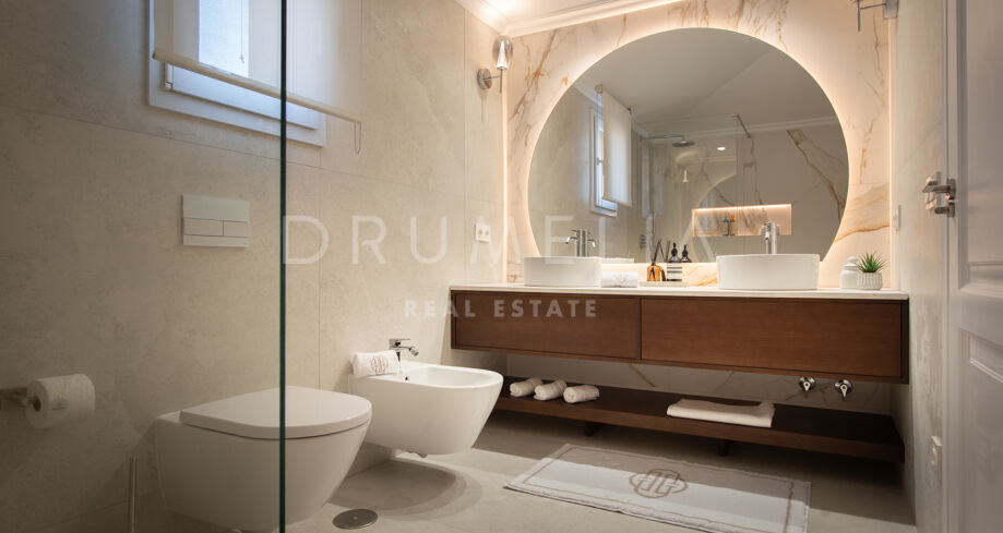 Det moderne kjøkkenet fra Miele er fullt utstyrt, og soverommene har god plass, innebygde garderober og tilgang til private terrasser. Badene er utstyrt med førsteklasses Dormitech-armaturer som kombinerer stil og funksjonalitet.
