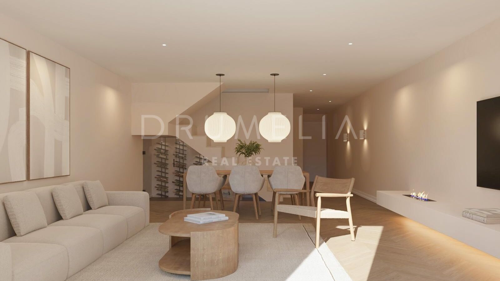 Rommene er preget av skandinavisk design med nøye utvalgte, moderne materialer av høy kvalitet. Under trappen finnes et spesiallaget vinskap. Alle rom har individuelt styrte Airzone-systemer for oppvarming og kjøling, mens alle bad har gulvvarme. Våte områder er ferdigstilt med smakfulle fliser i full høyde i en varm beige tone.
