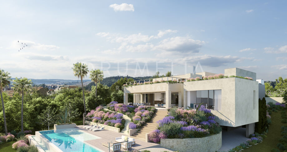 Villa til salgs i Los Flamingos, Benahavis med 6 soverom, 6 baderom, 6 baderom med eget bad, 2 toaletter og har basseng (privat), garasje (privat) og hage (privat). Dimensjoner: 1134m² bygget, 2723m² tomt og 549m² terrasse.