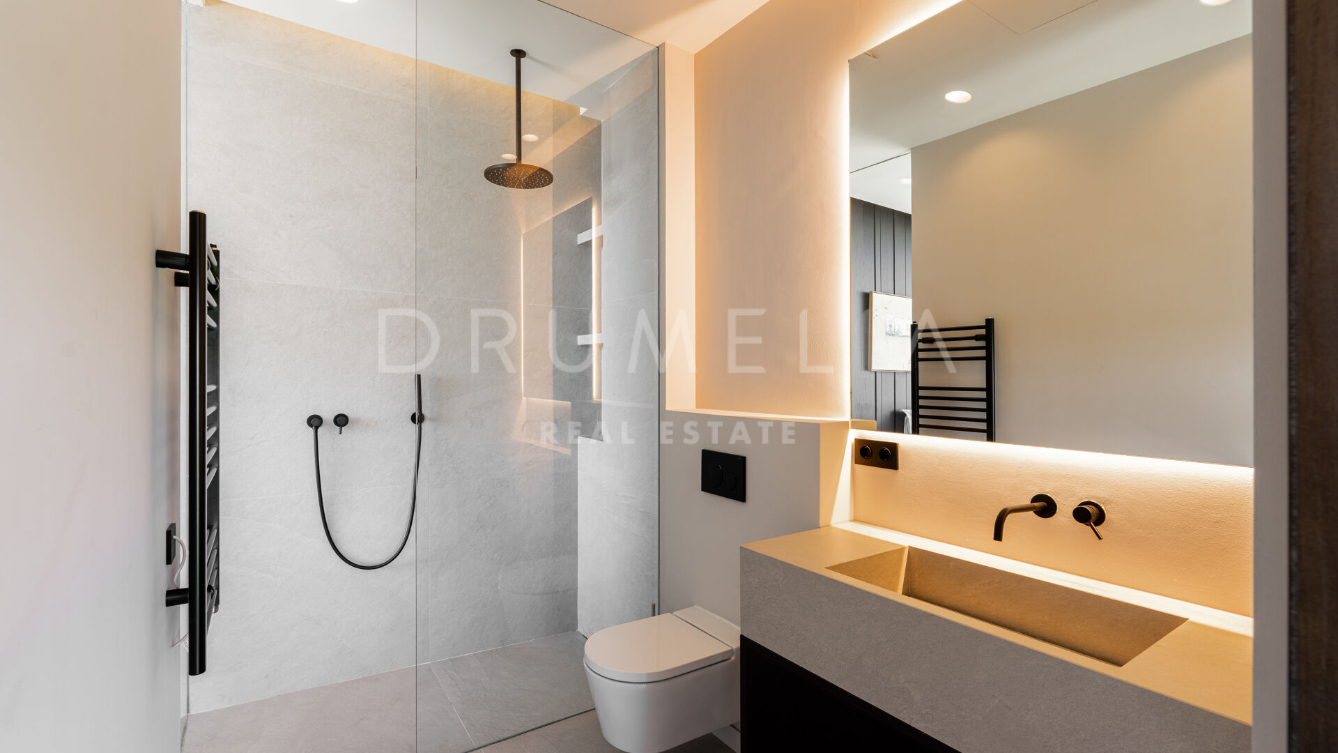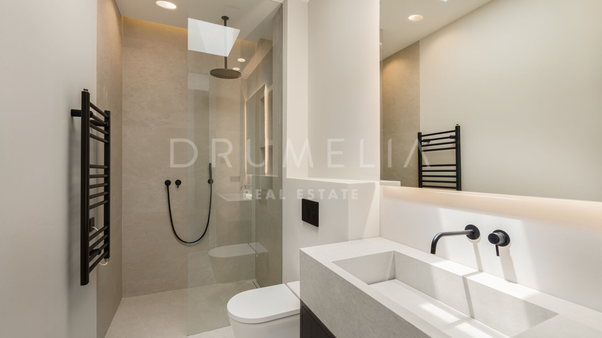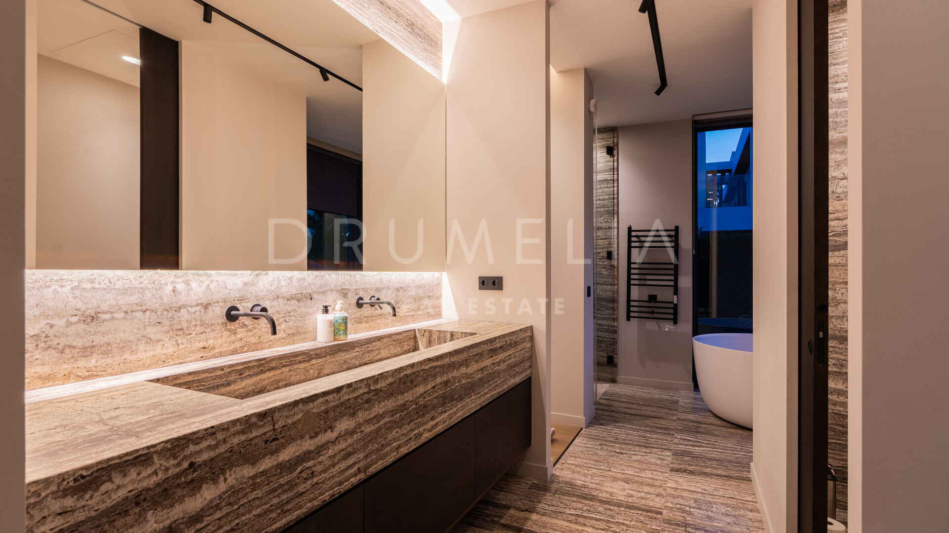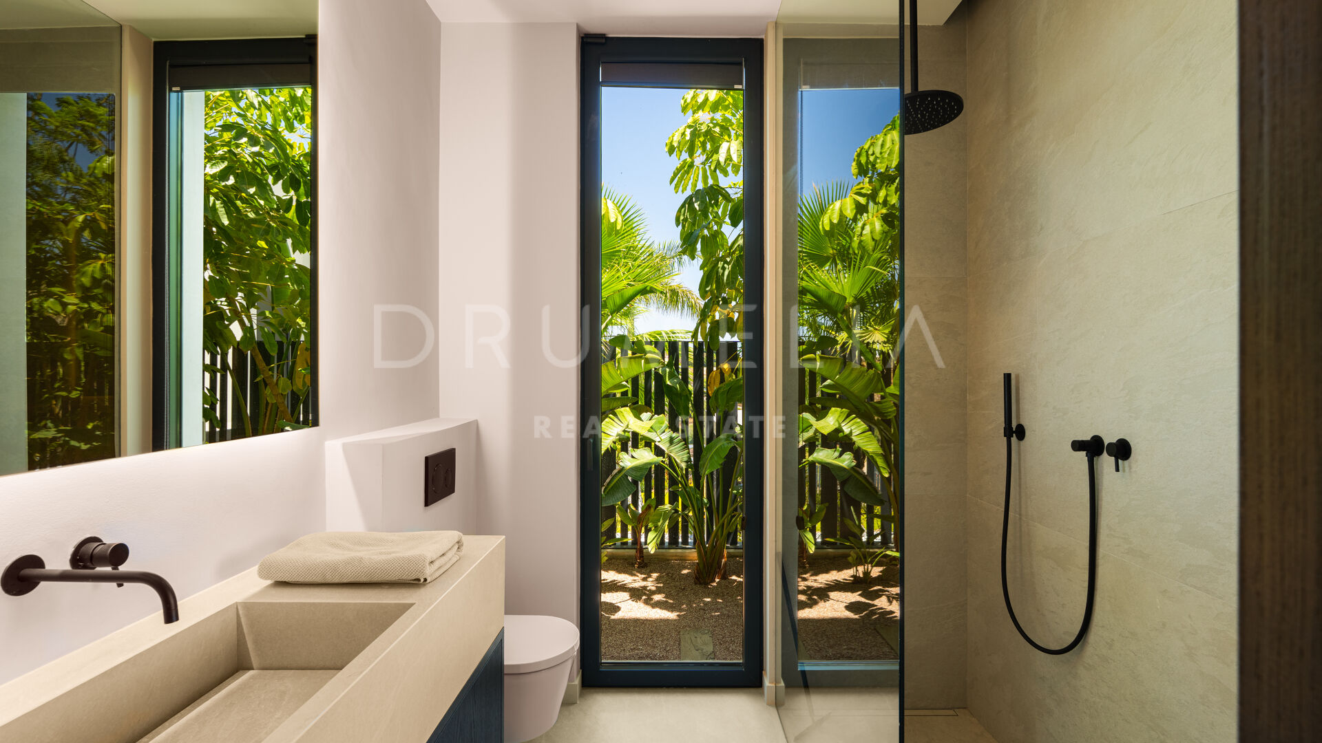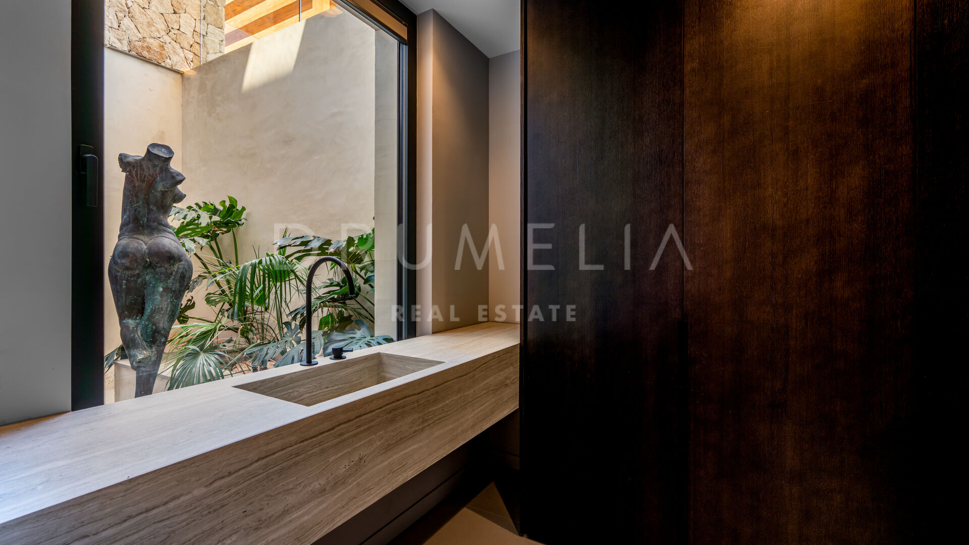 Med en privilegert, forhøyet beliggenhet vendt mot sør, har villaen vidstrakt panoramautsikt over Middelhavet, den frodige Los Flamingos golfbanen og det imponerende evighetsbassenget. Med 496 m² fordelt på tre nivåer, viser hjemmet frem banebrytende, moderne arkitektur med en åpen planløsning designet for å maksimere naturlig lys og flyt mellom inne- og uteområder gjennom store vinduer fra gulv til tak.