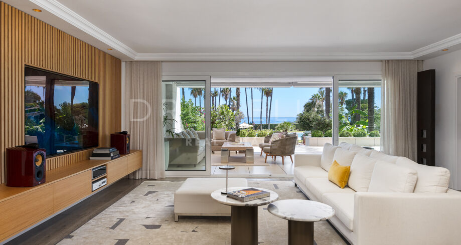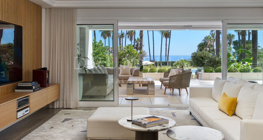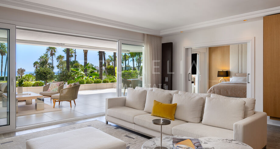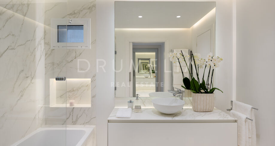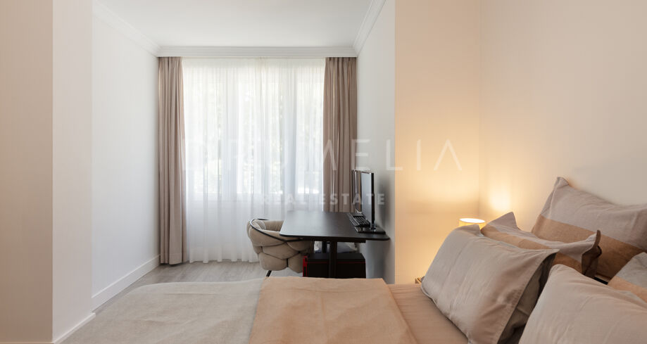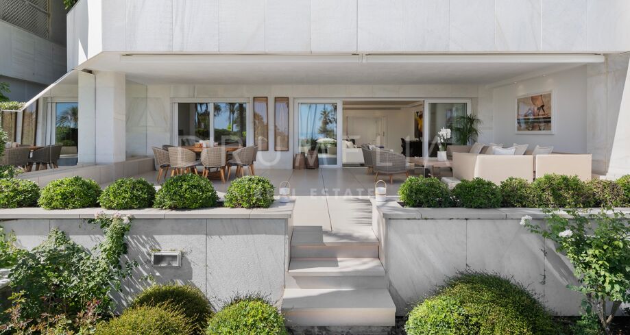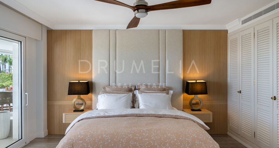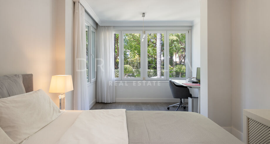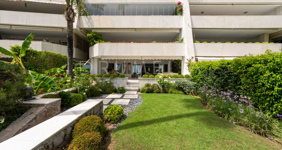 Leilighet på grunnplan til salgs i Los Granados, Marbella – Puerto Banus med 3 soverom, 3 baderom, 1 toalett og har basseng (felles), garasje (privat) og hage (felles). Dimensjoner: 338m² bygget, 161m² interiør og 78m² terrasse.