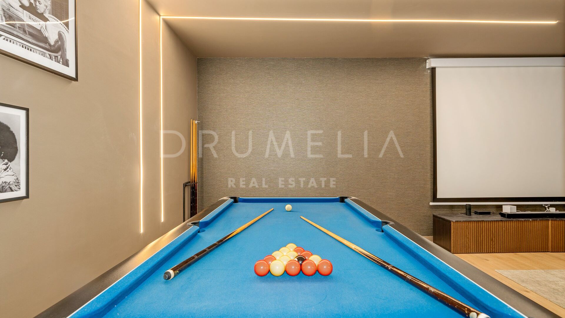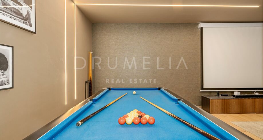 Det praktfulle huset har romslige oppholds- og spisestuer, et moderne kjøkken, 7 soverom og 7 bad. Med eget treningsstudio, spillrom og et forfriskende utendørsbasseng er det lagt til rette for både underholdning og avslapning. Et eget kinorom er også tilgjengelig for filmentusiaster. De store terrassene og balkongen innbyr til rolige stunder eller utendørs sammenkomster med familie og venner. Villaen selges med carport, klimaanlegg, doble vinduer, garderober, glassdører, sikkerhetsgitter i vinduene og andre funksjoner som gir en overdådig middelhavsstil.