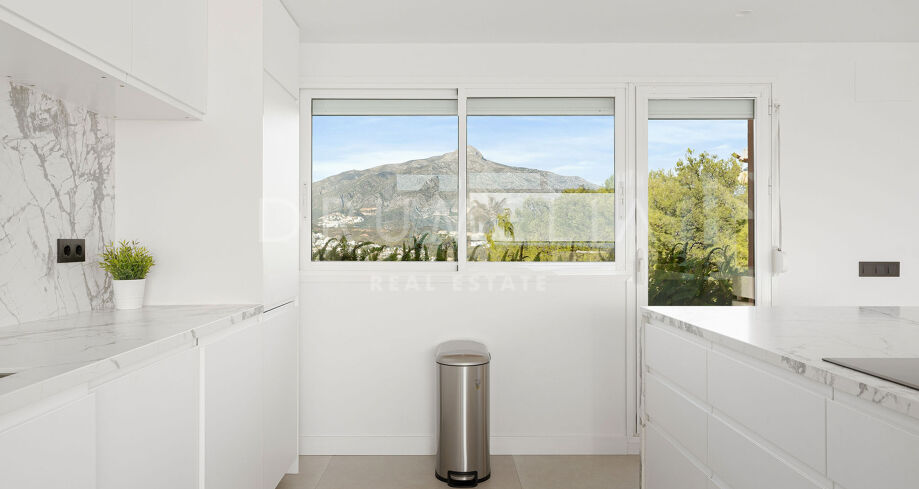 Opplev uovertruffen luksus i denne nylig renoverte penthouse-leiligheten, som ligger i den mest eksklusive blokken i Magna Marbella, i hjertet av Nueva Andalucía. Med et boligareal på 173 m² og en stor terrasse på 139 m², tilbyr denne duplex-leiligheten 3 romslige soverom og 2 moderne bad. Den gir en imponerende 360-graders panoramautsikt over Middelhavet, La Concha-fjellet og de anerkjente golfbanene i området, og skaper en oase av ro.