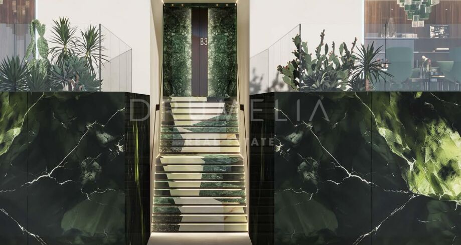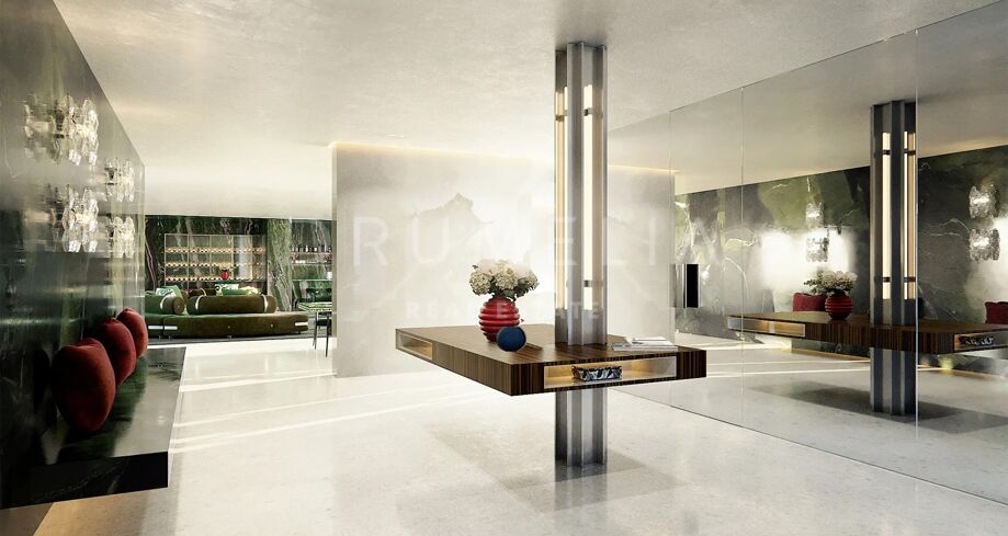 Leilighet til salgs i Marbella Golden Mile, Marbella (Alle) med 4 soverom, 4 baderom, 4 baderom med eget bad, 1 toalett, innebygd 2026 og har basseng (felles) og hage (felles). Dimensjoner: 250m² bygget og 80m² terrasse.