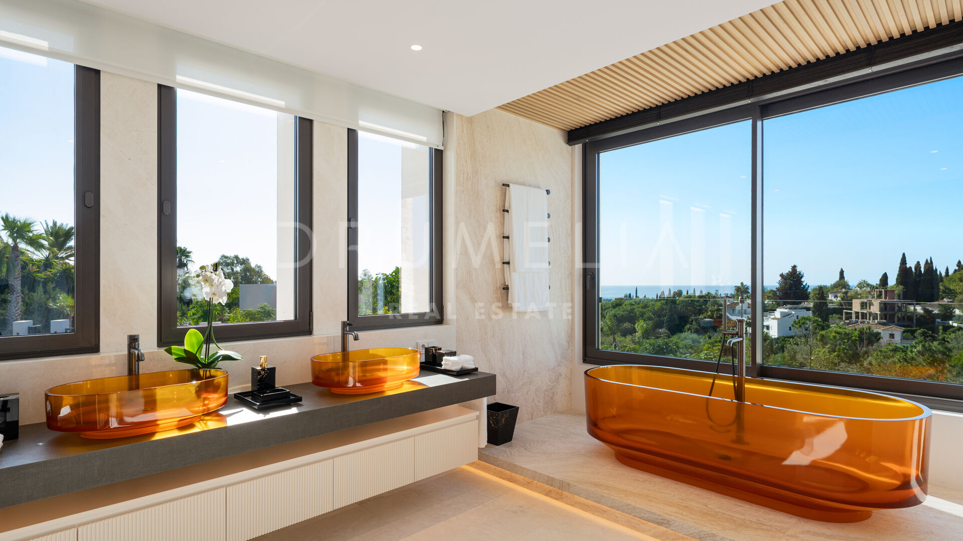 Bare minutter fra Marbellas strender, golfbaner og restauranter, tilbyr denne villaen en livsstil preget av design, komfort og ro.