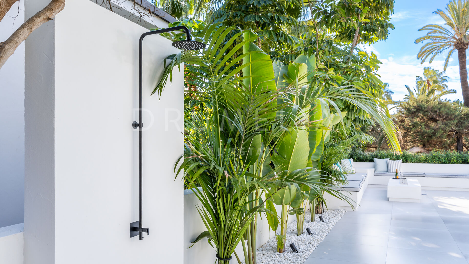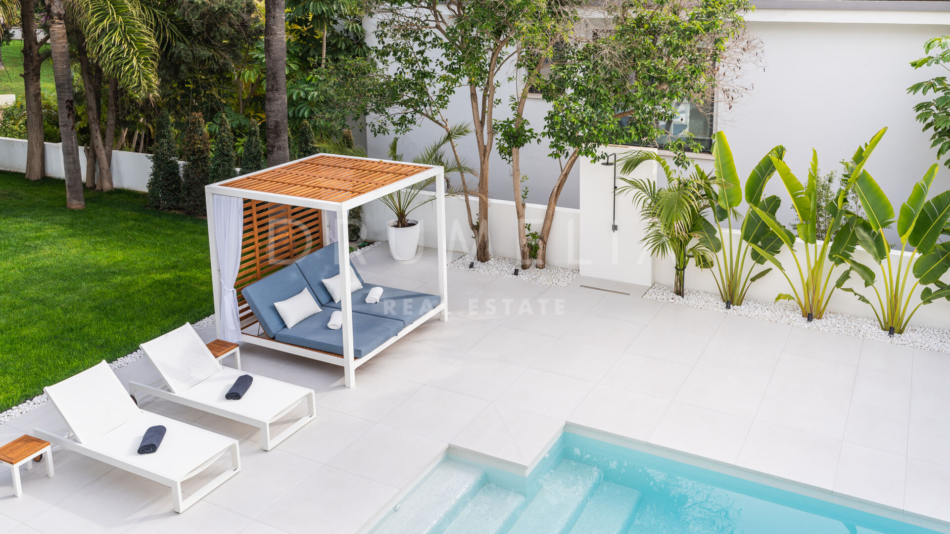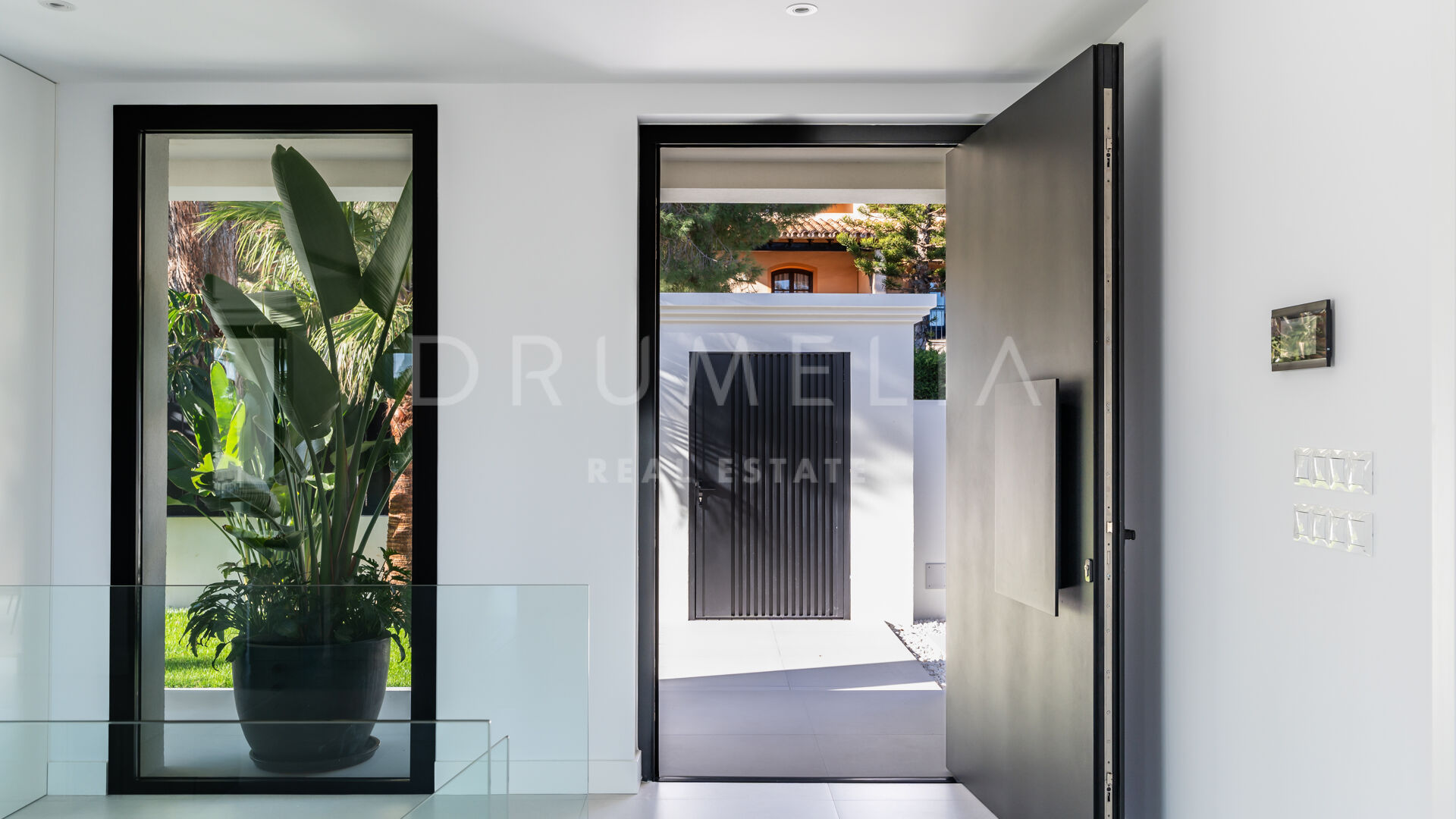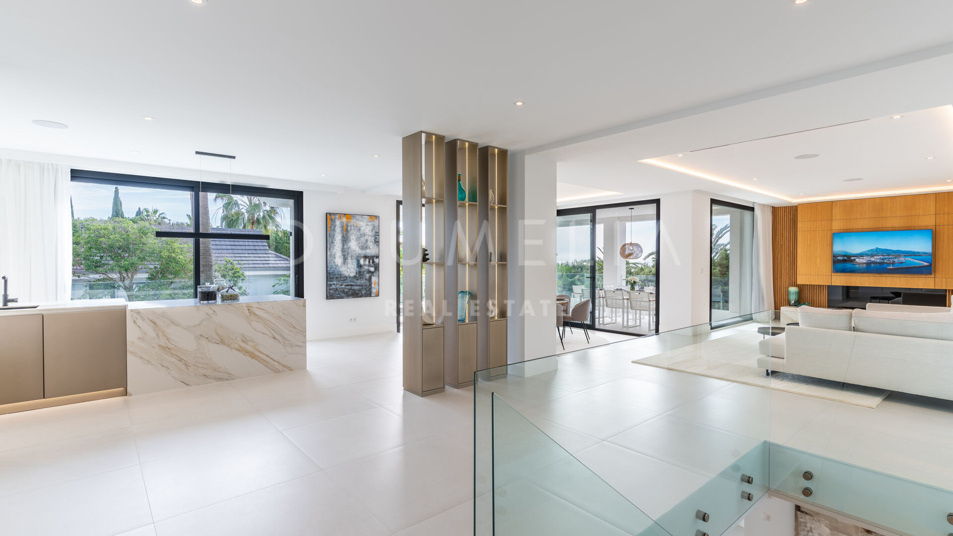 Oppdag et mesterverk av moderne raffinement og andalusisk sjarm i hjertet av Marbella. Denne utsøkte 4-soveroms villaen ligger i den prestisjetunge Marbesa-enklaven, et eksklusivt tilfluktssted ved sjøen som tilbyr ro og raffinement bare noen skritt fra Marbellas uberørte strender og bare 30 minutter fra flyplassen. Omgitt av frodige grøntområder er det en privat oase av eleganse og ro ved kysten.