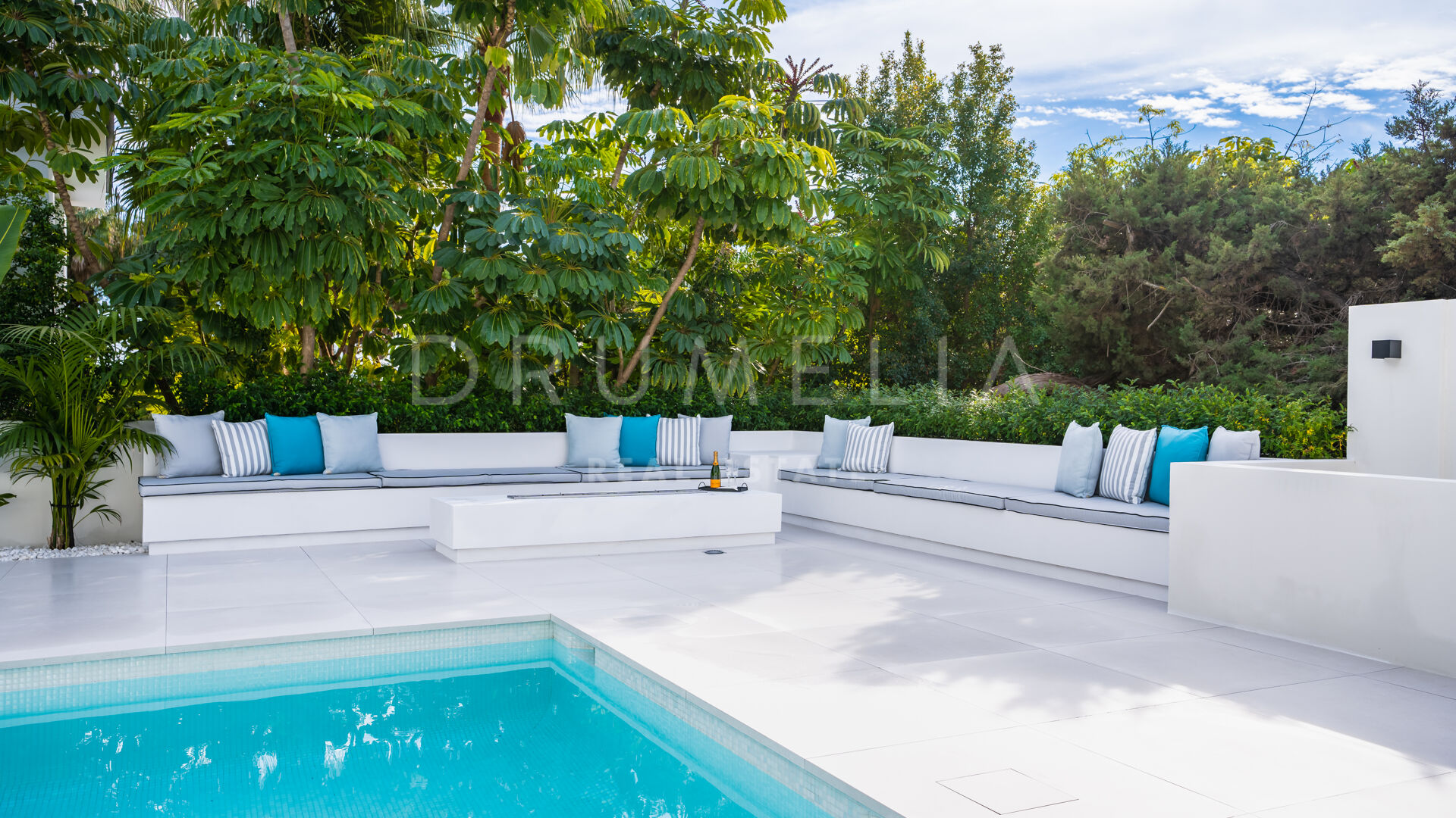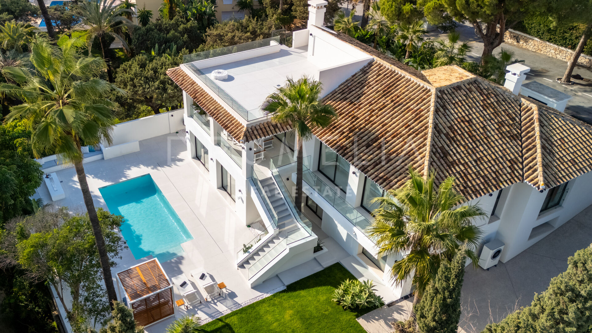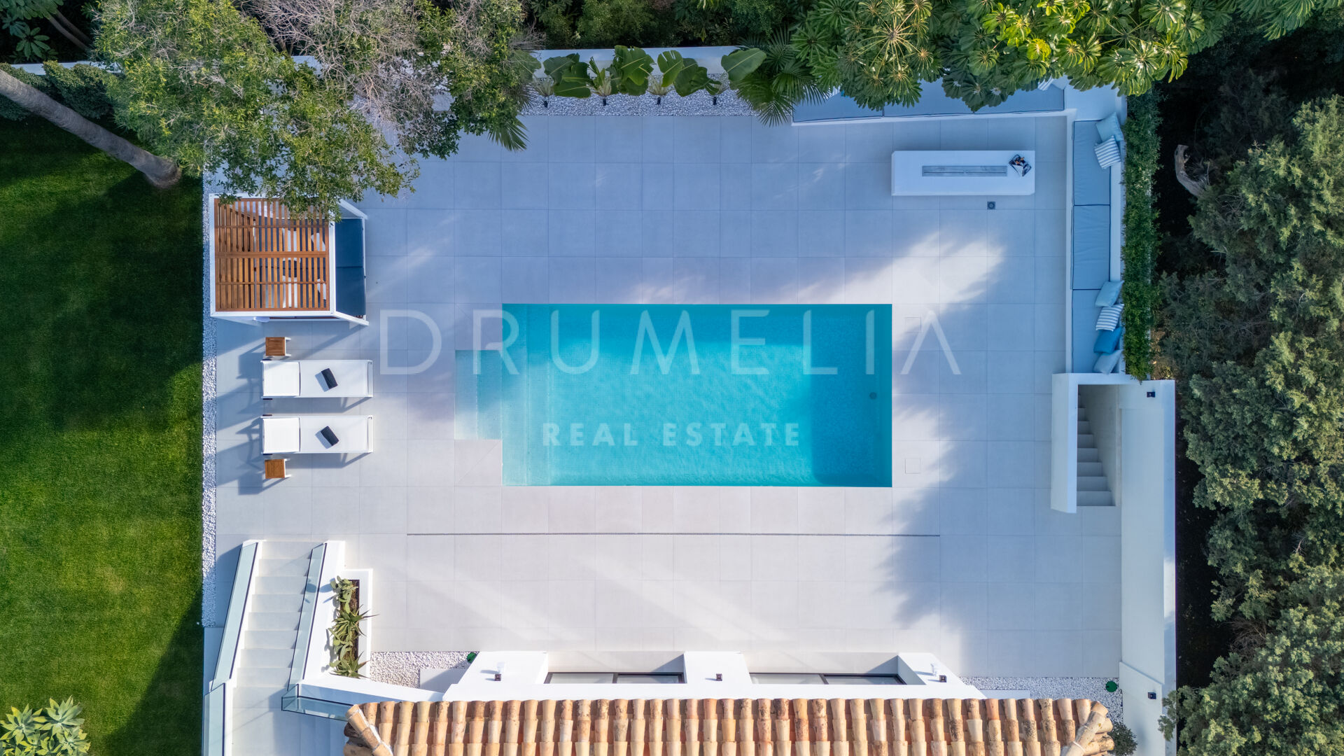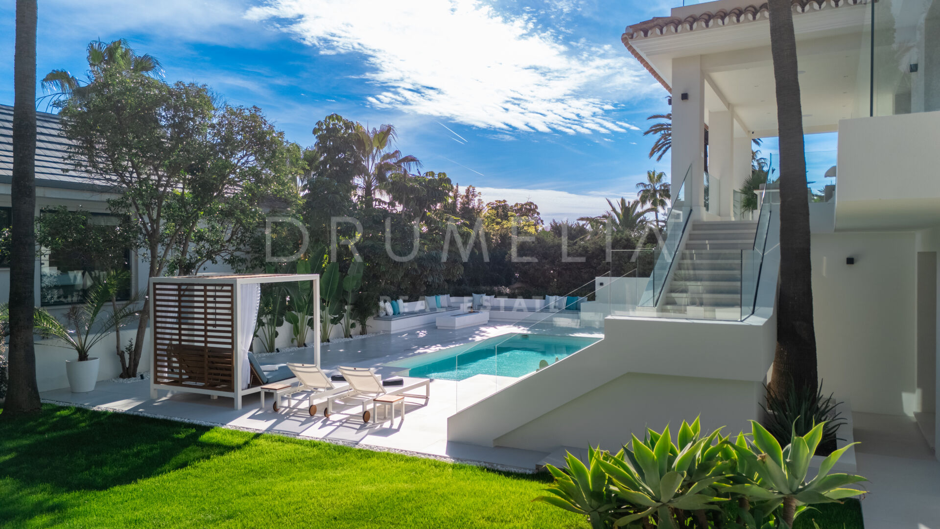 Oppdag et mesterverk av moderne raffinement og andalusisk sjarm i hjertet av Marbella. Denne utsøkte 4-soveroms villaen ligger i den prestisjetunge Marbesa-enklaven, et eksklusivt tilfluktssted ved sjøen som tilbyr ro og raffinement bare noen skritt fra Marbellas uberørte strender og bare 30 minutter fra flyplassen. Omgitt av frodige grøntområder er det en privat oase av eleganse og ro ved kysten.